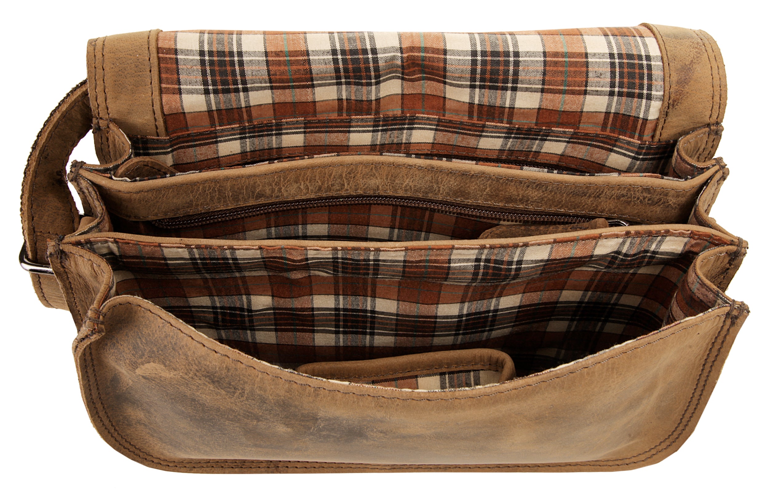 Wow! Diese Leder Umhängetasche von Bagan steht für Freiheit und Individualität. Die kleine Tasche gibt mit ihrem rustikalen Leder und dem karierten Innenleben jedem Outfit einen besonderen Touch. Hinter der Deckelklappe mit Magnetverschluss verbergen sich 4 Fächer; 2 davon mit Reißverschluss. Auf der Rückseite befindet sich auch noch ein kleines Fach, sowie eine dezente Logoapplikation.