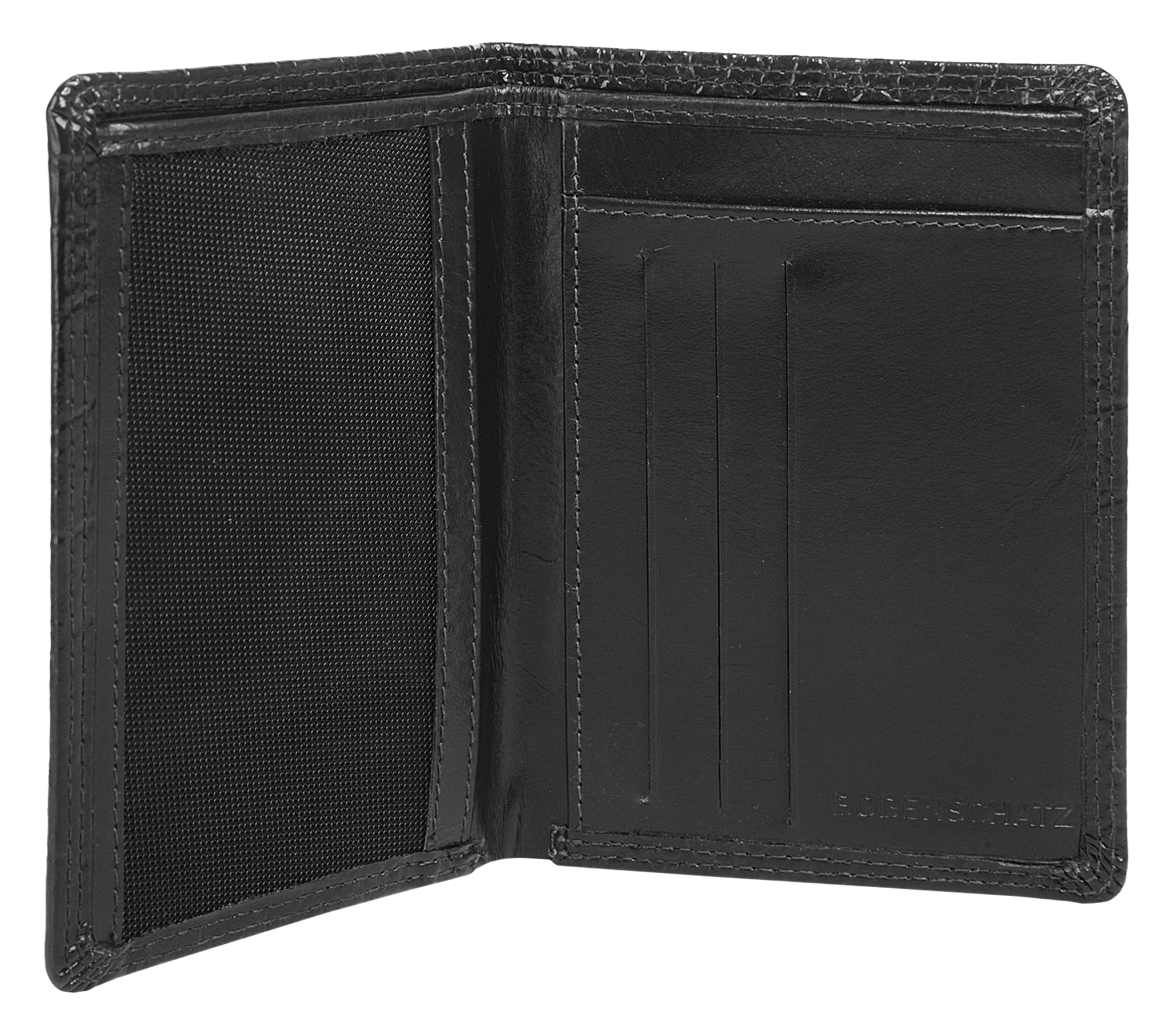 Mit dieser eleganten Leder Geldbörse von Bodenschatz im Querformat haben Sie ein tolles, ausgefallenes Accessoires mit Eyecatcher-Charakter. Slim gefertigt und in schlanker, handlicher Aufmachung, finden darin sowohl Scheine als auch Ihre Karten Platz. Zusätzliche Eleganz versprüht die Logoprägung auf der Front.