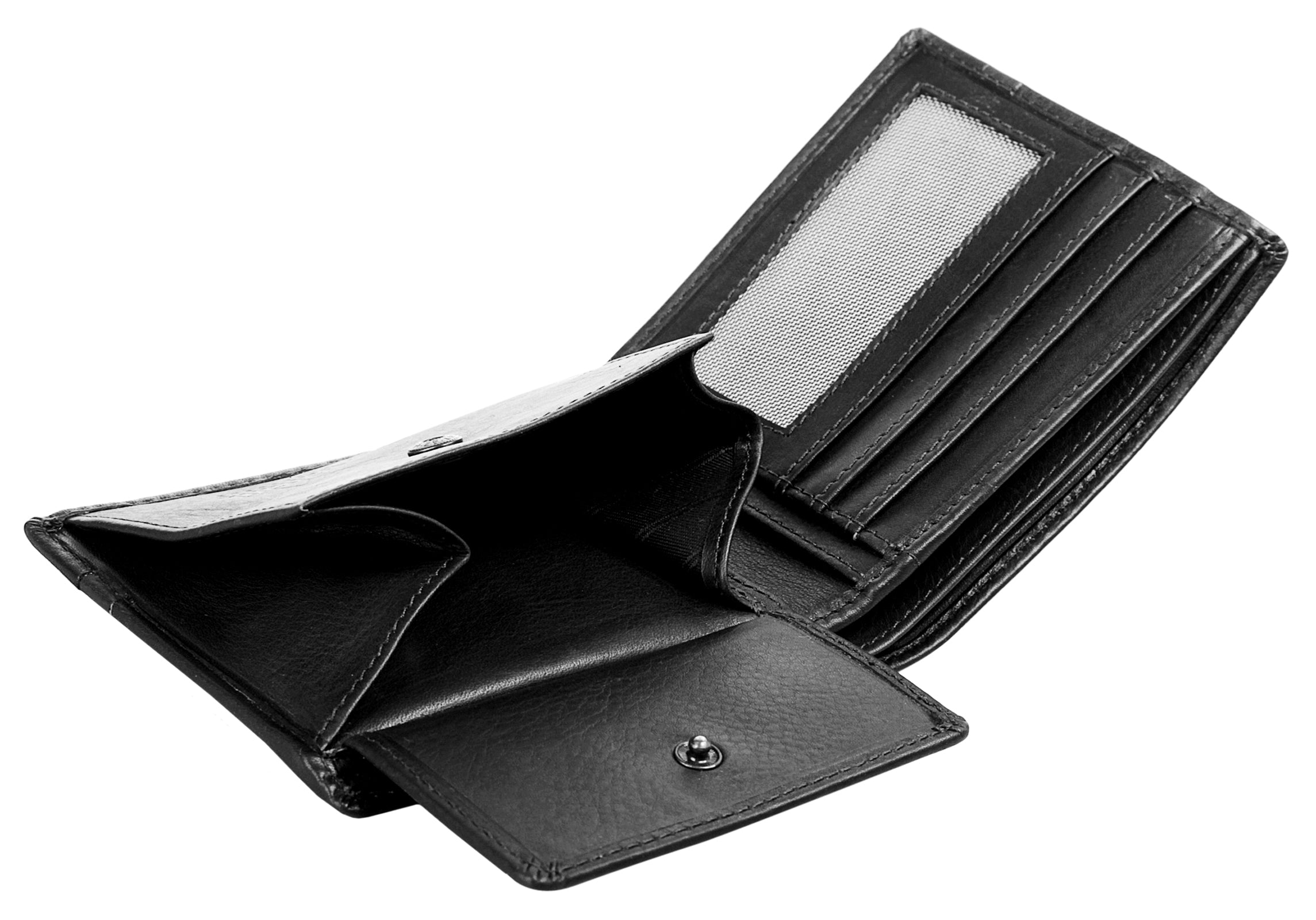 Ein Klassiker: Die unisex Leder Geldbörse aus dem Hause bruno banani im zeitlosen & edlen Look. Simpel und funktional werden all Ihre Karten und Bargeldoptionen aufbewahrt. 2 Schein-, 2 Karten- & 4 Steckfächer, 1 Netz- & 1 Münzfach mit Druckknopfverschluss ermöglichen Ihnen eine sichere & kompakte Verwahrung. Das Sichtfach ist ideal für Fahrausweise und Bahnkarten. Auffallend: die akzentuierten Sattlernähte an der Vorderseite.