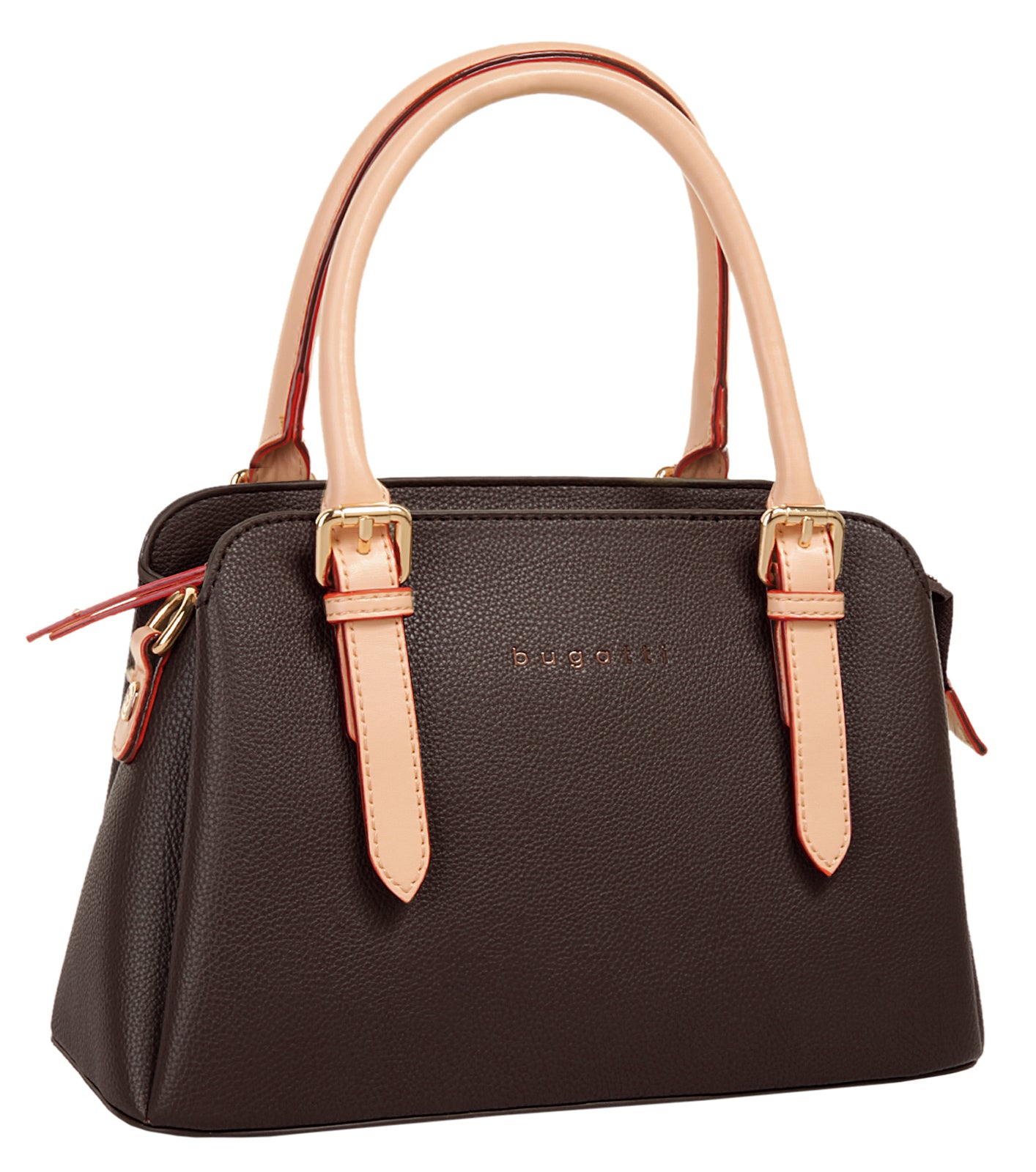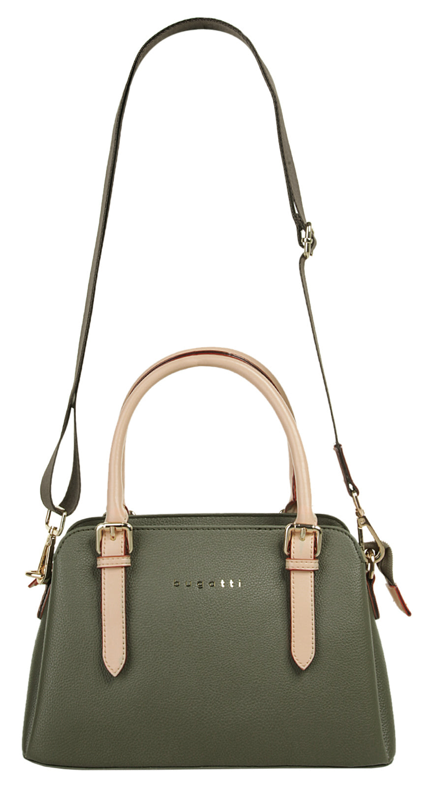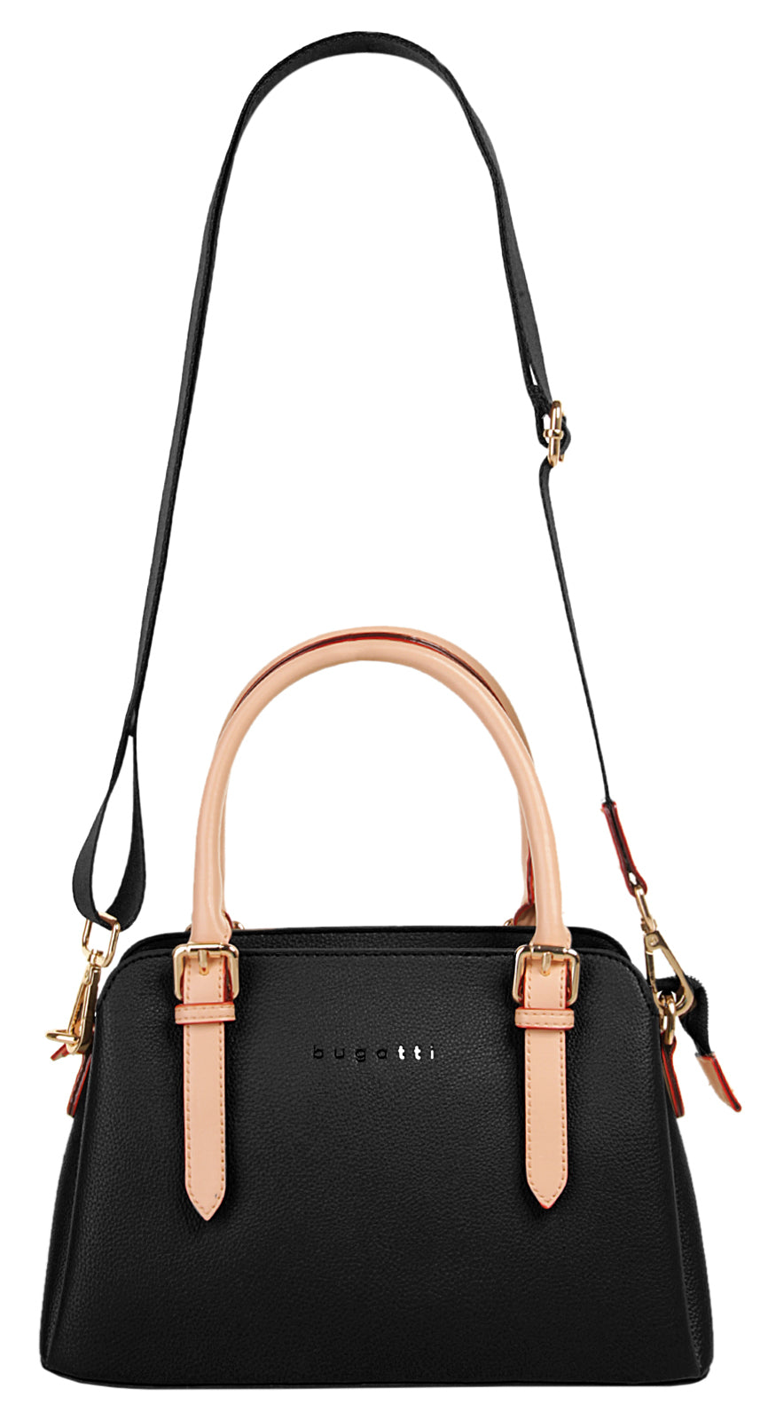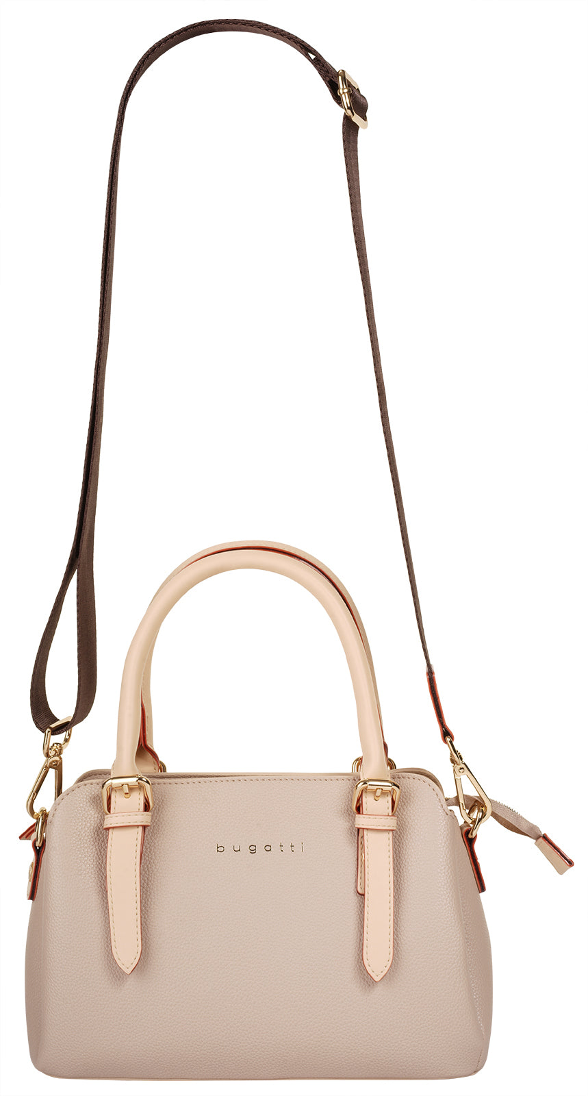 So muss eine Lieblingstasche aussehen! Klein, süß und chic. Die Handtasche aus dem Hause bugatti verzaubert auf den ersten Blick. In ihrer Form ist sie zwar kompakt & klein, das Hauptfach fächert sich jedoch dreiteilig auf und bietet Platz, um Lippenstift, Geldbörse und Schlüssel ordentlich und griffbereit bei sich zu haben. Zusätzlich: in einem Steckfach und einem Reißverschlussfach können Sie kleine Gegenstände wie Münzen sicher aufbewahren. Die Umhängetasche lässt sich elegant in der Hand oder durch einen abnehmbaren Gurt bequem über der Schulter tragen.