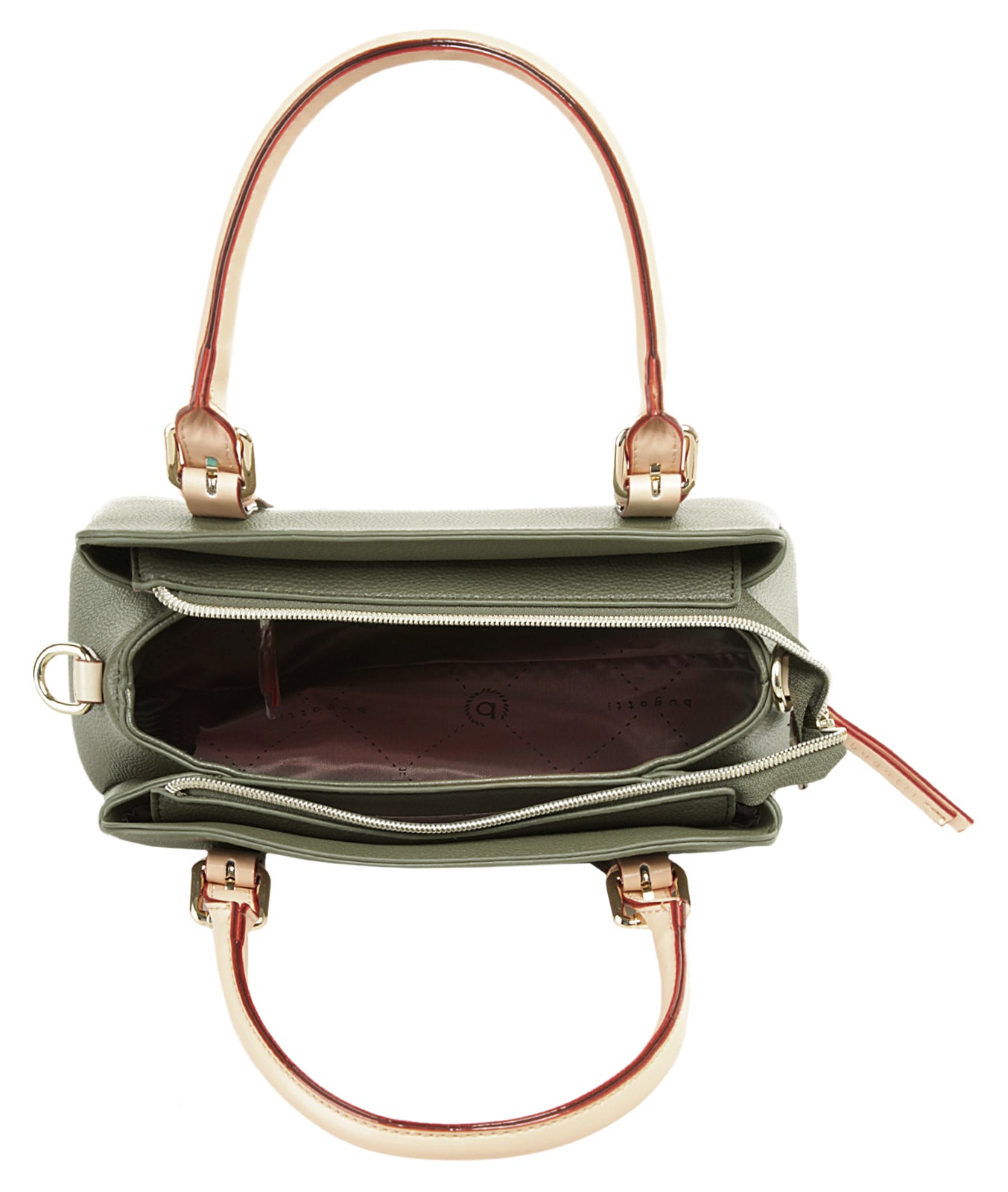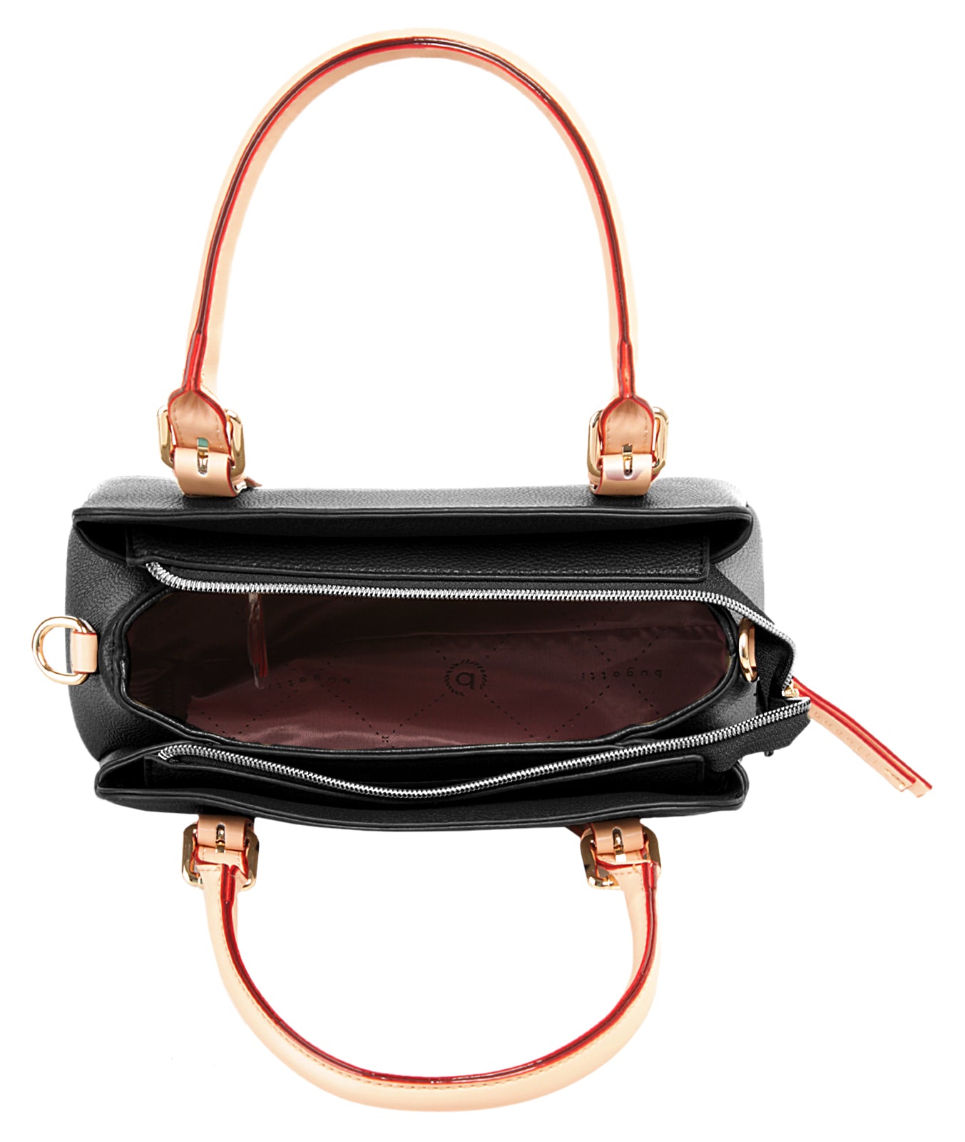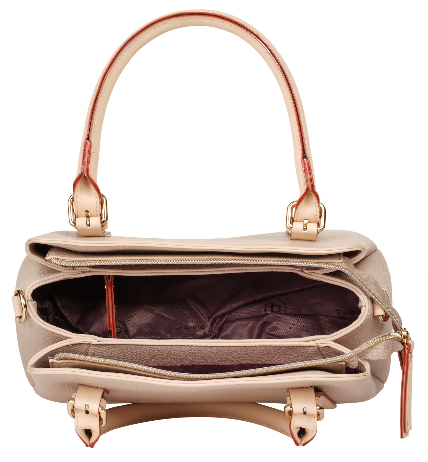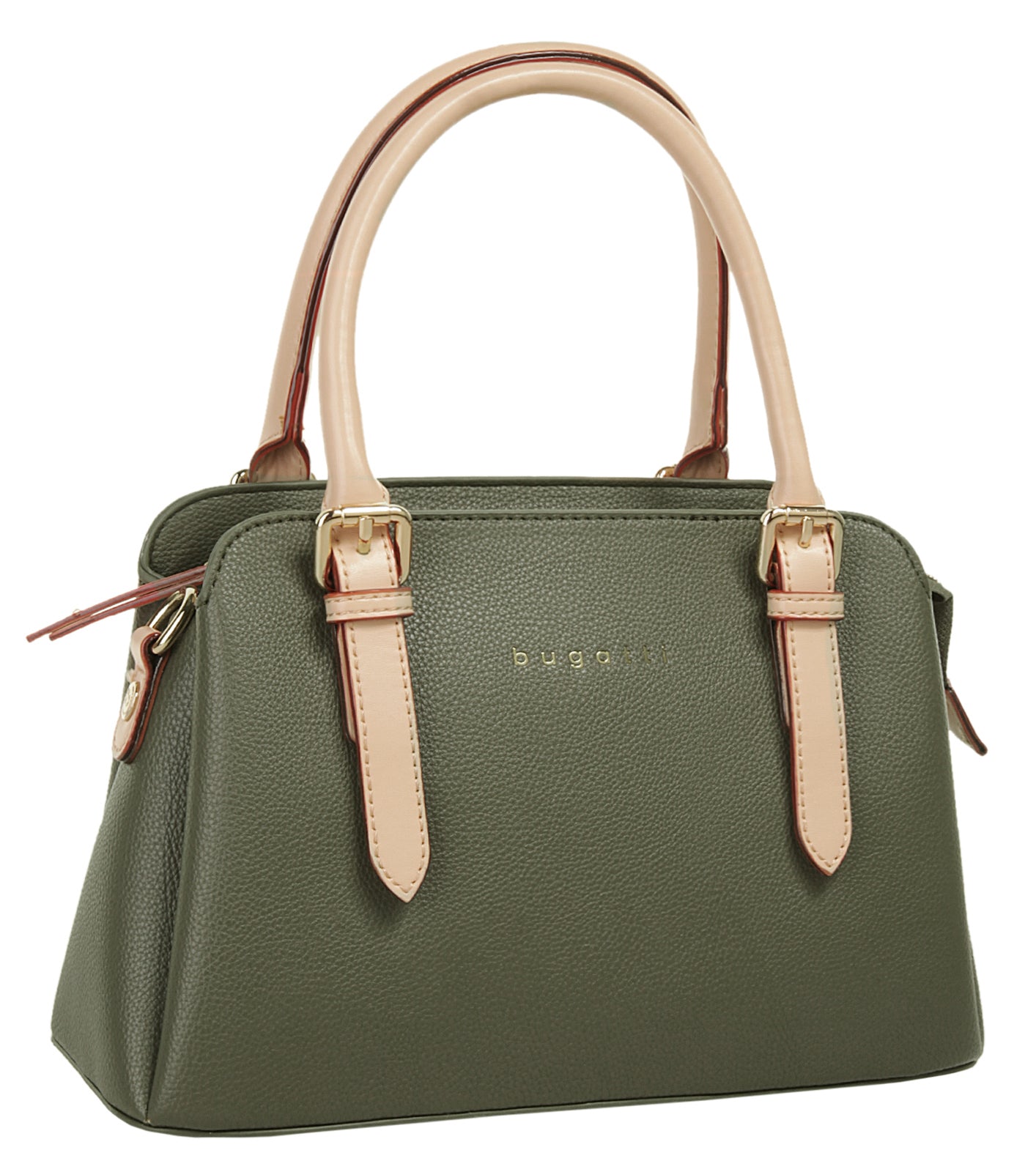 So muss eine Lieblingstasche aussehen! Klein, süß und chic. Die Handtasche aus dem Hause bugatti verzaubert auf den ersten Blick. In ihrer Form ist sie zwar kompakt & klein, das Hauptfach fächert sich jedoch dreiteilig auf und bietet Platz, um Lippenstift, Geldbörse und Schlüssel ordentlich und griffbereit bei sich zu haben. Zusätzlich: in einem Steckfach und einem Reißverschlussfach können Sie kleine Gegenstände wie Münzen sicher aufbewahren. Die Umhängetasche lässt sich elegant in der Hand oder durch einen abnehmbaren Gurt bequem über der Schulter tragen.