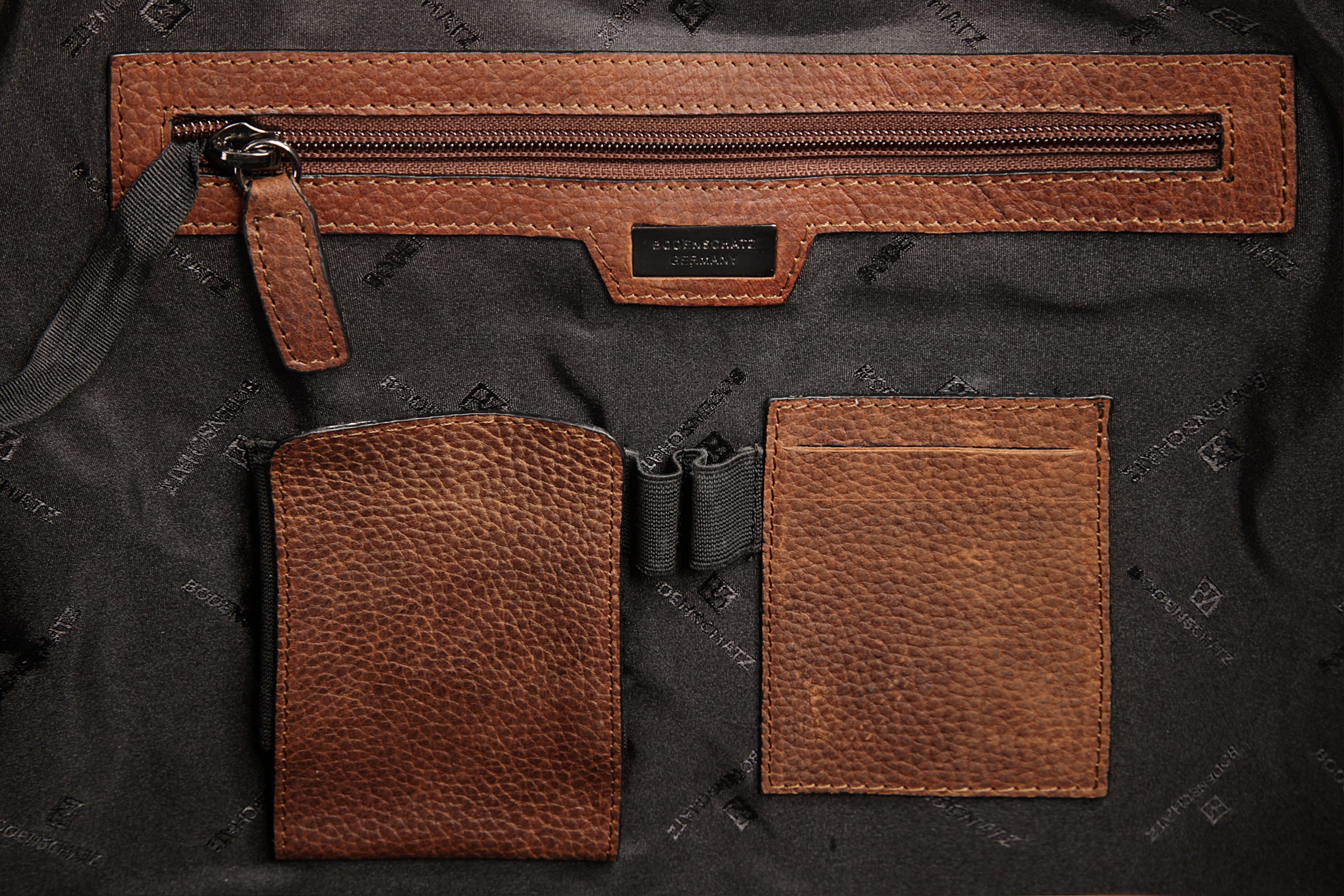 Robuste Aktentasche von Bodenschatz aus echtem Rindleder im klassischen Design: Die Business Bag überzeugt durch ihre Funktionalität und hochwertige Verarbeitung. Sie verfügt über ein großes Hauptfach, ein gepolstertes Laptopfach und weitere Fächer für Smartphone, Stifte, Wertsachen und mehr. Mit abnehmbarem, verstellbarem Trageriemen lässt sich die Tasche auch als Schultertasche tragen. Tolles Detail: die Trolleyhalterung für ein entspanntes Reisen.