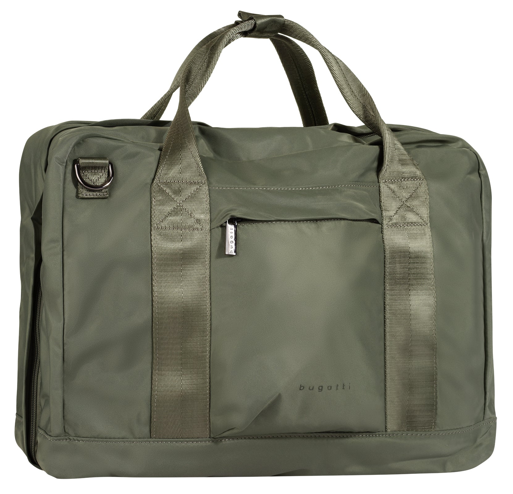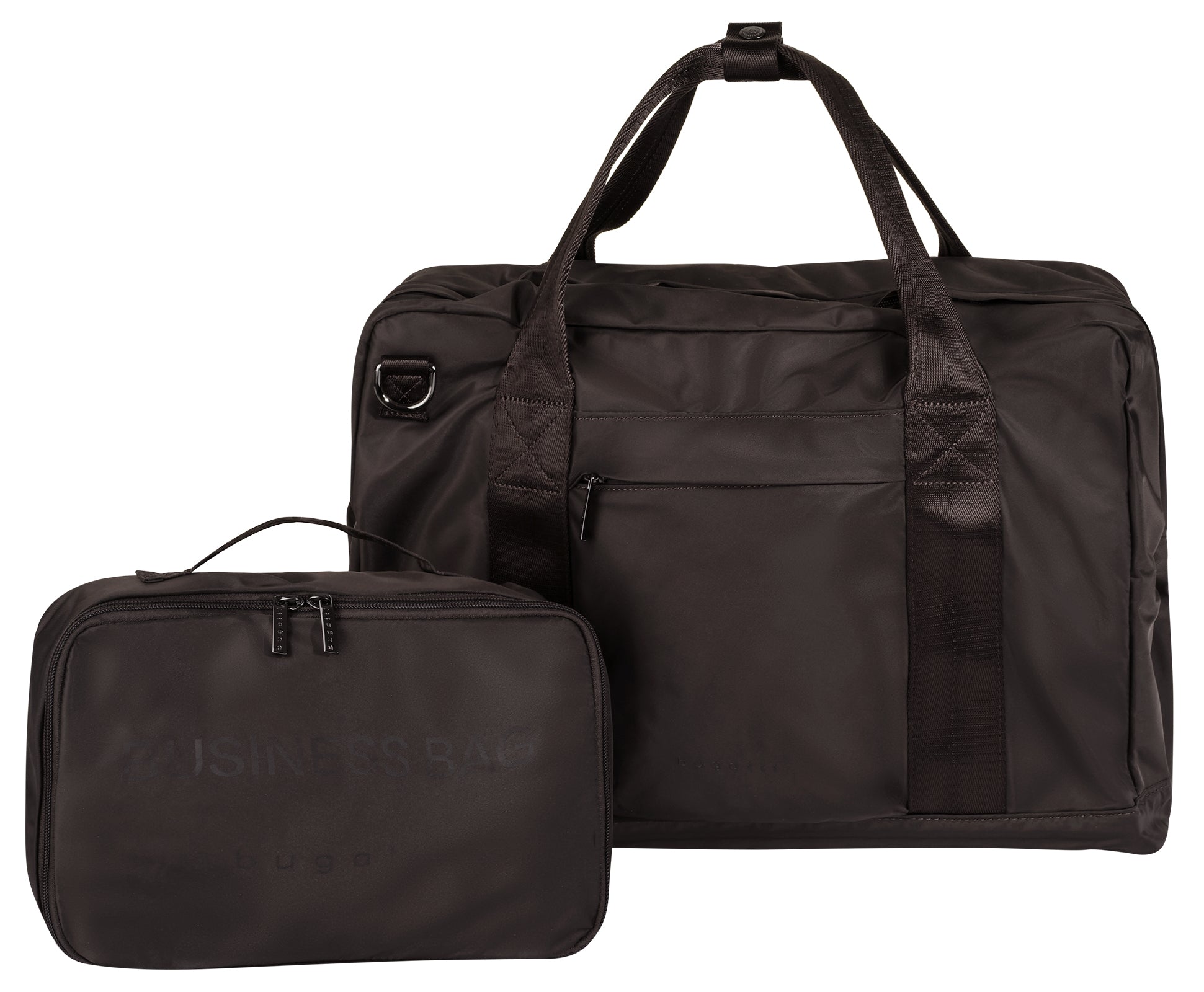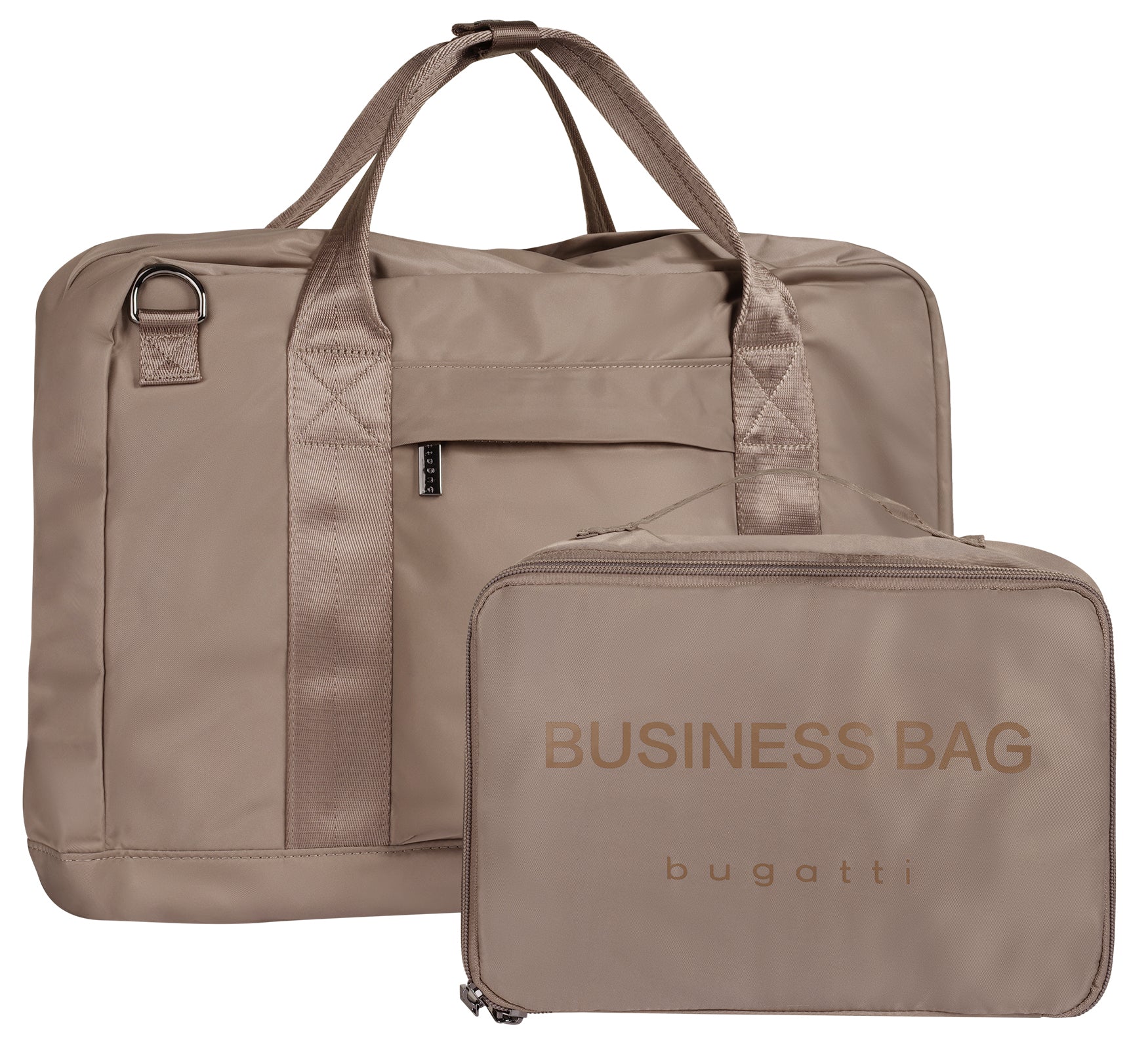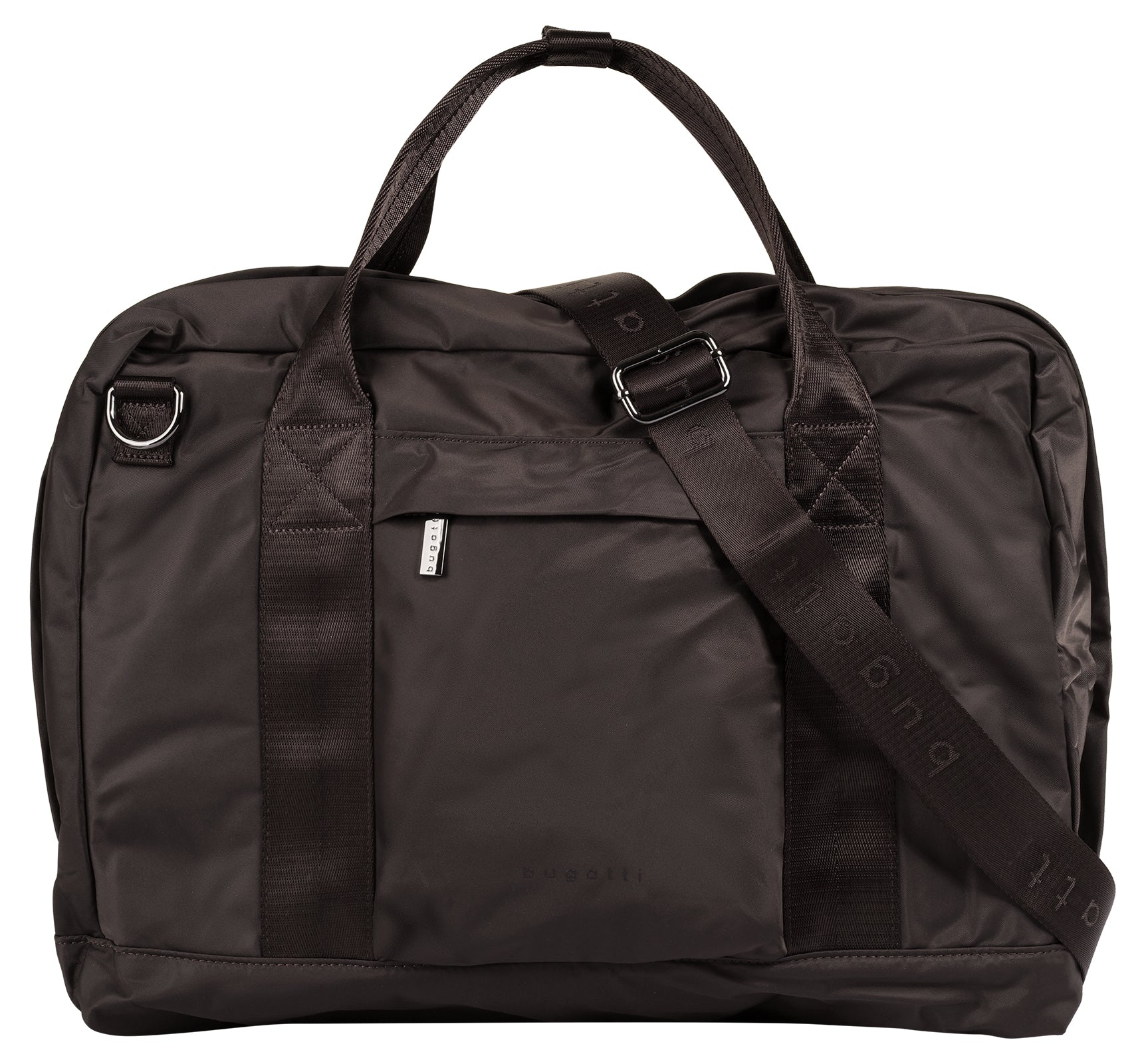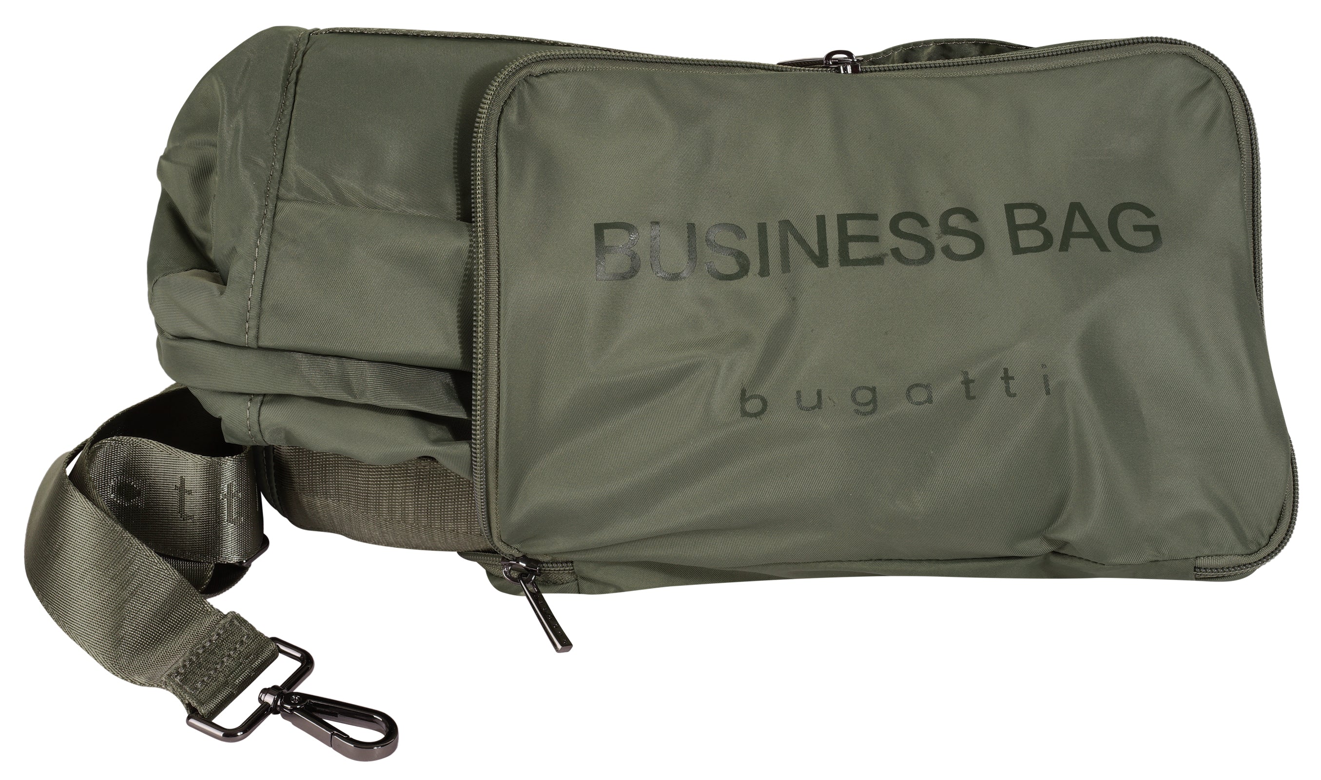 Mit der Businesstasche von bugatti behalten Sie stets den Überblick! Und das sogar wortwörtlich, denn dank ihres umlaufenden Reißverschlusses lässt sie sich vollständig aufklappen. Im Hauptfach finden Sie neben verschiedenen Einsteckmöglichkeiten auch ein gepolstertes Notebook- und ein Smartphonefach sowie ein großes Hemdfach. Ein Vorderfach und eine Trolleyhalterung auf der Rückseite vervollständigen die Ausstattung. Wechseln Sie für maximalen Tragekomfort zwischen weichen Henkeln und abnehmbarem Schultergurt. Die mitgelieferte Reißverschlusstasche eignet sich übrigens hervorragend als Kosmetiktasche und bewahrt Ihre Businesstasche platzsparend auf, wenn sie mal nicht im Einsatz ist.