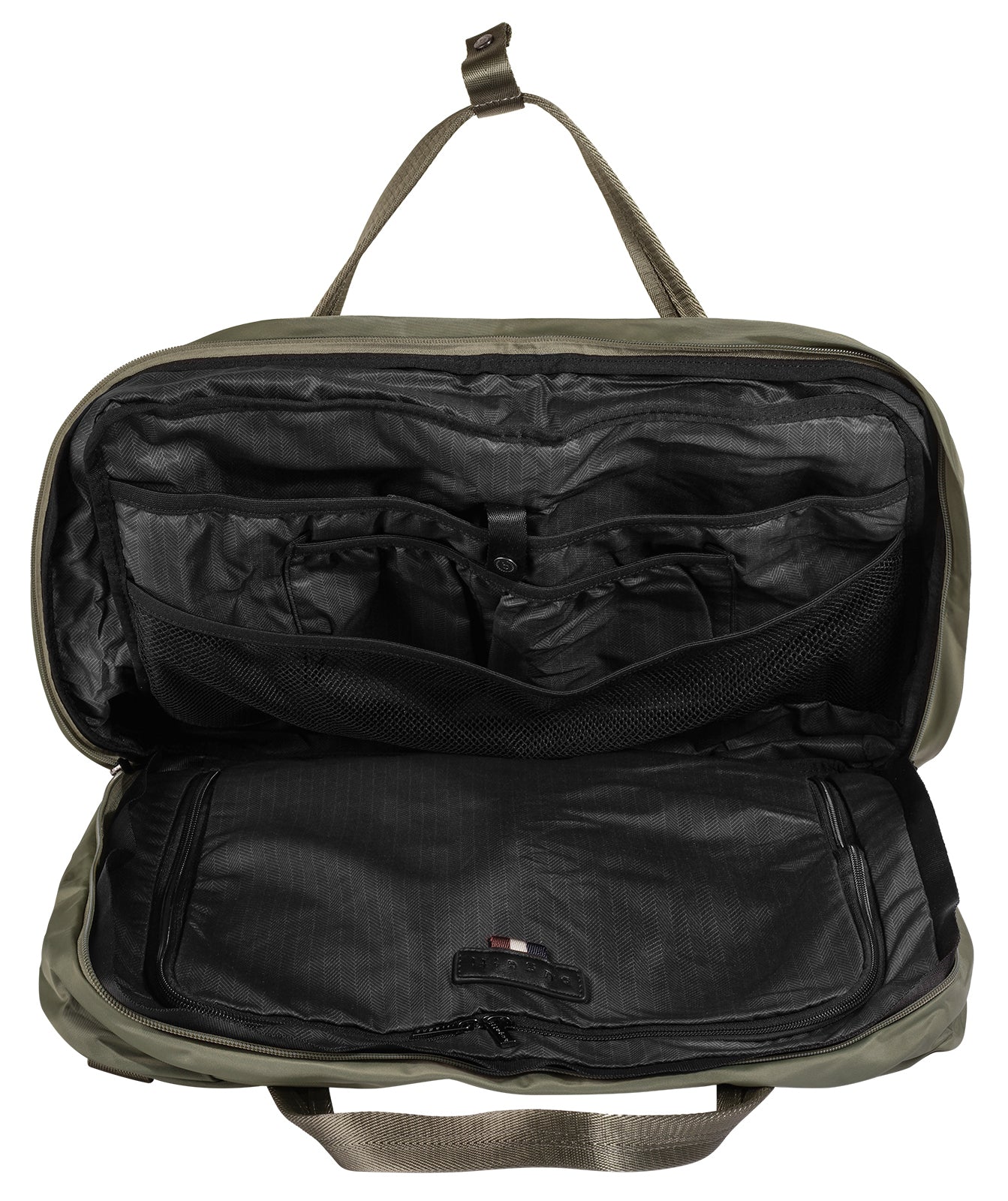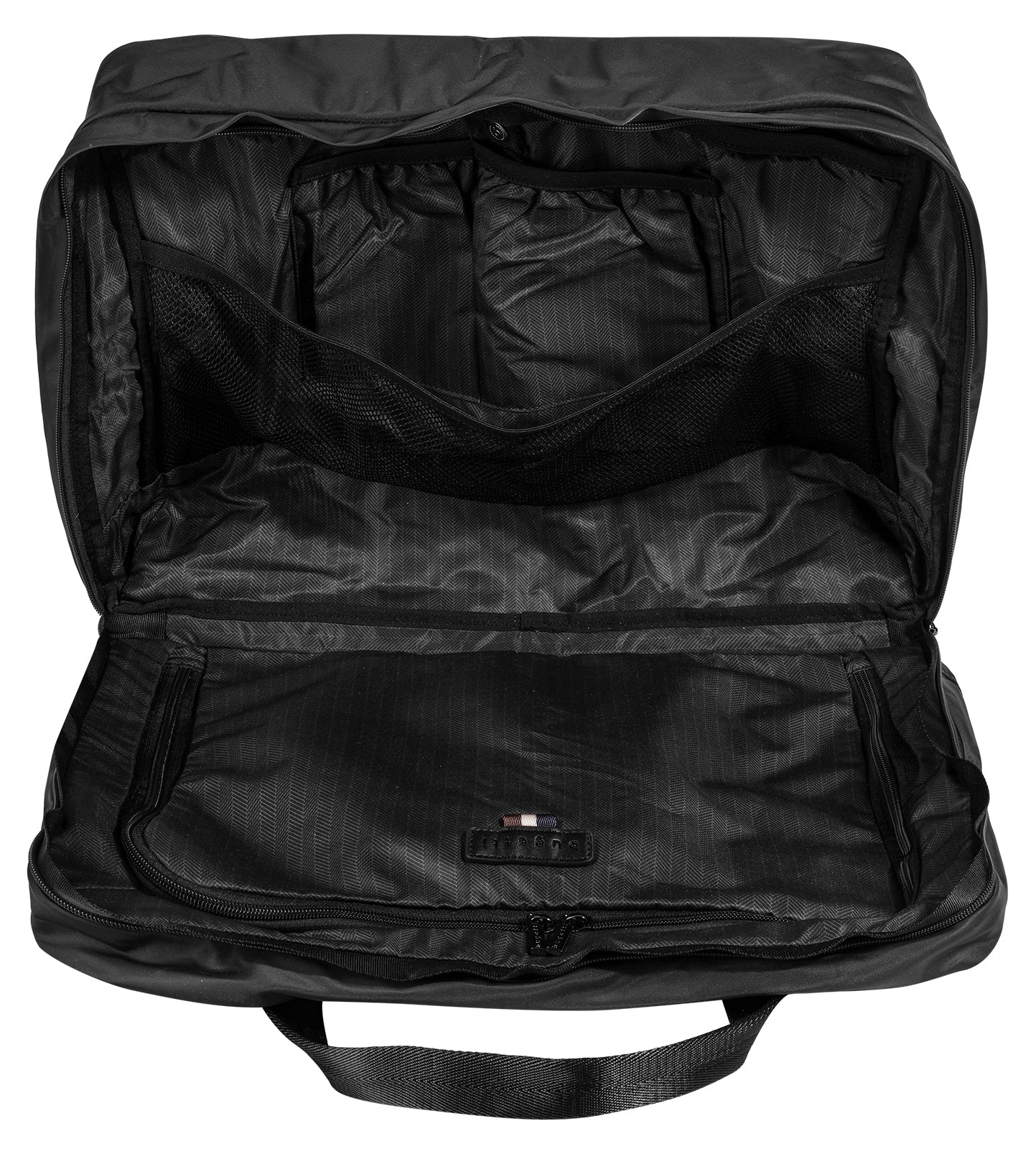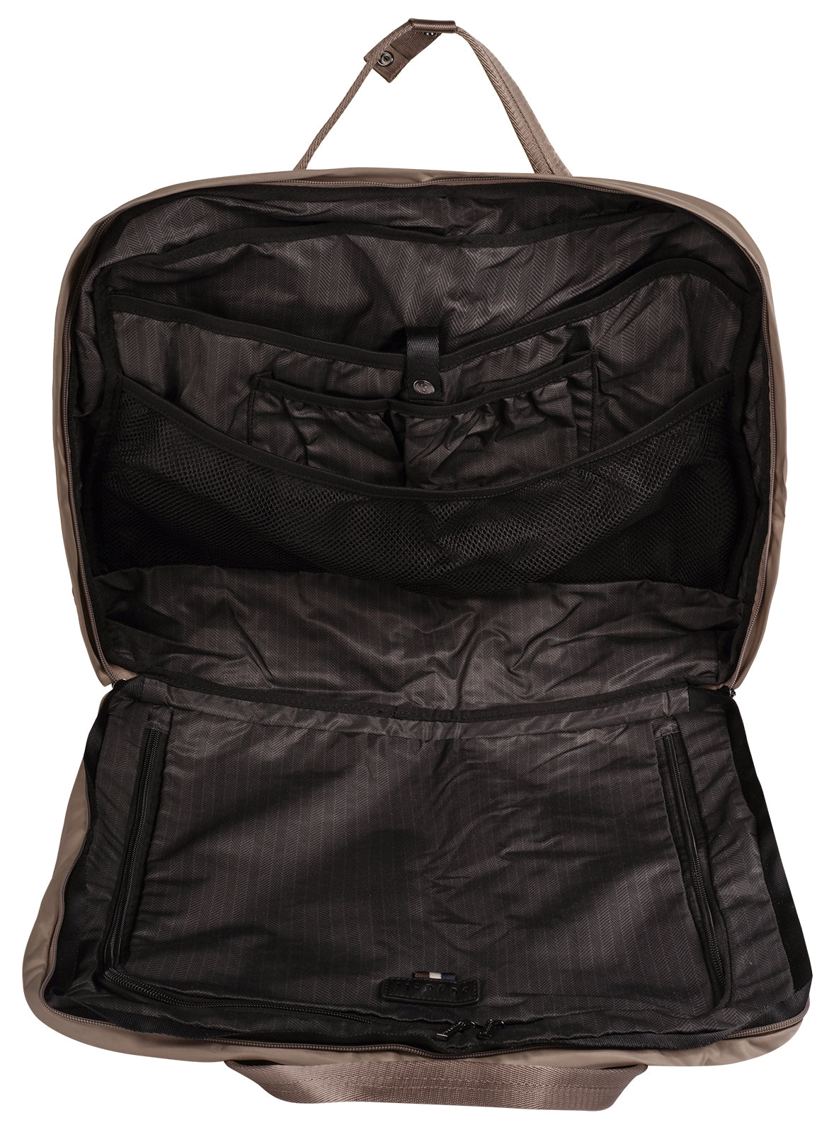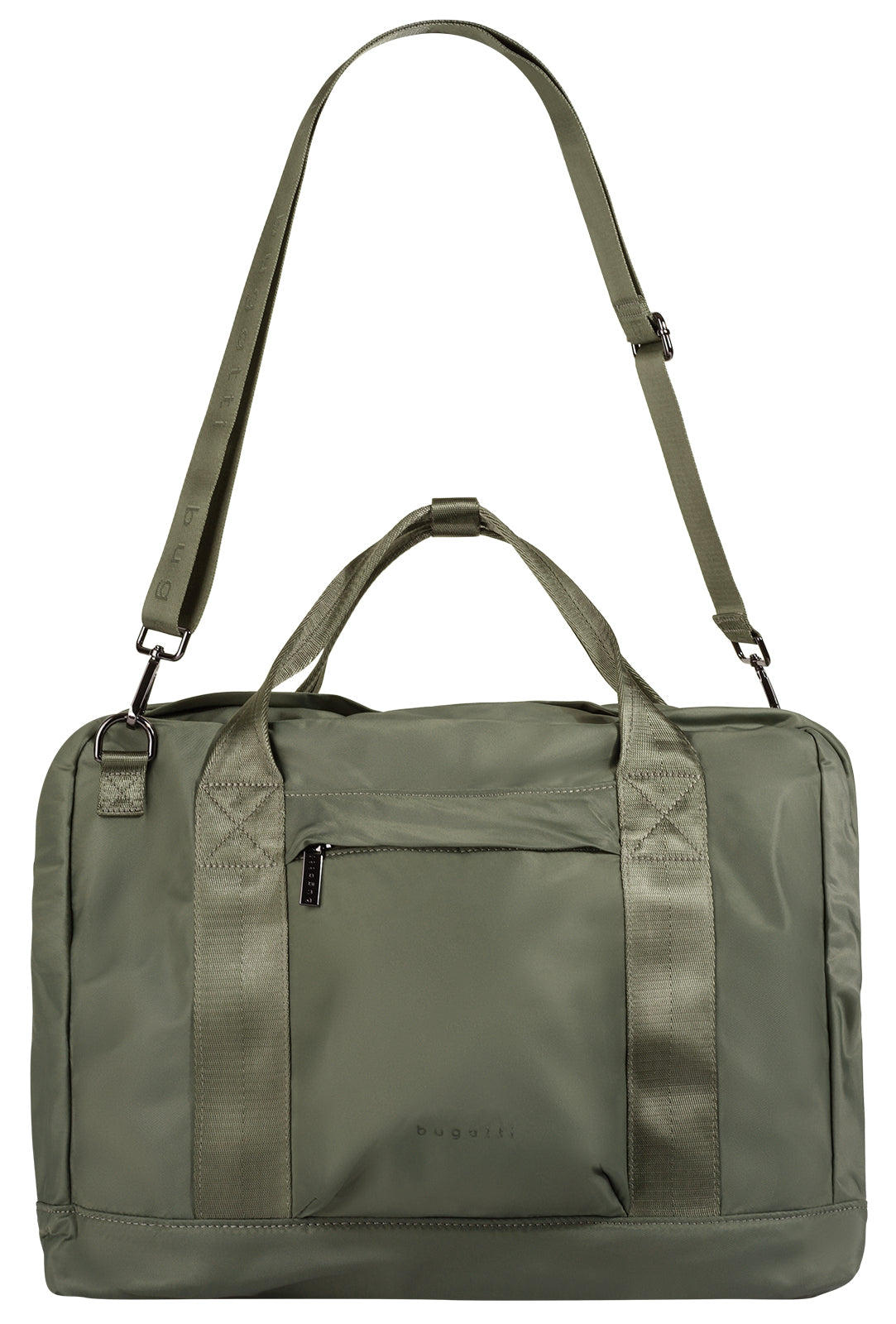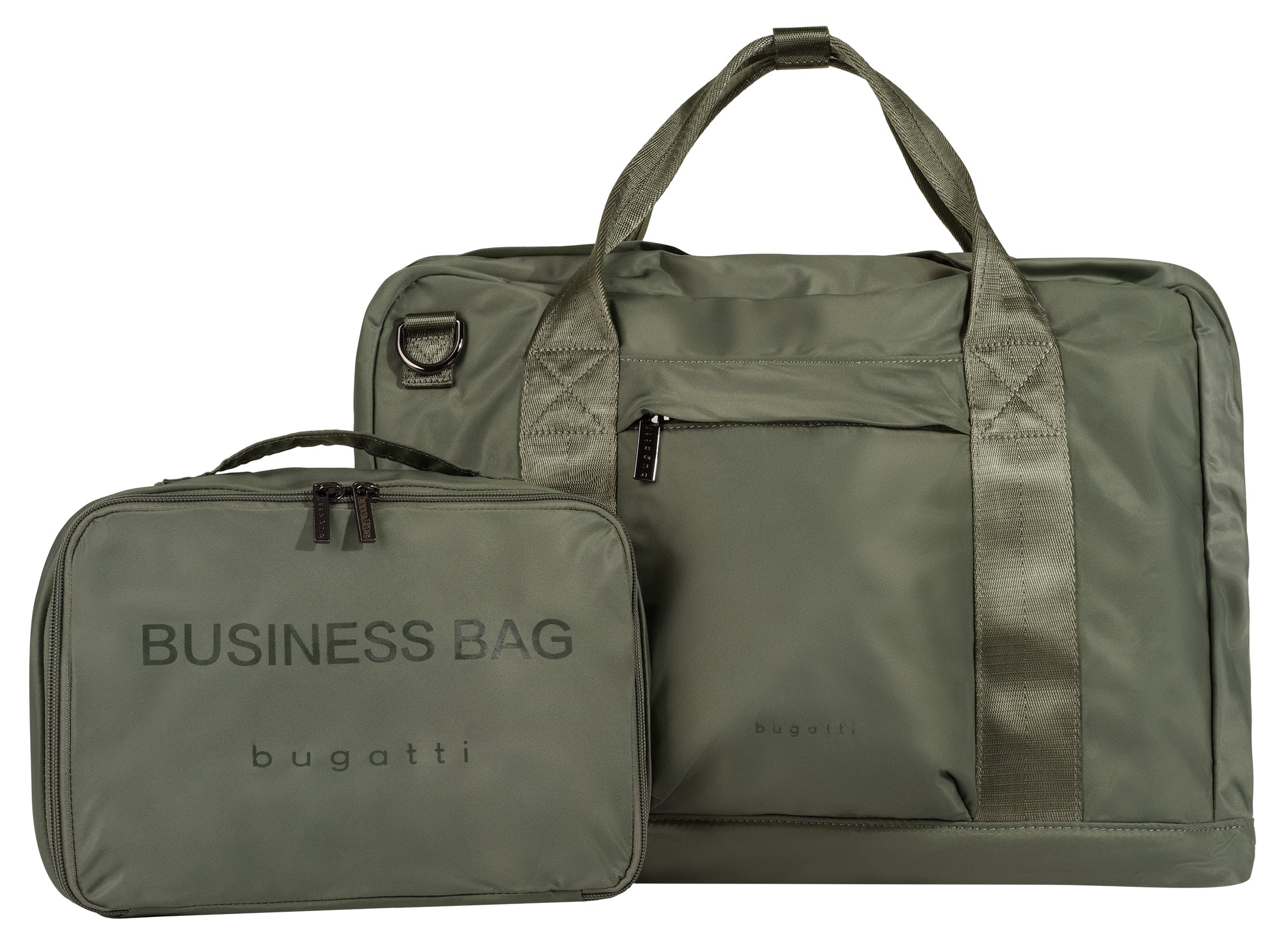 Mit der Businesstasche von bugatti behalten Sie stets den Überblick! Und das sogar wortwörtlich, denn dank ihres umlaufenden Reißverschlusses lässt sie sich vollständig aufklappen. Im Hauptfach finden Sie neben verschiedenen Einsteckmöglichkeiten auch ein gepolstertes Notebook- und ein Smartphonefach sowie ein großes Hemdfach. Ein Vorderfach und eine Trolleyhalterung auf der Rückseite vervollständigen die Ausstattung. Wechseln Sie für maximalen Tragekomfort zwischen weichen Henkeln und abnehmbarem Schultergurt. Die mitgelieferte Reißverschlusstasche eignet sich übrigens hervorragend als Kosmetiktasche und bewahrt Ihre Businesstasche platzsparend auf, wenn sie mal nicht im Einsatz ist.