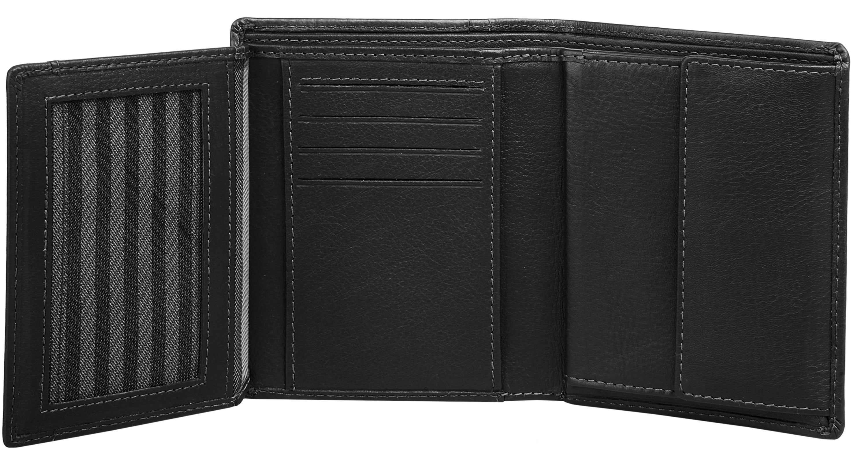 Klassische Herren Leder Geldbörse von Chiemsee: Elegant und funktional werden all Ihre Karten & Bargeldoptionen aufbewahrt. 2 Schein-, 5 Karten- & 2 Steckfächer sowie 1 Sicht- & 1 Münzfach mit Druckknopfverschluss ermöglichen Ihnen eine sichere & kompakte Verwahrung. Das Sichtfach in Mesh-Optik ist ideal für Ausweise & Bahnkarten. Vervollständigt wird das schlichte Design durch die dezente Logoprägung an der Vorderseite.
