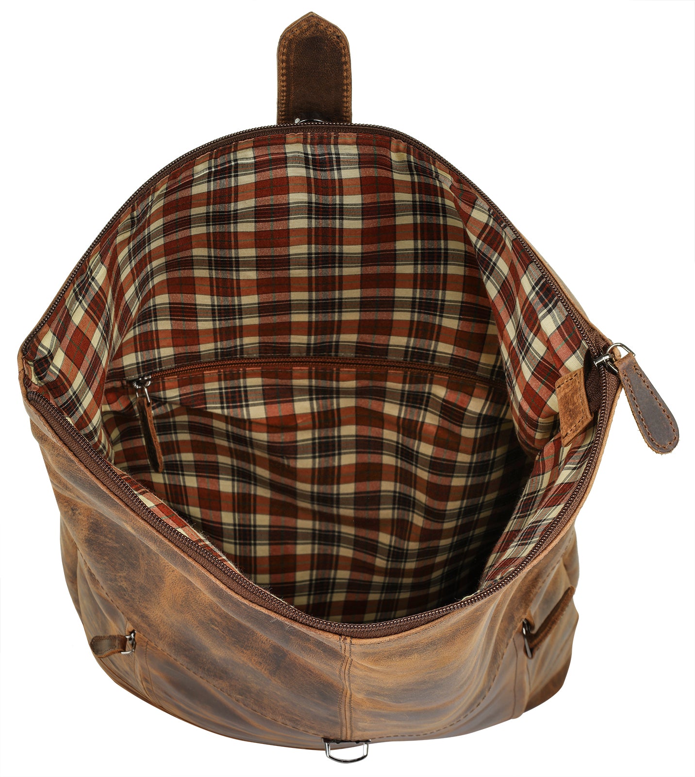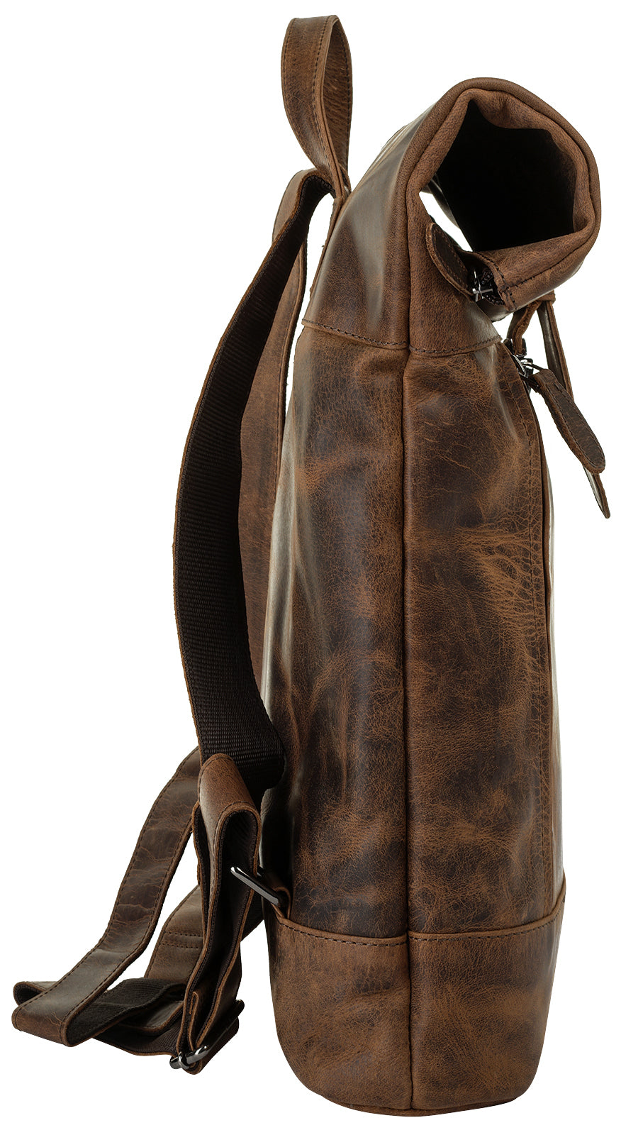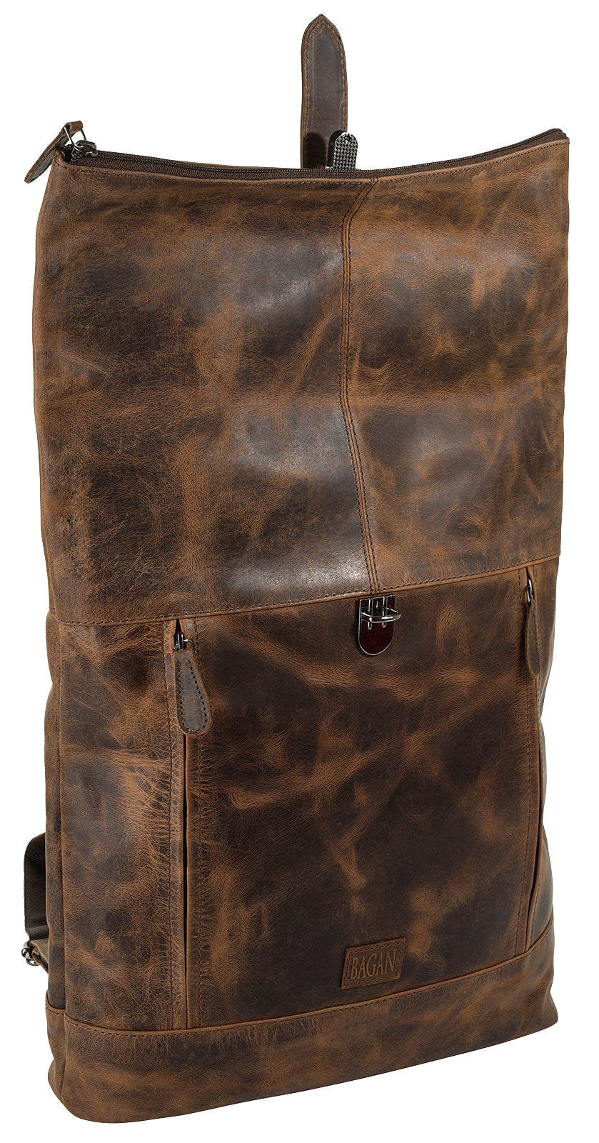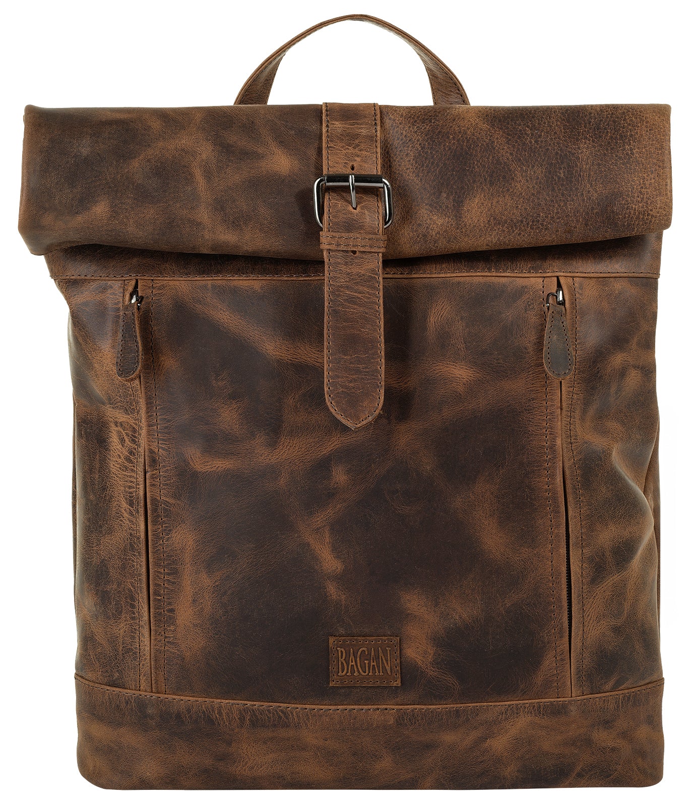 Vintage-Liebhaberinnen aufgepasst! Der Rucksack von Bagan begeistert sowohl mit der rustikalen Optik des Leders als auch mit seinem klassischen Design, das an eine urbane Kuriertasche erinnert. Ein charmantes Rolltop mit Steckschloss verleiht ihm ein zeitloses Aussehen. Neben einer Menge Stauraum finden Sie im Hauptfach außerdem ein praktisches Smartphonefach. So haben Sie Ihr Gerät stets griffbereit.