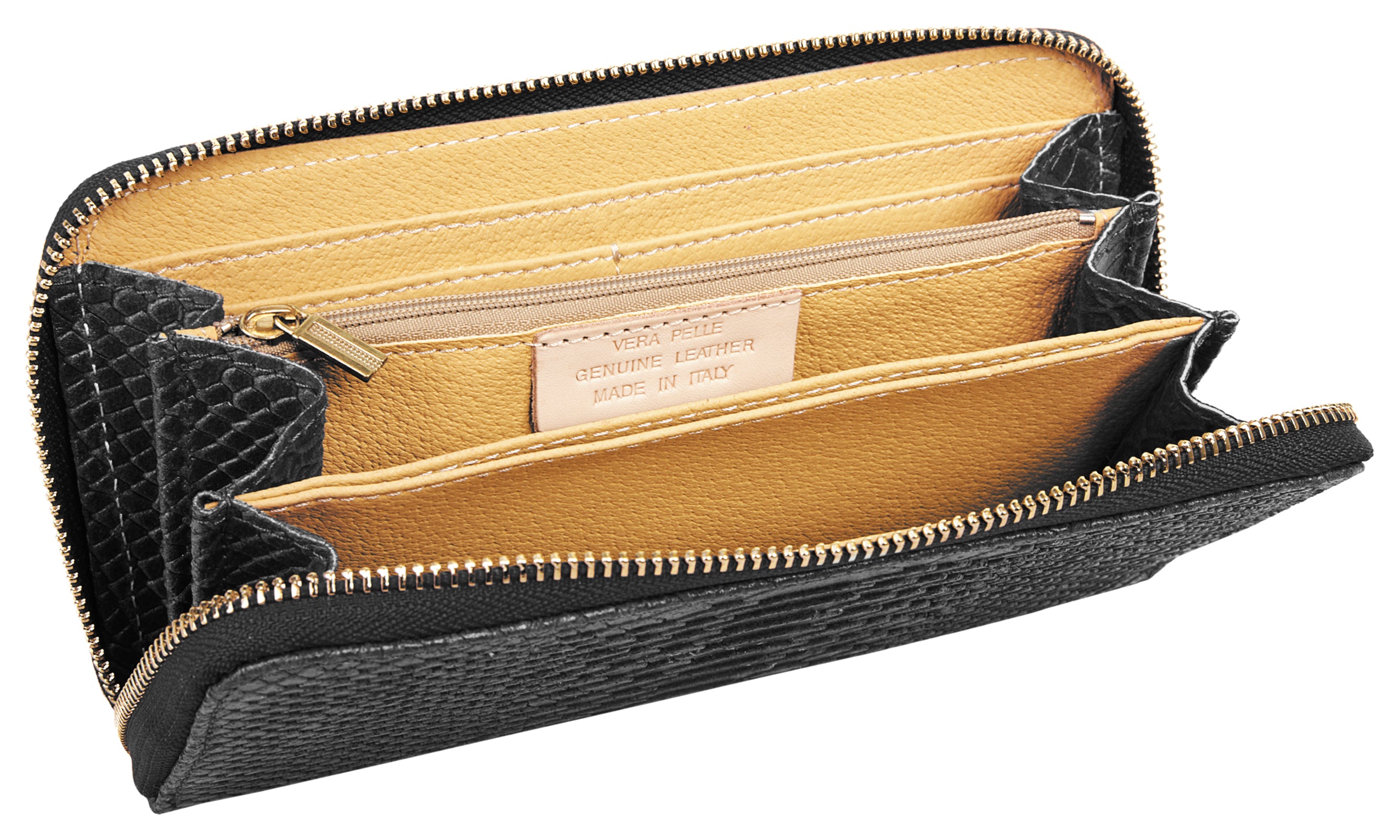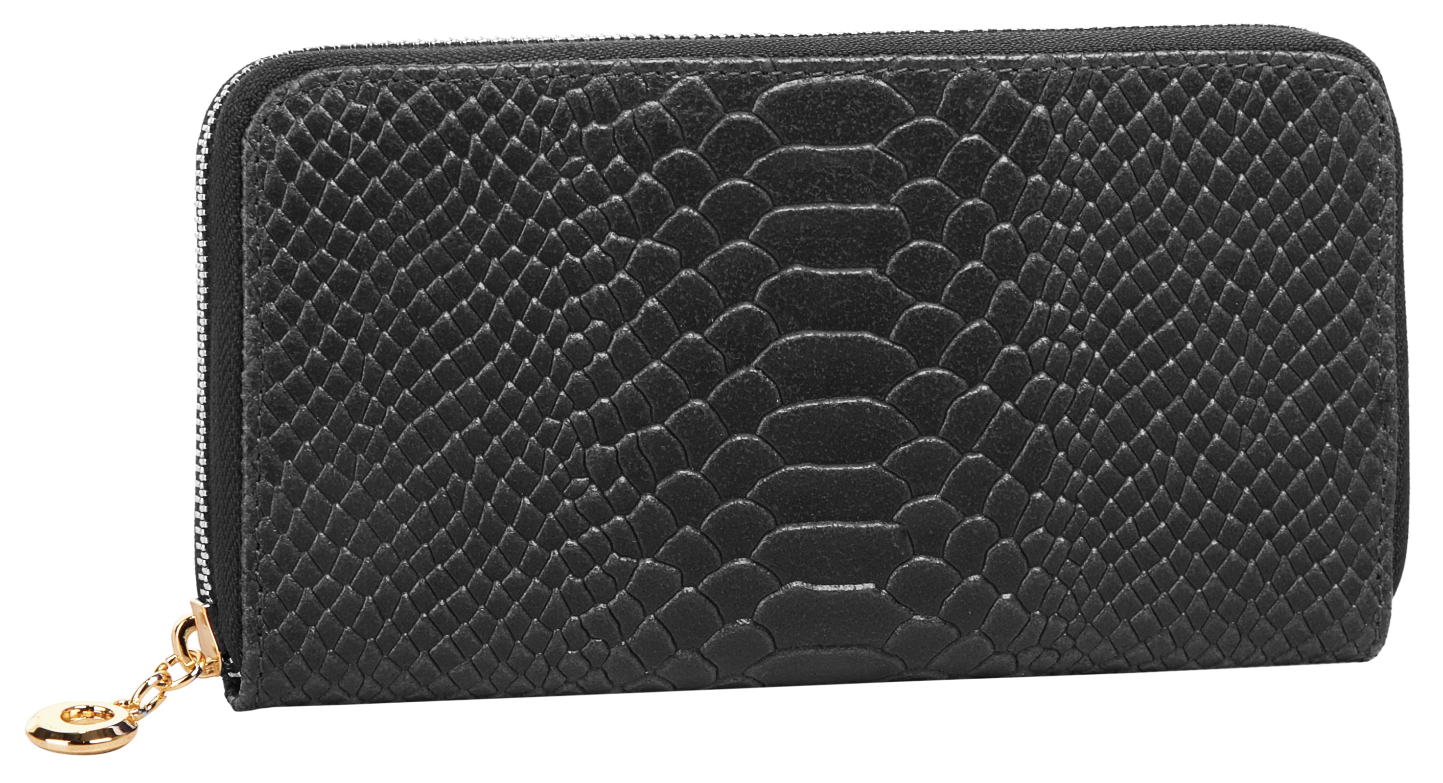 Die Leder Geldbörse von Cluty ist Geldbörse und glamouröses Accessoire in einem! Die elegante Oberfläche in Kroko-Optik sticht ins Auge, der goldene Reißverschluss rundet den schicken Look der Leder Geldbörse ab. Insgesamt 15 Steckfächer bieten viel Platz für Bank- und Visitenkarten. Die Fächer sind übersichtlich und griffbereit angeordnet. Der 3-seitige Reißverschluss hält die Leder Geldbörse sicher und kompakt zusammen!