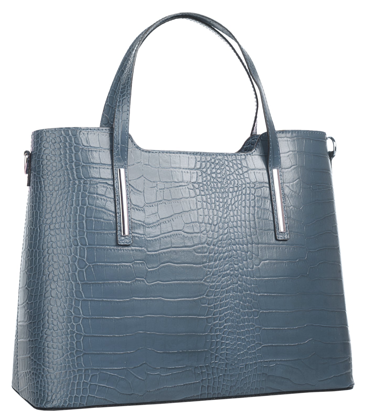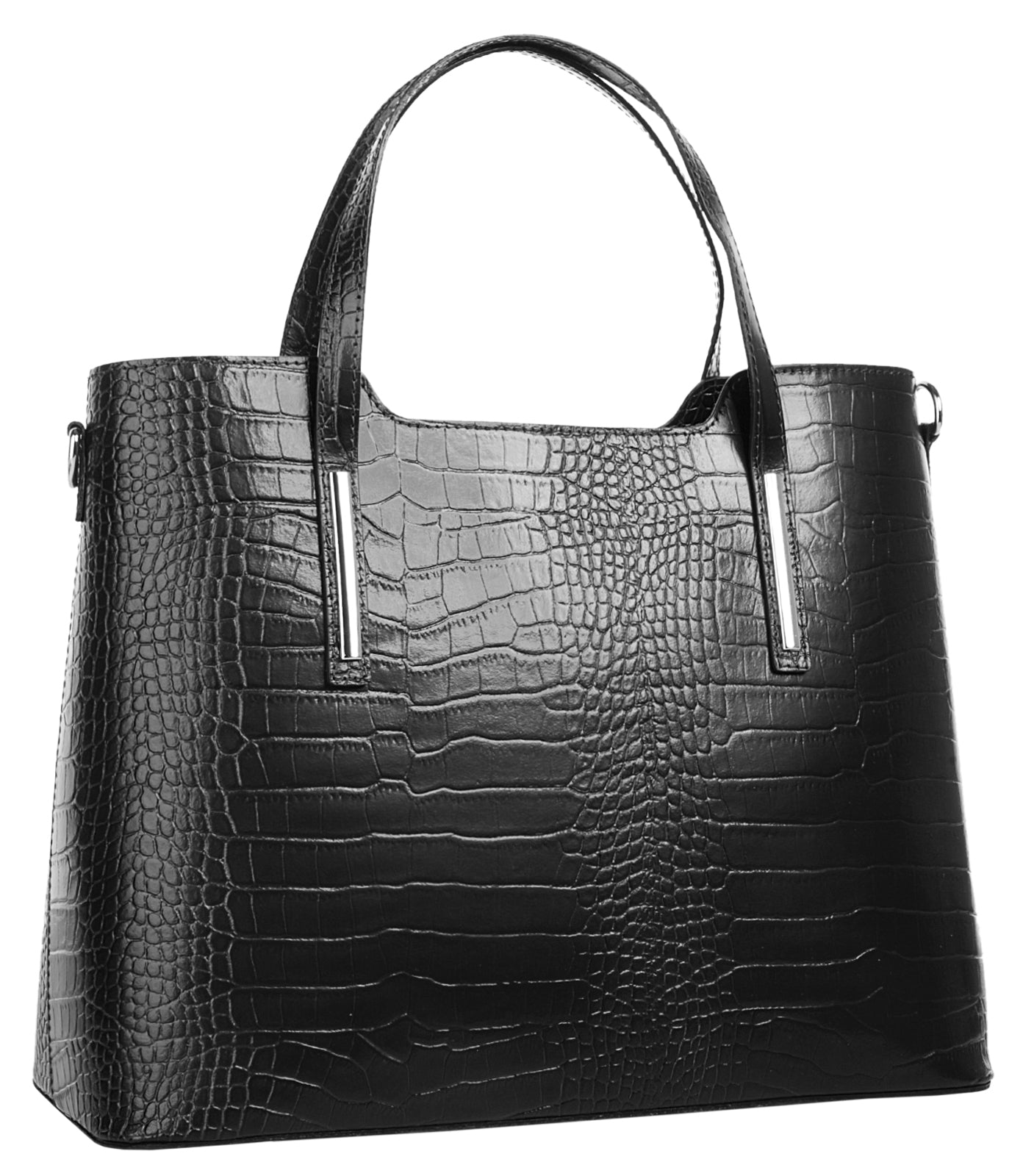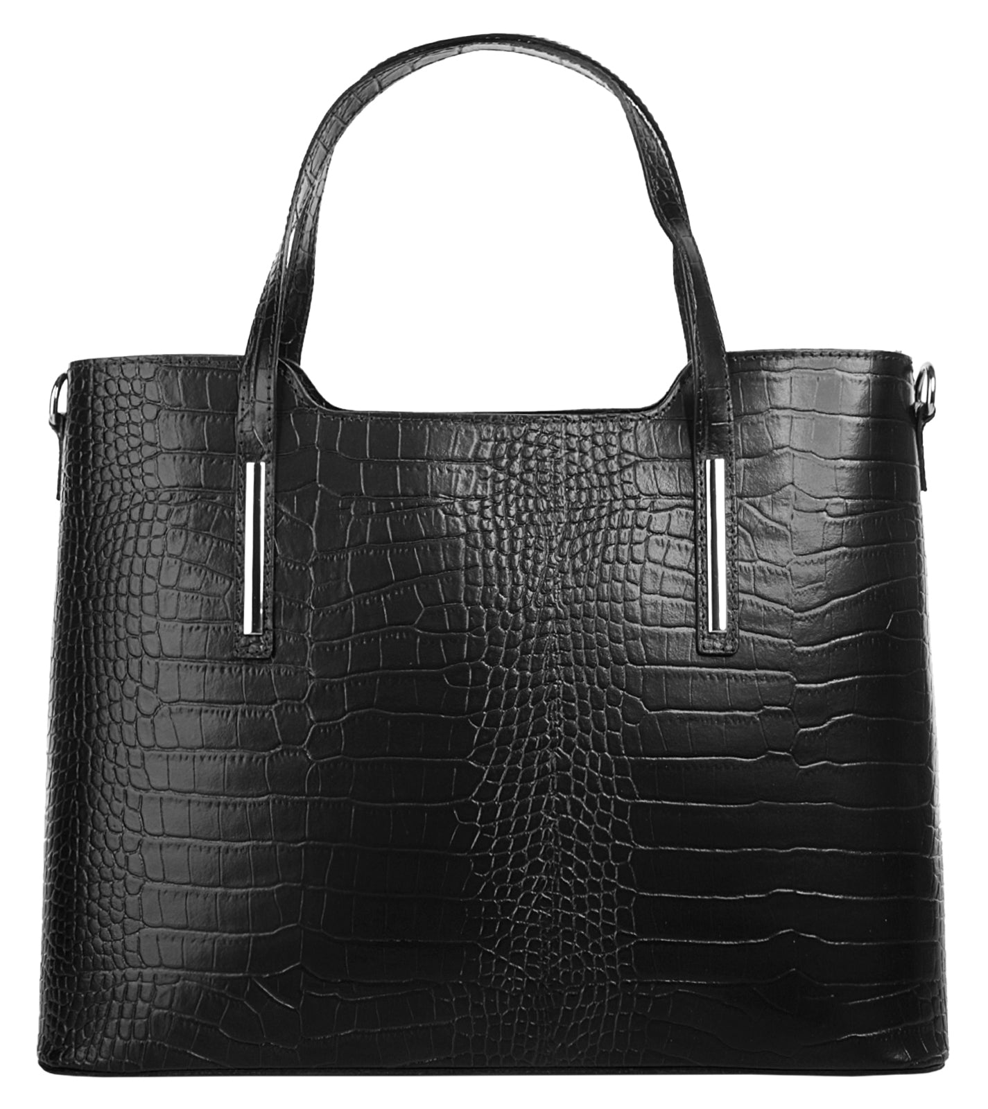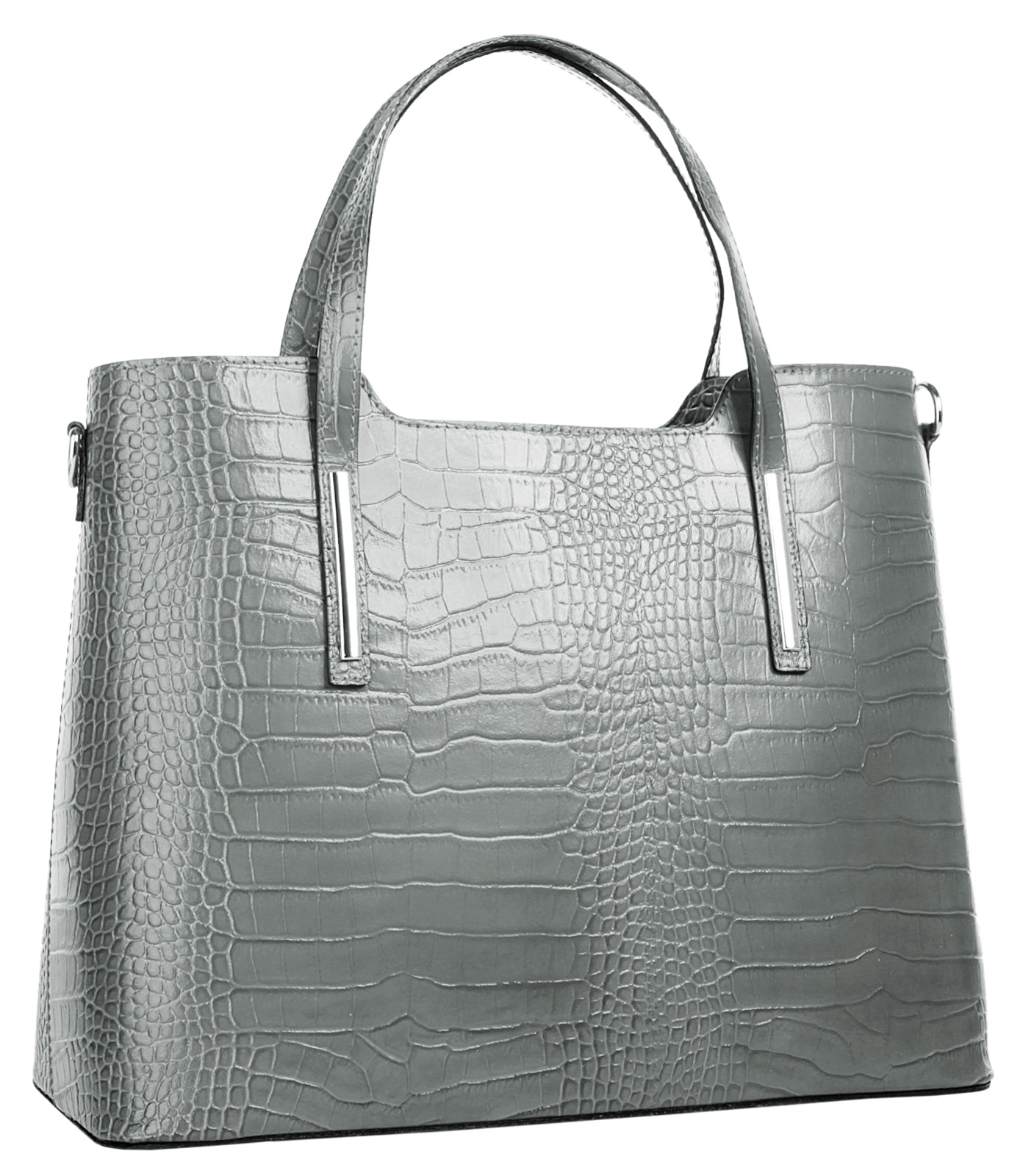 Ein eleganter Auftritt ist mit der Leder Handtasche von Cluty ein Leichtes! Markant und glamourös ist der Reptilien-Look der Tasche. Egal ob Business Meeting oder ein schickes Abendessen, die Leder Handtasche setzt Sie perfekt in Szene! Das Hauptfach ist schön geräumig und lässt sich mit einem Reißverschluss sicher verschließen. Zwei Henkel und ein abnehmbarer Schulterriemen bieten verschiedene Tragemöglichkeiten.* Made in Italy* Höhe 37 cm x Breite 29 cm x Tiefe 16 cm* 100 % echtes Leder* 1 Hauptfach mit Reißverschluss* 1 Reißverschlussfach innen* 1 Smartphonefach innen* 2 Tragehenkel* 1 abnehmbarer Schulterriemen