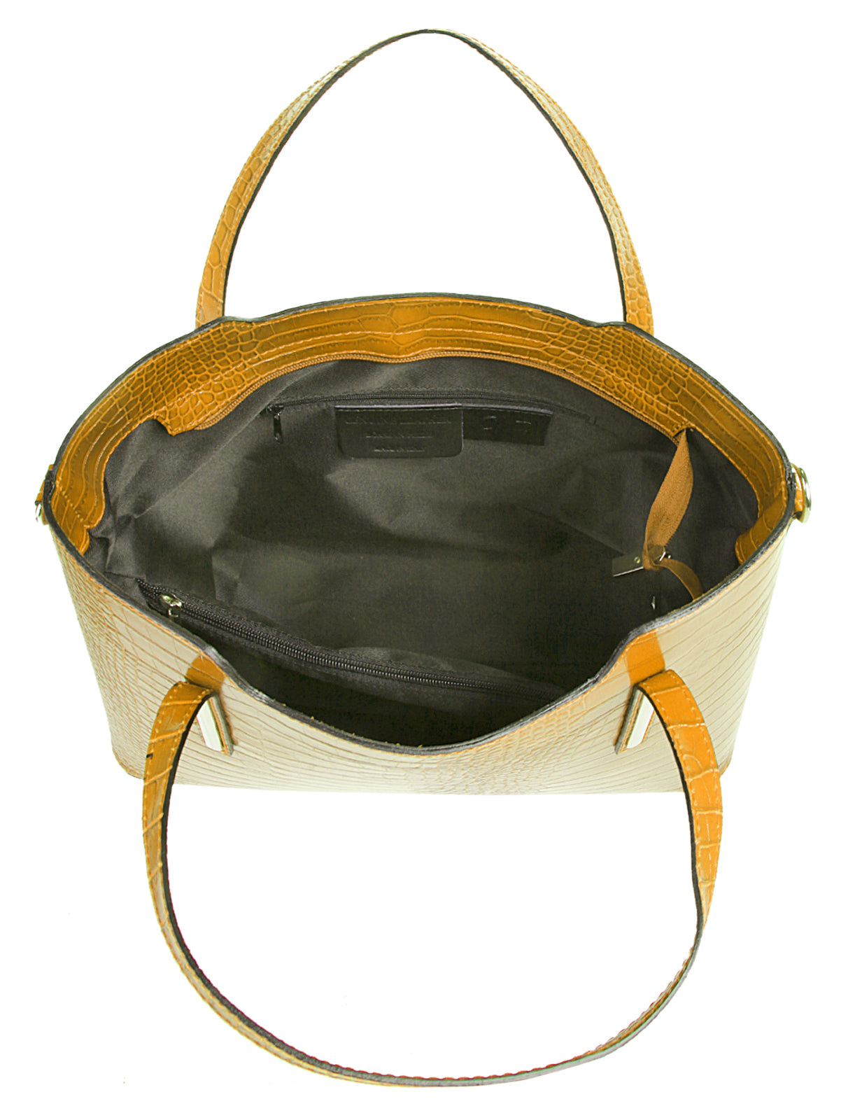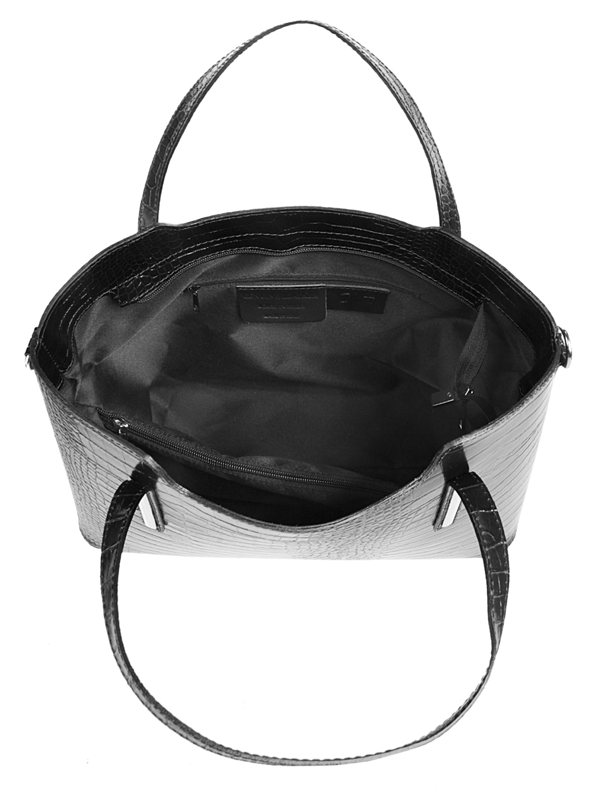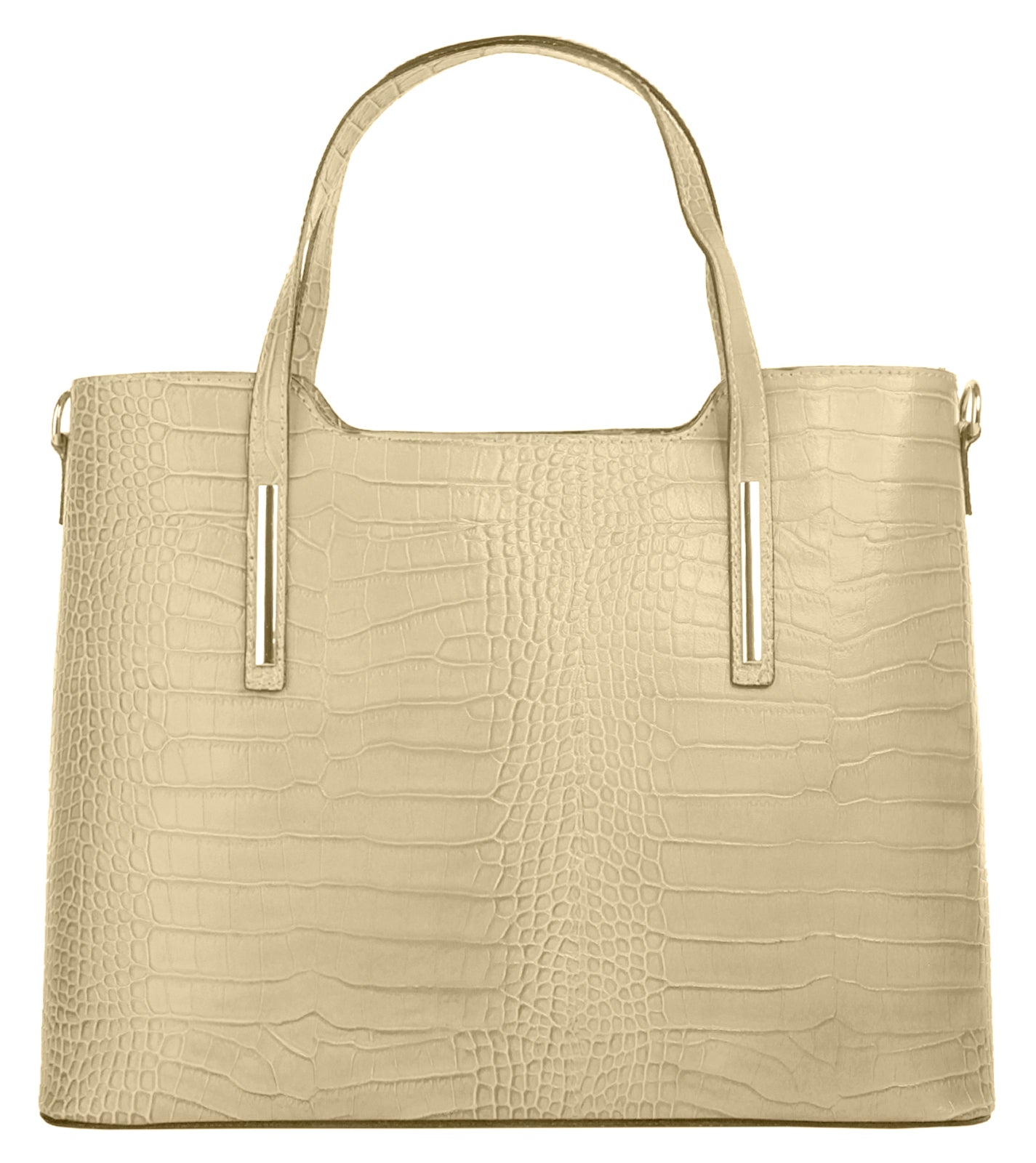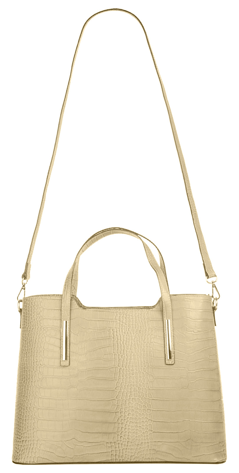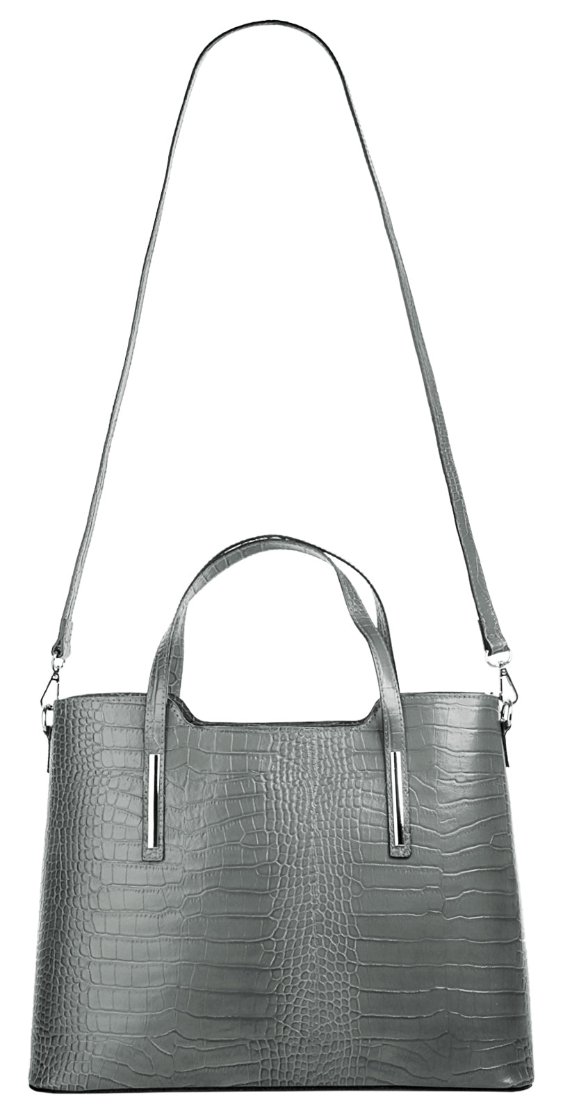 Ein eleganter Auftritt ist mit der Leder Handtasche von Cluty ein Leichtes! Markant und glamourös ist der Reptilien-Look der Tasche. Egal ob Business Meeting oder ein schickes Abendessen, die Leder Handtasche setzt Sie perfekt in Szene! Das Hauptfach ist schön geräumig und lässt sich mit einem Reißverschluss sicher verschließen. Zwei Henkel und ein abnehmbarer Schulterriemen bieten verschiedene Tragemöglichkeiten.* Made in Italy* Höhe 37 cm x Breite 29 cm x Tiefe 16 cm* 100 % echtes Leder* 1 Hauptfach mit Reißverschluss* 1 Reißverschlussfach innen* 1 Smartphonefach innen* 2 Tragehenkel* 1 abnehmbarer Schulterriemen