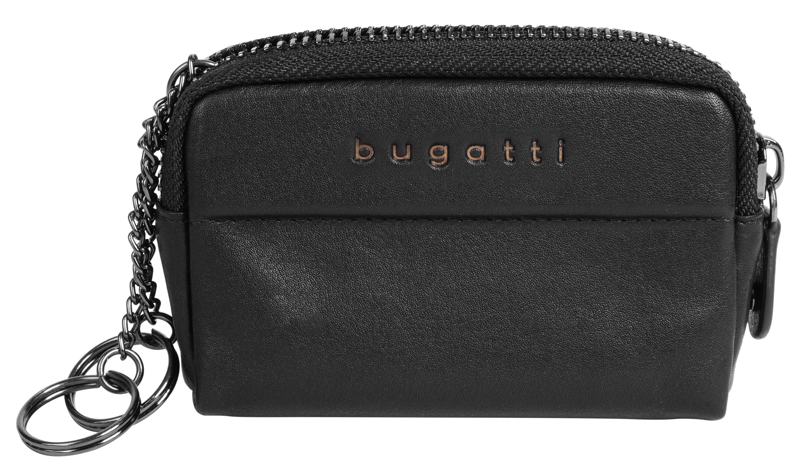 Mit der Leder Schlüsseltasche von bugatti können Sie sich vom lästigen Kramen nach dem Schlüssel verabschieden. Das handliche Accessoire verwahrt sie gut befestigt an einem der beiden Schlüsselringe. Auch ein großer Schlüsselbund kann hier verstaut werden - das bauchige Hauptfach machts möglich. Ein RFID-Schutz verhindert das unautorisierte Auslesen Ihrer sensiblen Kartendaten. So sind Ihre Autoschlüssel, Transponder und Schlüsselkarten vor Datendiebstahl geschützt.