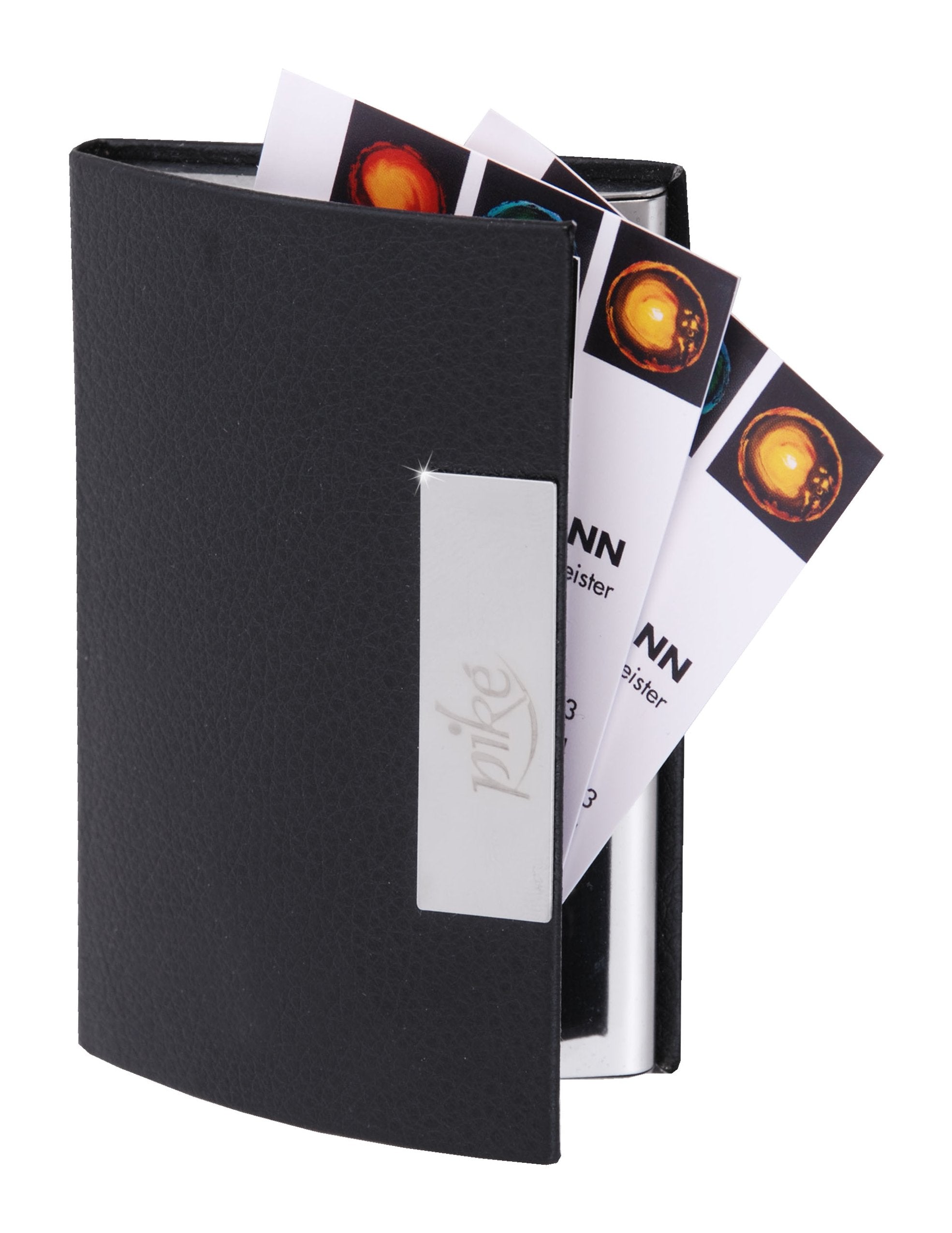 Dieses Visitenkartenetui von piké besticht durch sein elegantes Design. Die Kombination aus dezentem Schwarz und edlem Silber ist besonders harmonisch und passt daher ideal zu jedem Outfit. Der Innenraum des Etuis ist mit samtigem Stoff ausgekleidet. Überzeugen Sie Geschäftspartner und neue Kontakte schon beim ersten Eindruck.