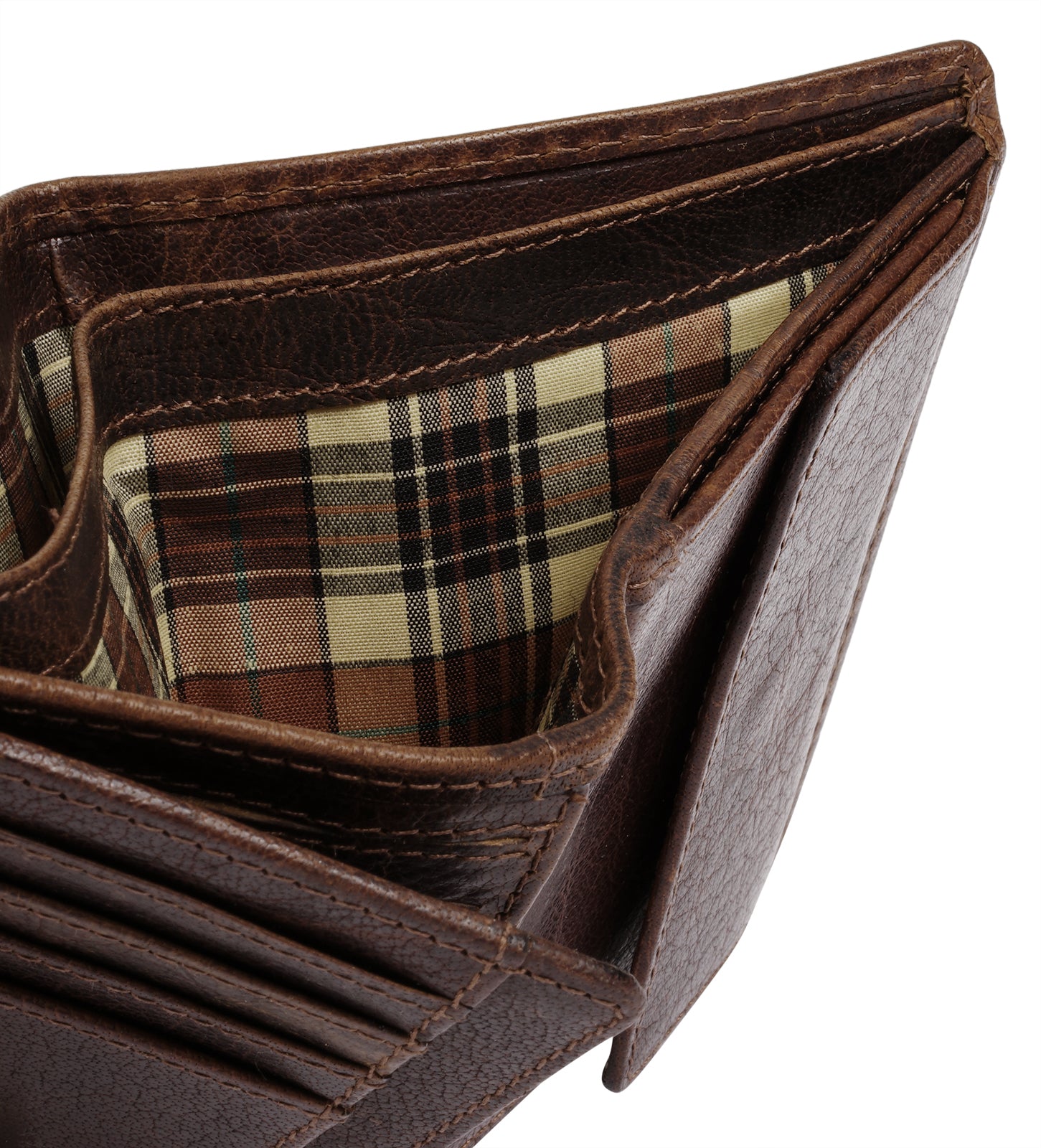 Eine Leder Geldbörse im Hochformat mit Charakter - präsentiert von bruno banani. Die individuelle Strukturprägung des Leders gibt Ihrem neuen Portemonnaie das gewisse Extra! Die funktionale Ausstattung der 2-fach klappbaren Geldbörse sorgt für eine kompakte Verwahrung Ihrer Karten- & Bargeldoptionen. Nutzen Sie das Sichtfach in Mesh-Optik für Ihre Bahncard oder Ausweis; auch Fotos Ihrer Liebsten finden hier ihren Platz. Komplettiert wird Ihre individuelle Geldbörse durch akzentuierte Sattlernähte.