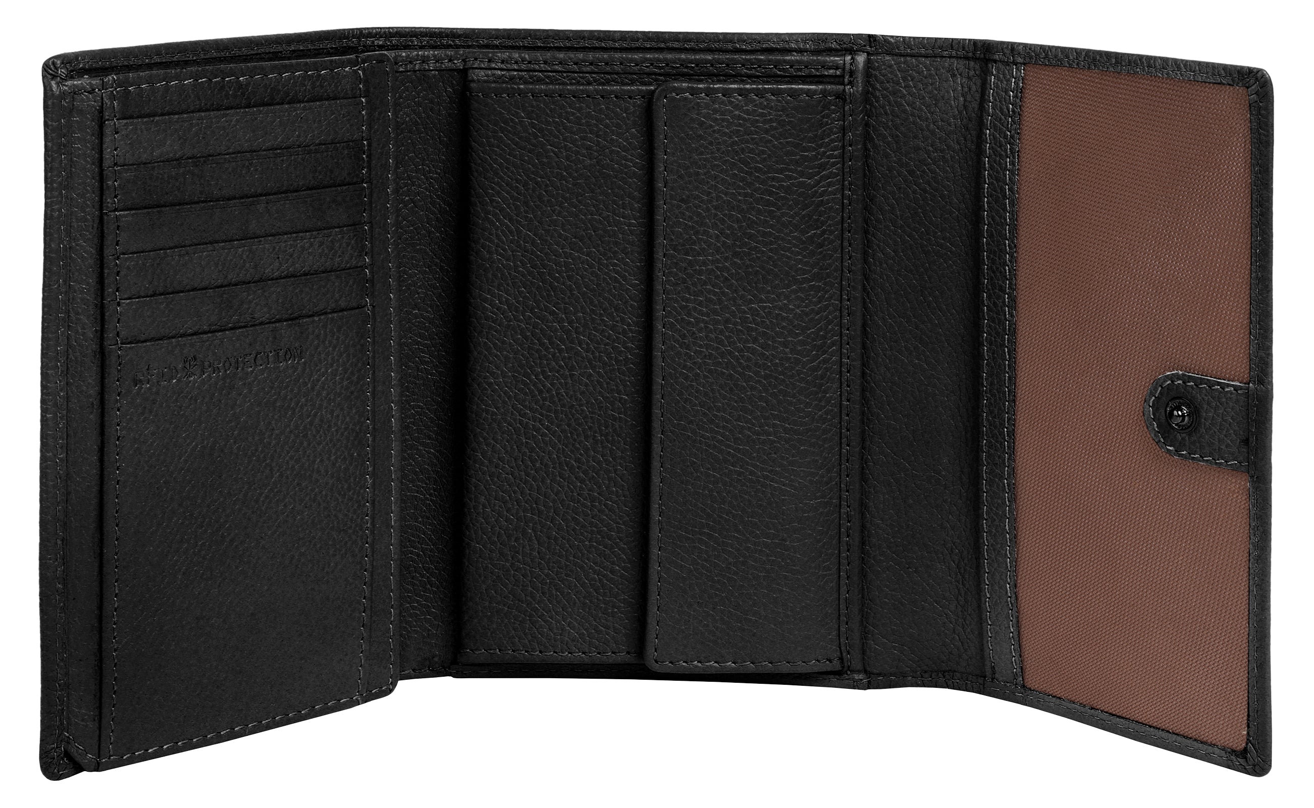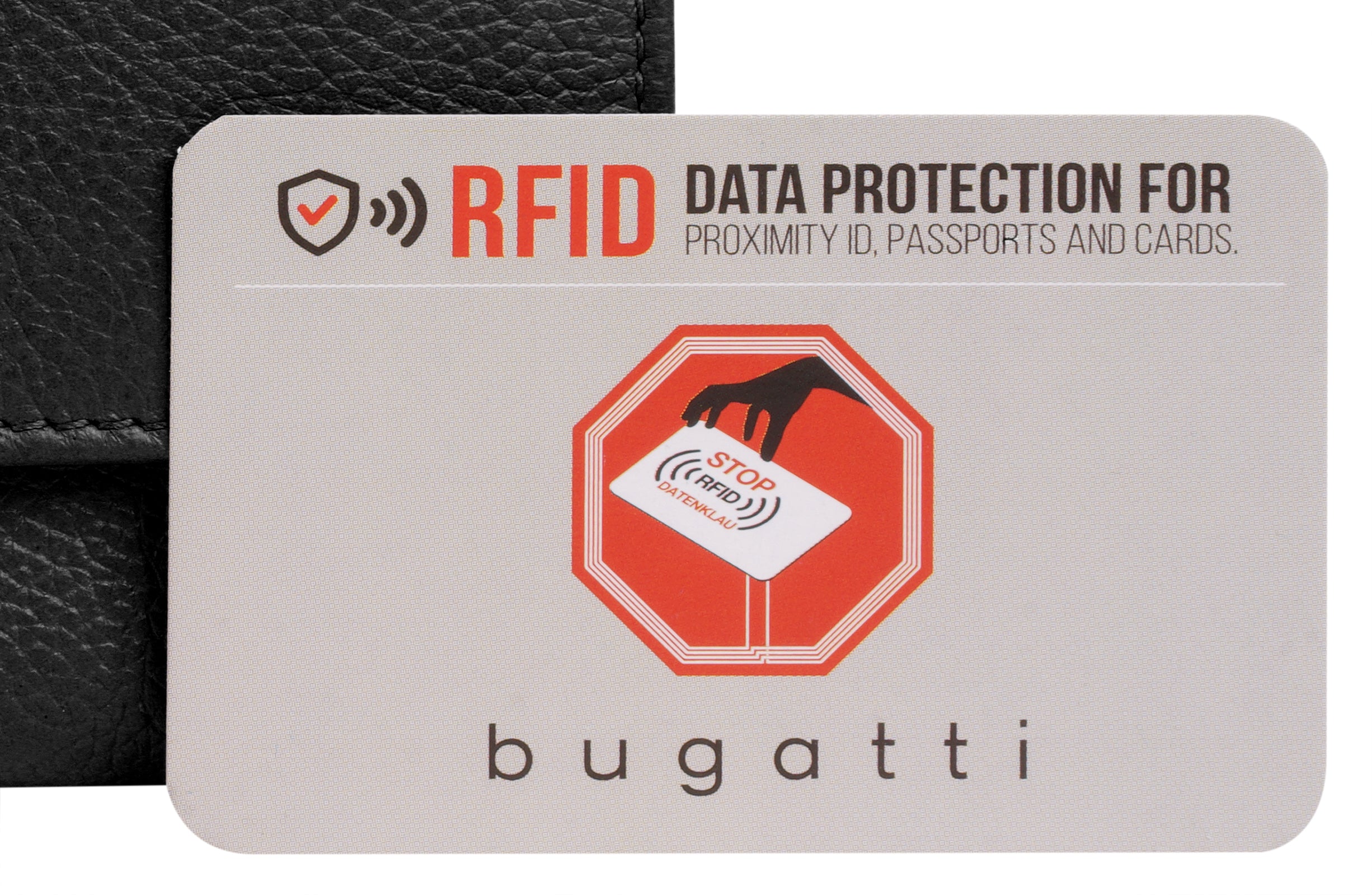 Schlicht und elegant - die Geldbörse von bugatti. Das klassische Portemonnaie hat ein breites Fächerrepertoire zu bieten. Karten- und Einsteckfächer, Sichtfächer, ein Münzfach sowie Geldscheinfächer: all das steht Ihnen zur Verfügung. Und das Beste: Ihre privaten Kartendaten sind durch einen RFID-Schutz vor unautorisiertem Auslesen geschützt.