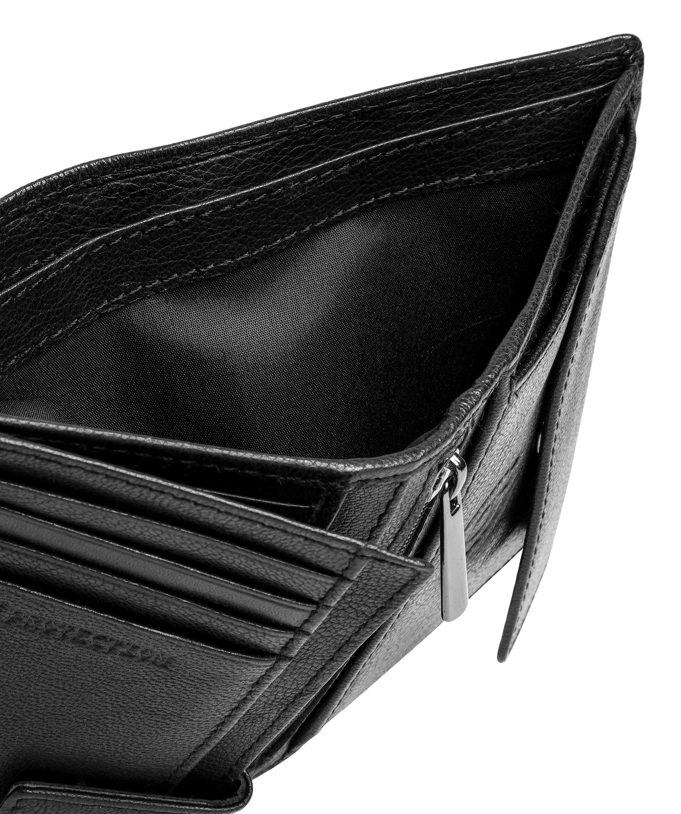 Lassen Sie sich von der klassischen Leder Geldbörse von bugatti begeistern! Das schmale Portemonnaie zeichnet sich durch ein handliches Format und eine durchdachte Fächeraufteilung aus. So bietet das zweifach klappbare Hauptfach eine breite Auswahl an Einsteckmöglichkeiten für Bargeld, Bankkarten und mehr an. Darunter Karten- und Einsteckfächer, Scheinfächer sowie jeweils ein Sicht-, Münz- und Reißverschlussfach. Ein RFID-Schutz verhindert das unautorisierte Auslesen Ihrer privaten Kartendaten und sorgt für mehr Sicherheit.