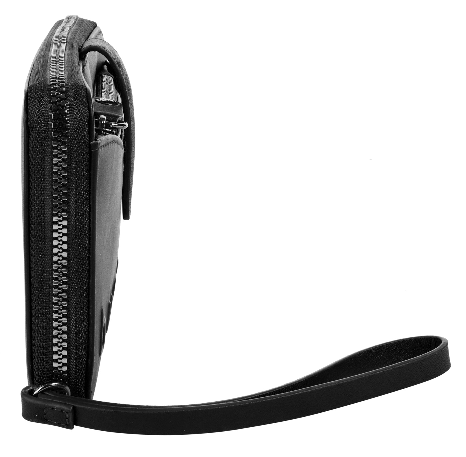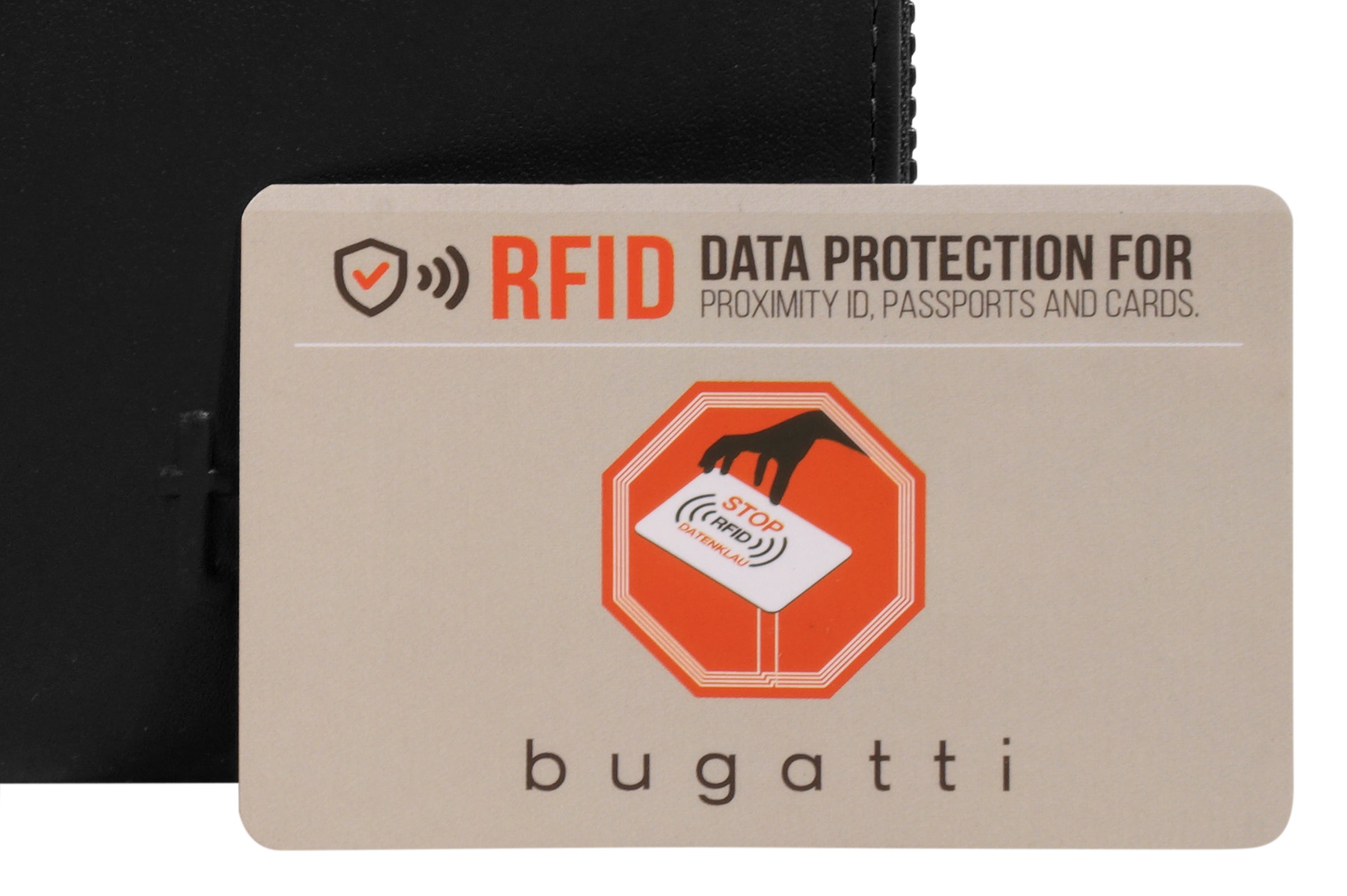 Eine Leder Geldbörse, die es in sich hat - präsentiert von bugatti. Beim Betrachten der Vorderseite fällt ein geräumiges Einsteckfach auf, welches bei näherer Betrachtung ein herausnehmbares Schlüsseltäschchen mit integrierten Schlüsselringen enthält. Das Portemonnaie selbst bietet zahlreiche Einsteckmöglichkeiten für all Ihre Karten- und Bargeldoptionen. Und für mehr Sicherheit verhindert ein RFID-Schutz das unautorisierte Auslesen Ihrer privaten Kartendaten.