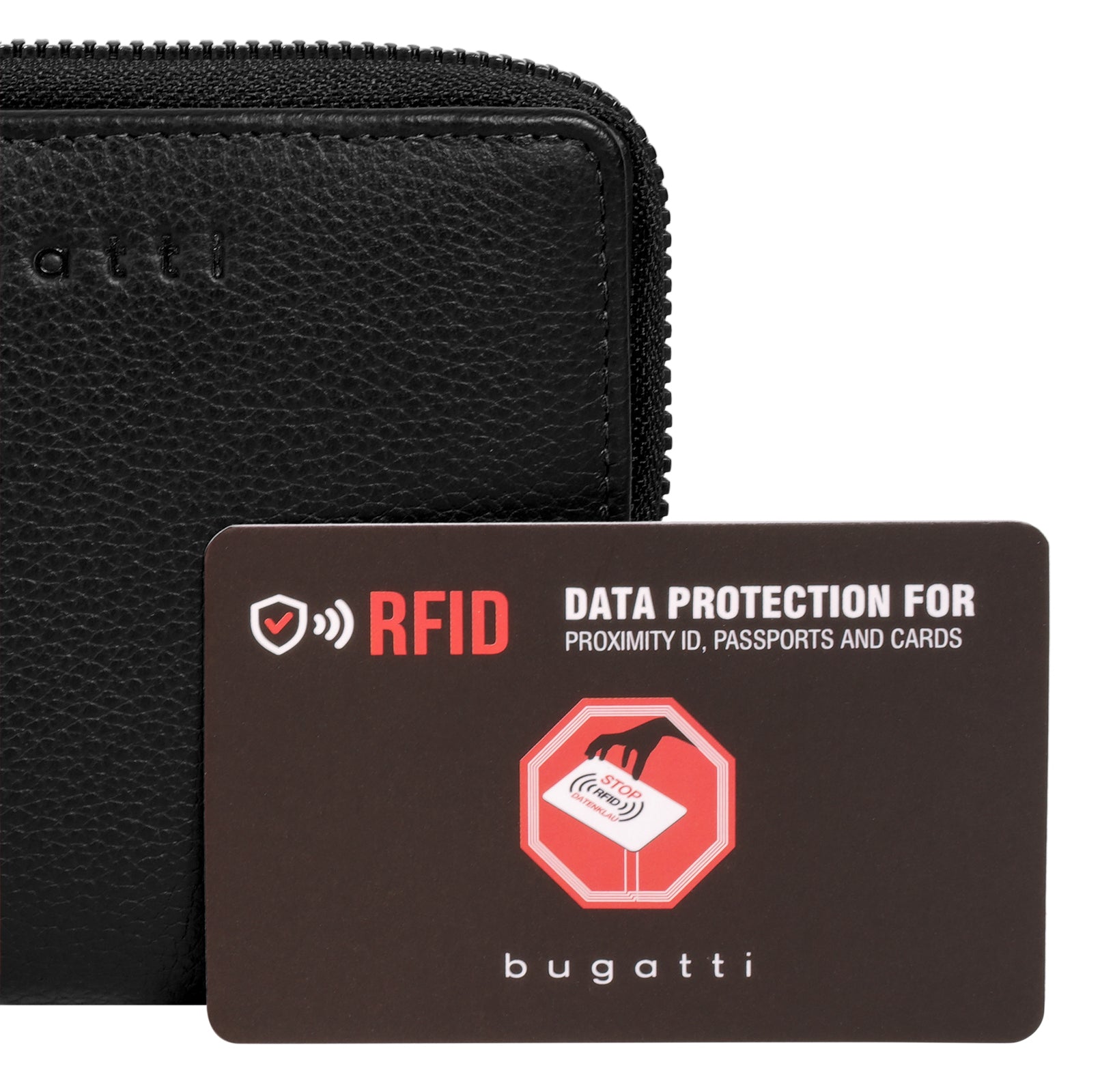 Schlichtes, elegantes Design trifft auf erstklassige Innenausstattung: die Leder Geldbörse von bugatti. Ganz im Sinne des Minimalismus setzt ihr Äußeres auf klare Flächen und ausgewählte kontrastierende Akzente aus Metall. Das Fächerrepertoire besteht aus diversen Karten- und Steckfächern, einem Geldschein- sowie einem Münzfach und ist auf zwei separat zugängliche Bereiche verteilt. Mehr Sicherheit wird einerseits durch den umlaufenden Reißverschluss des Münzfachs gewährleistet, andererseits durch den RFID-Schutz, welcher unautorisiertes Auslesen Ihrer privaten Kartendaten, und damit deren Diebstahl, verhindert.