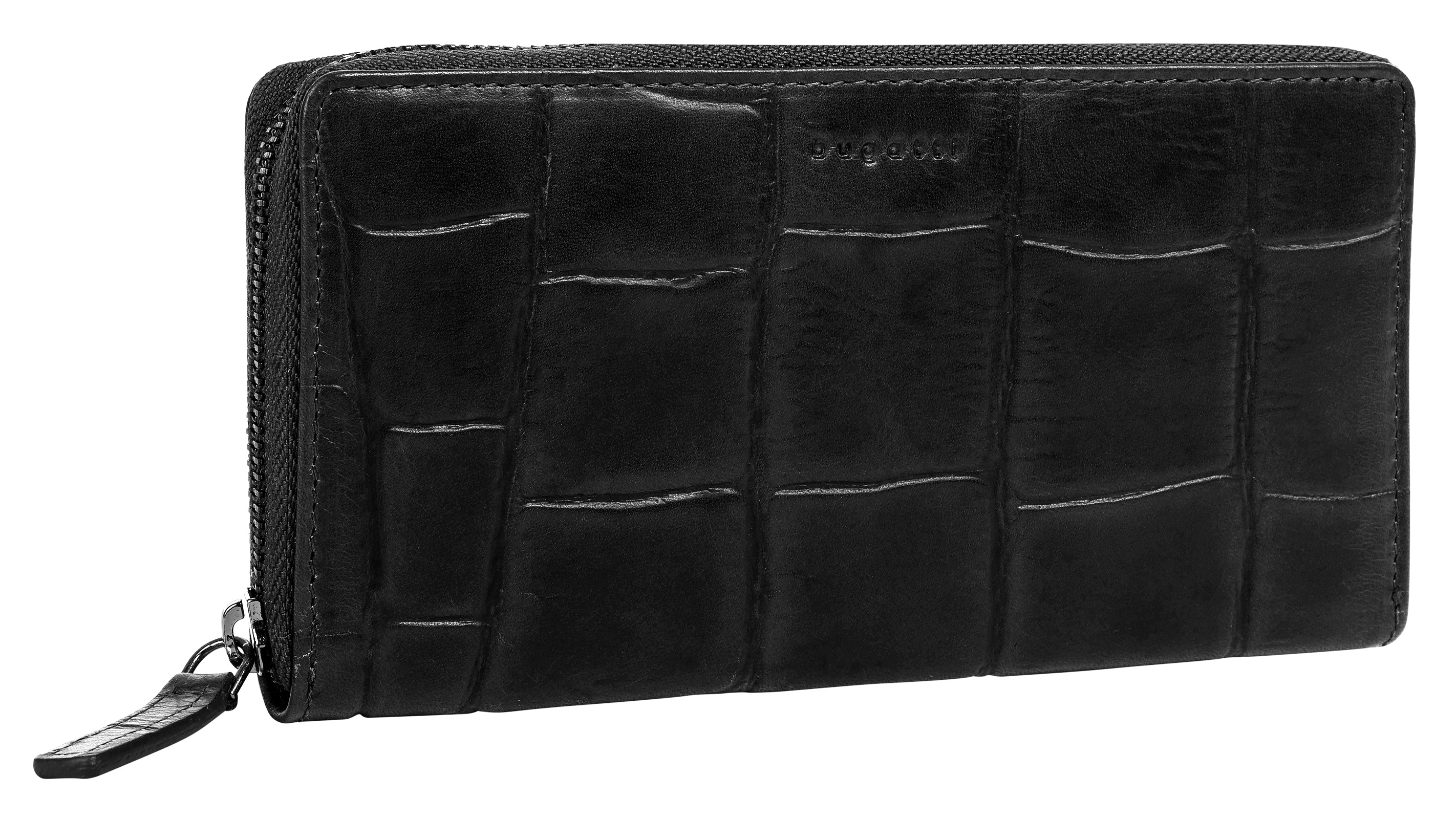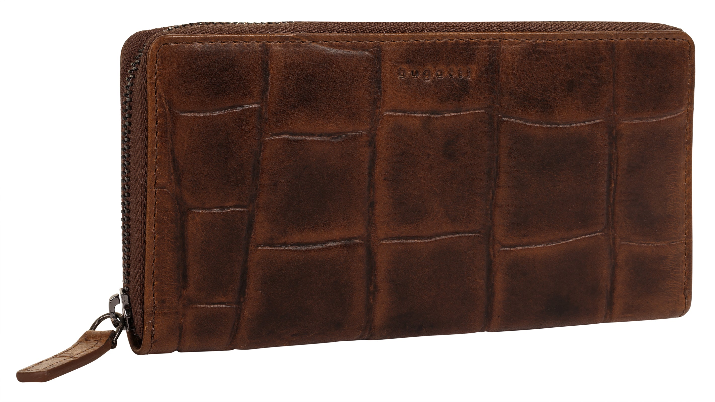 Ihr neues Lieblings-Accessoire: die Leder Geldbörse im Kroko-Look von bugatti! Sie bietet Platz für Kartenoptionen aller Art, Führerschein, Bargeld, Kassenbons und noch viel mehr. Dabei sorgen ein umlaufender Reißverschluss und ein RFID-Schutz, welcher das unautorisierte Auslesen Ihrer privaten Kartendaten verhindert, für mehr Sicherheit. Das Portemonnaie hebt sich optisch durch seine edle Reptilien-Prägung ab und unterstreicht somit Ihren guten Geschmack.