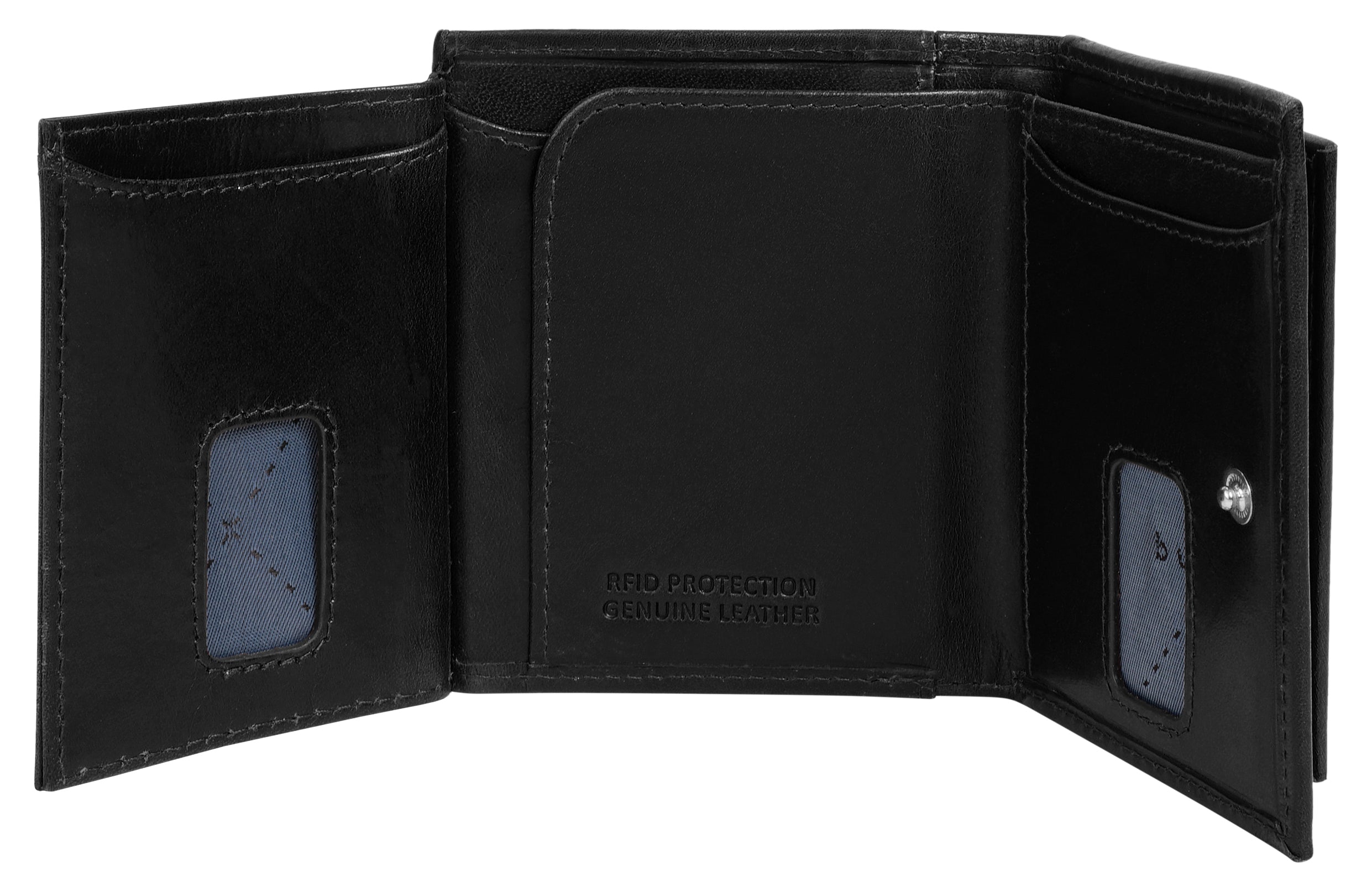 Die Leder Geldbörse von bugatti zeigt sich insbesondere auf Reisen, Konzerten und beim abendlichen Restaurantbesuch von ihrer besten Seite! Mit dem schmalen Design, geringen Gewicht sowie Einsteckmöglichkeiten für Karten- & Bargeldoptionen ist sie eine praktische Alternative zum großformatigen Portemonnaie. Gleichzeitig passt sie dadurch selbst in Clutches, Hosen- und Gürteltaschen. Ein RFID-Schutz verhindert unautorisiertes Auslesen Ihrer privaten Kartendaten und sorgt somit für noch mehr Sicherheit.