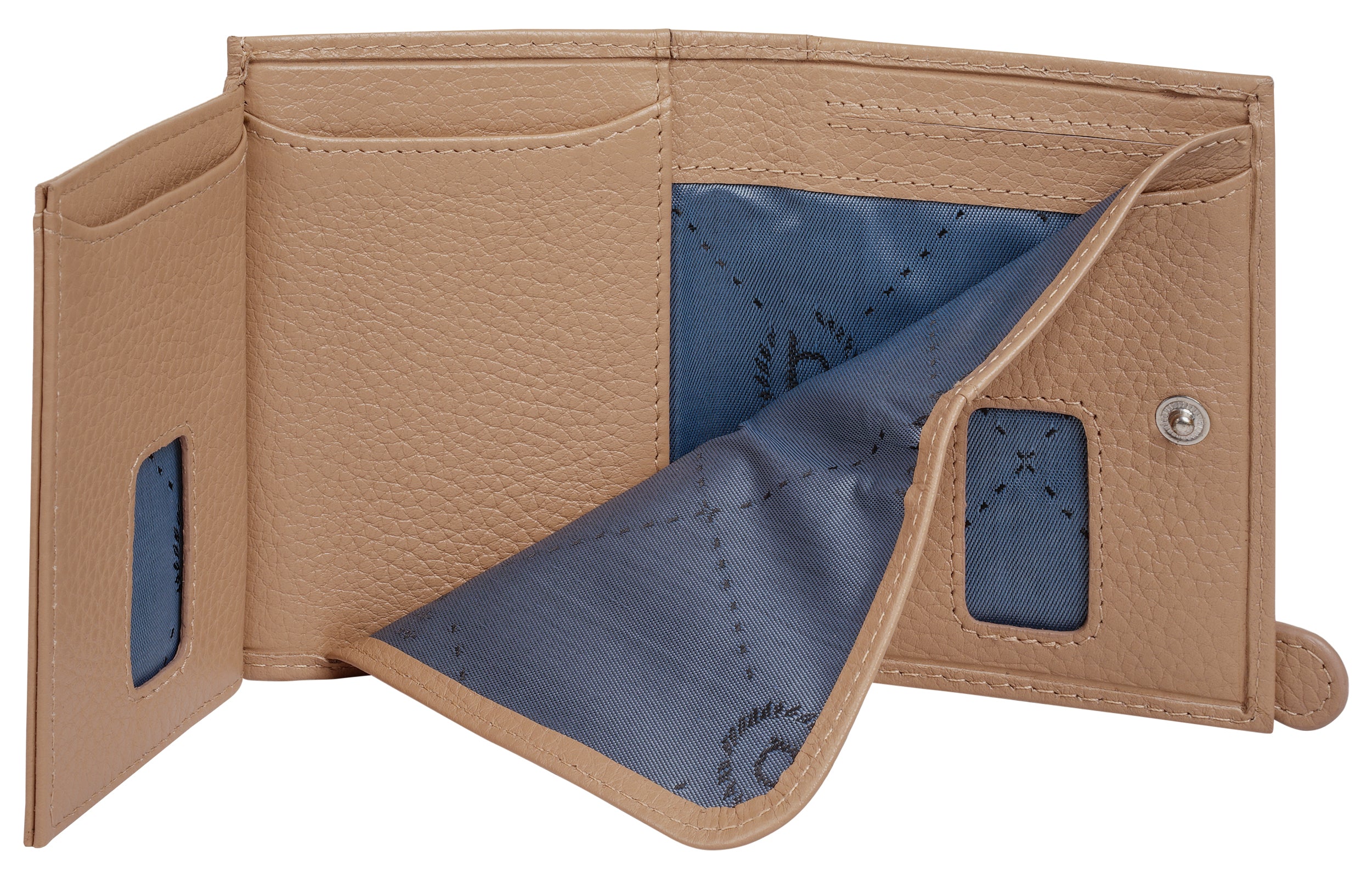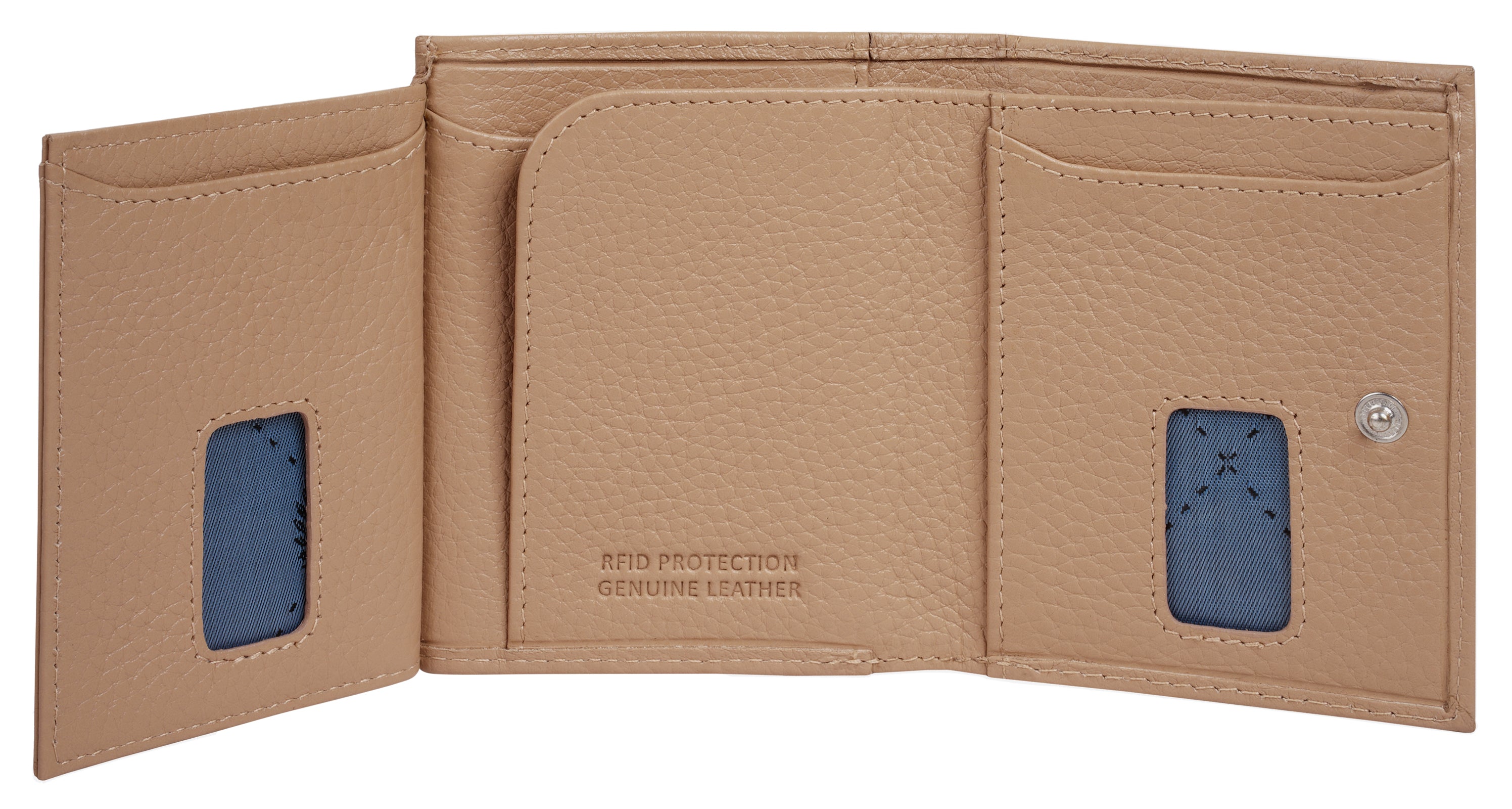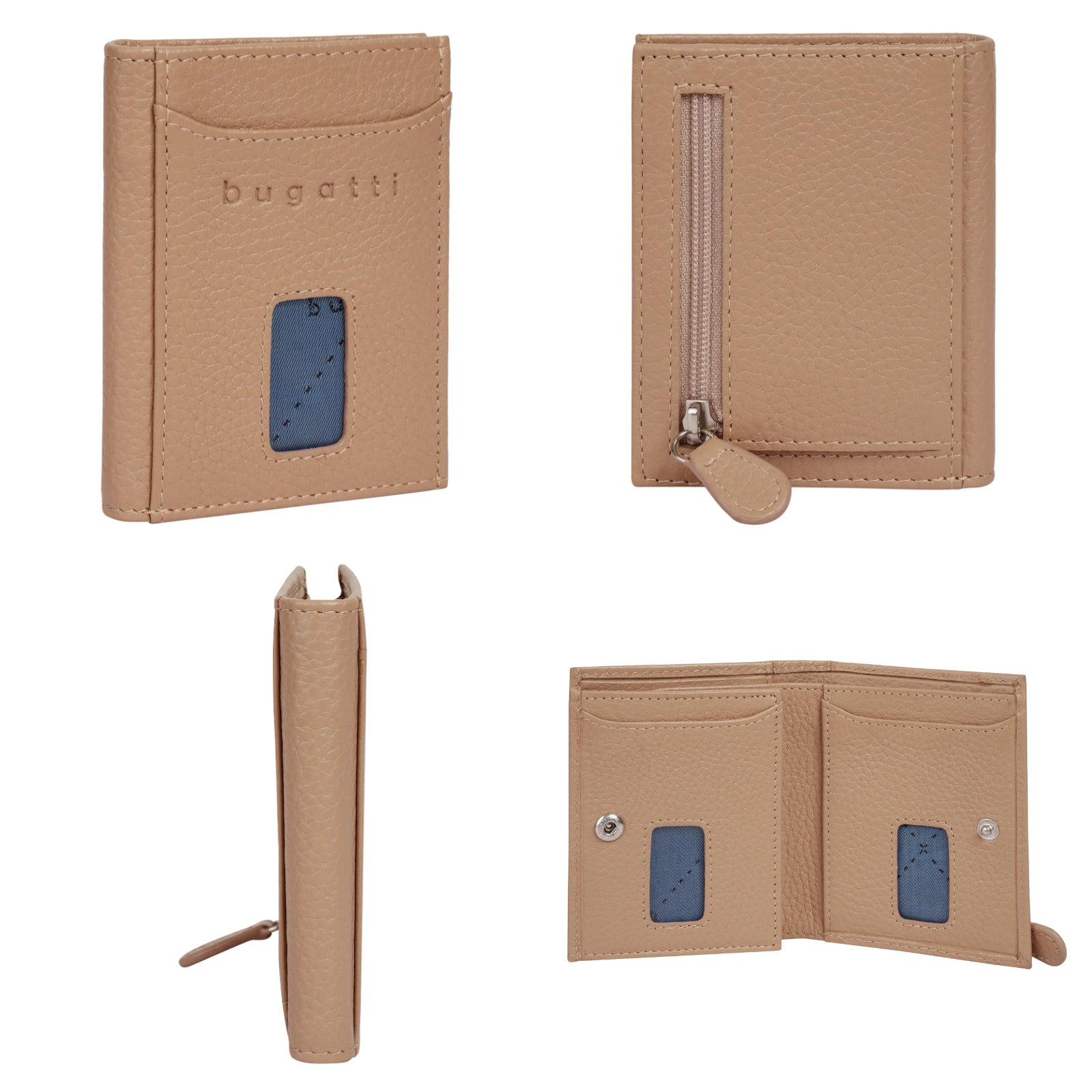 Alles Wichtige auf einen Blick: mit der Leder Geldbörse von bugatti! Dieses Accessoire im kompakten Kleinformat trägt ausgewählte Karten- & Bargeldoptionen und nimmt dabei dank seiner handlichen Größe und geringem Gewicht kaum Platz ein. Dadurch passt es selbst in Jacken- und Gürteltaschen oder auch Clutches und Etuis. Der integrierte RFID-Schutz verhindert dabei zuverlässig unautorisiertes Auslesen Ihrer privaten Kartendaten und bietet somit noch mehr Sicherheit.