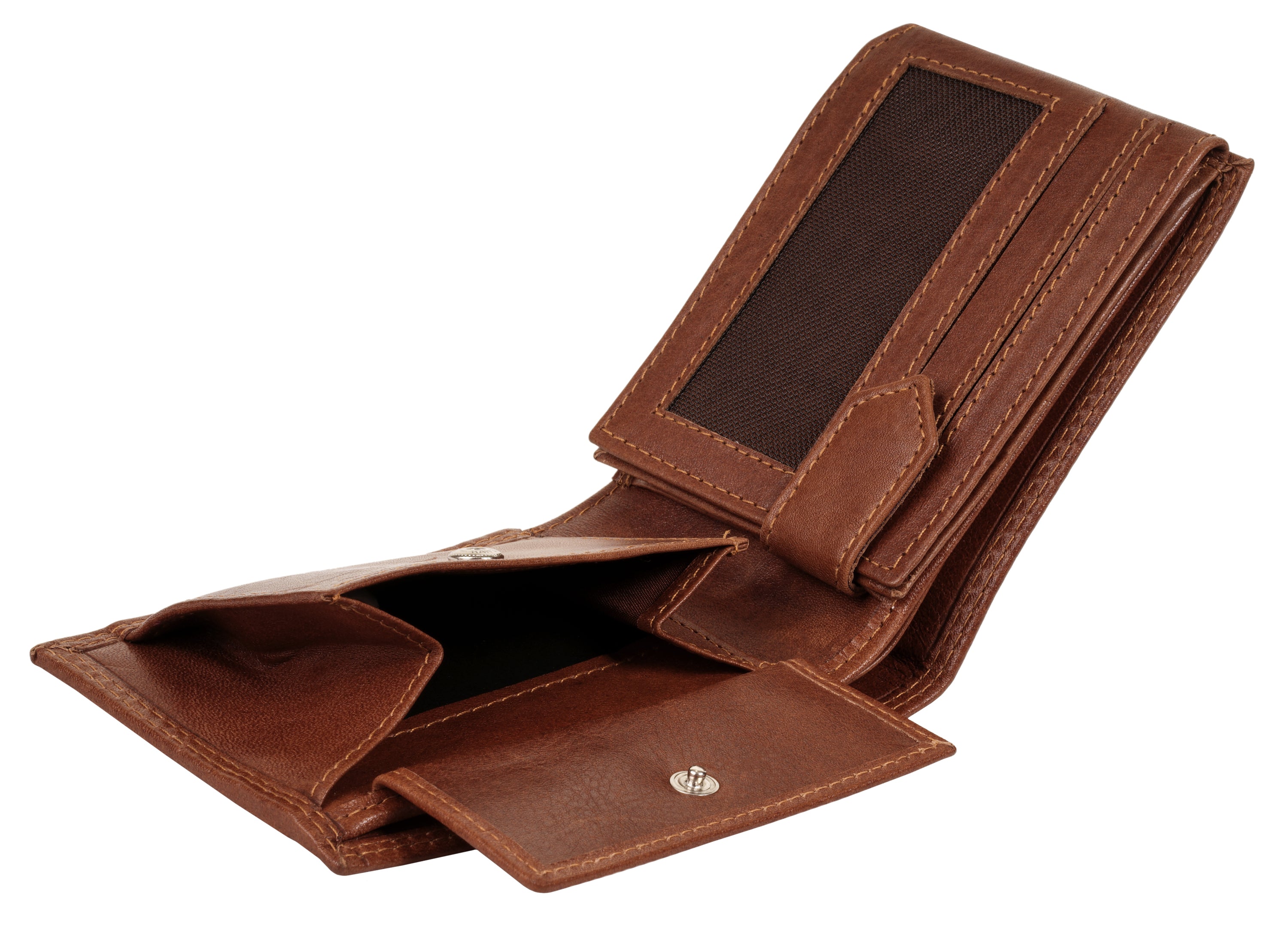 Die Leder Geldbörse von piké vereint Vintage-Look mit handlichem Format. Das 3-fach klappbare Portemonnaie verfügt über Einsteck- und Kartenfächer, Geldscheinfächer sowie einem Münzfach. Besonders sind die vielzählig vorhandenen Sichtfächer. So können Sie Dokumente und Ausweise stets sichtbar verwahren, aber auch Fotos Ihrer Lieben immer im Blick haben.