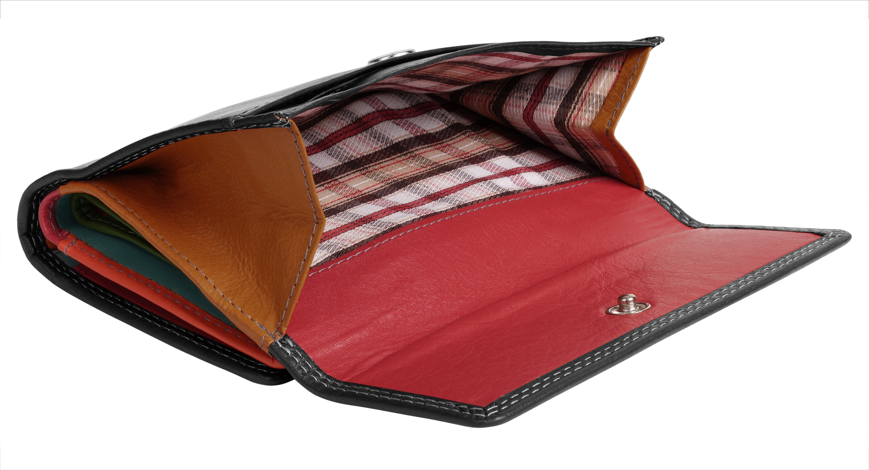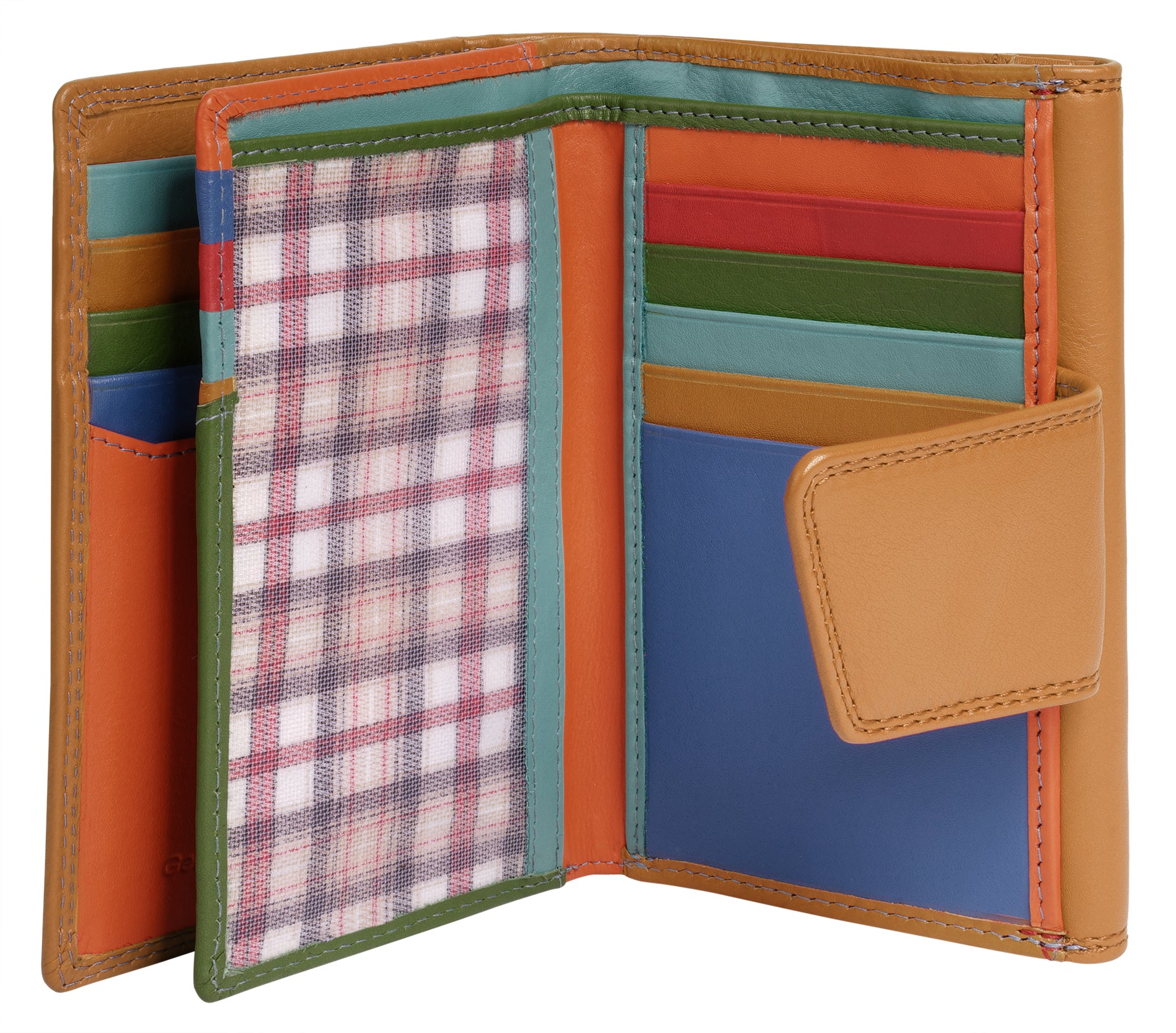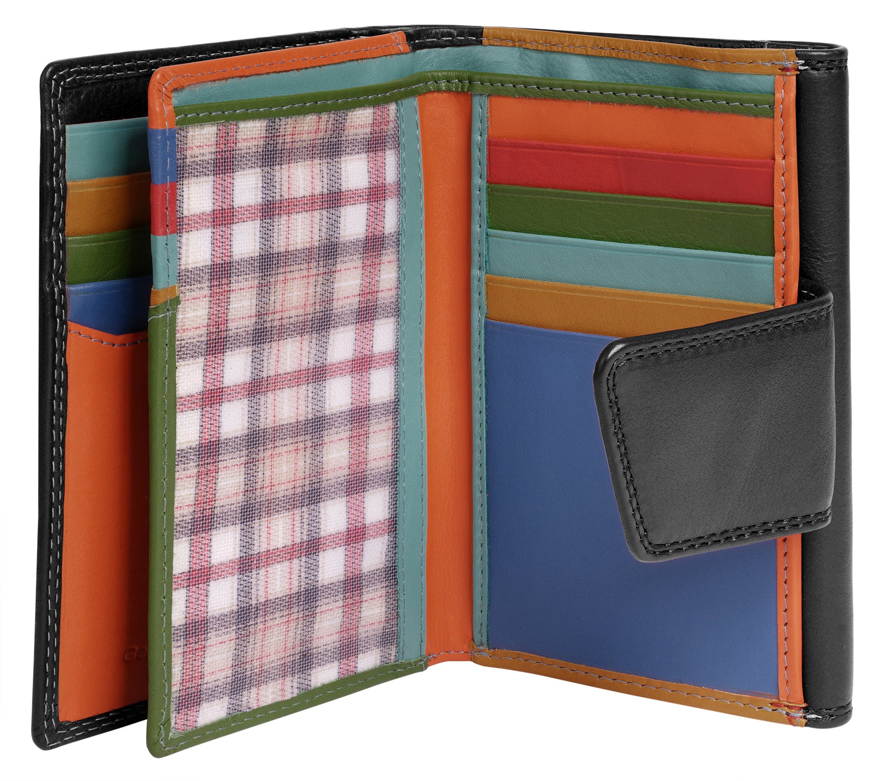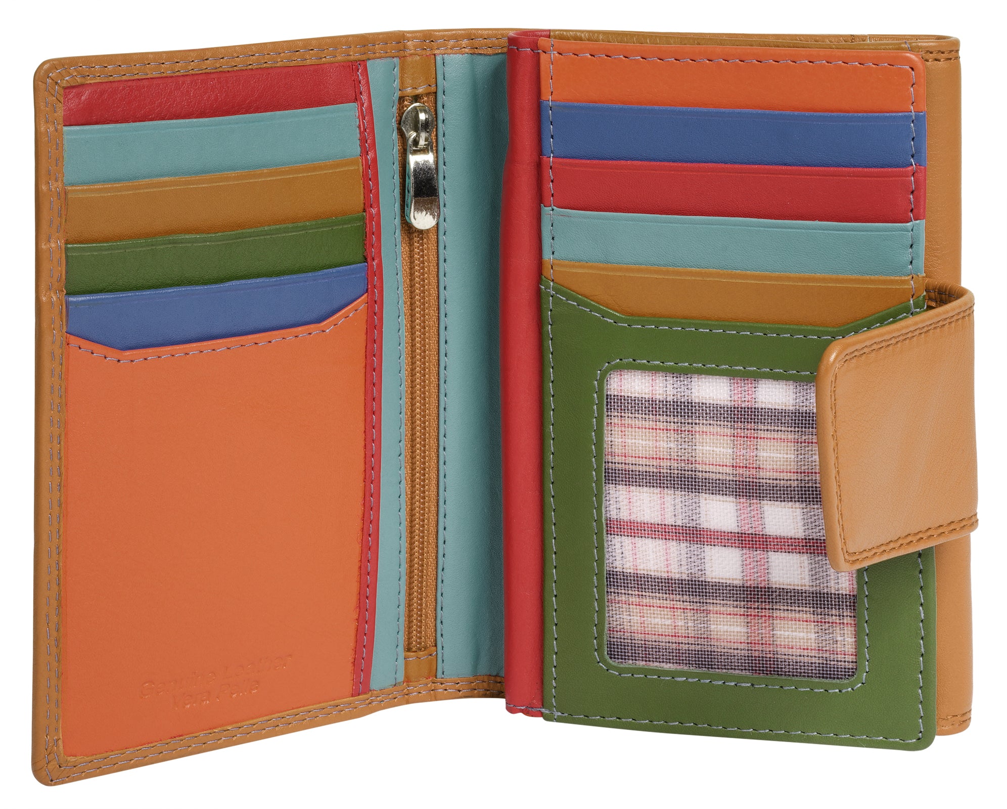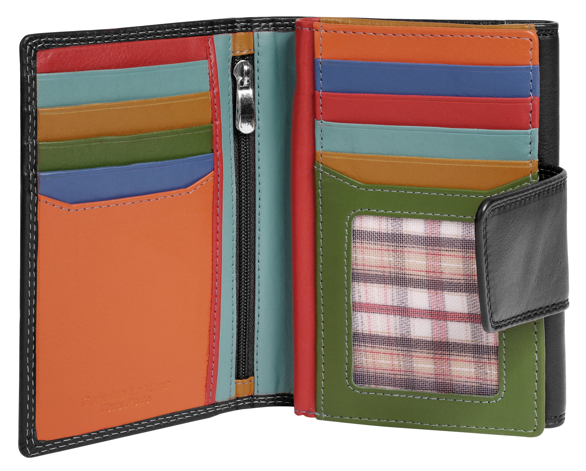 Praktischer und farbenfroher geht es kaum: Die Leder Geldbörse von Samantha Look wird Sie begeistern! Mit 14 Kartenfächern, 4 Steckfächern und 2 Sichtfächern haben Sie genug Platz für all Ihre wichtigen Karten und Dokumente. Das 2-fach klappbare Design mit einem außenliegenden Münzfach mit Druckknopfverschluss bietet schnellen Zugriff auf Ihre Karten- und Bargeldoptionen. Das zusätzliche Steckfach im Münzfach ist ideal für Coupons. Ein Druckknopfverschluss hält den wertvollen Inhalt Ihres modernes Portemonnaie sicher zusammen.