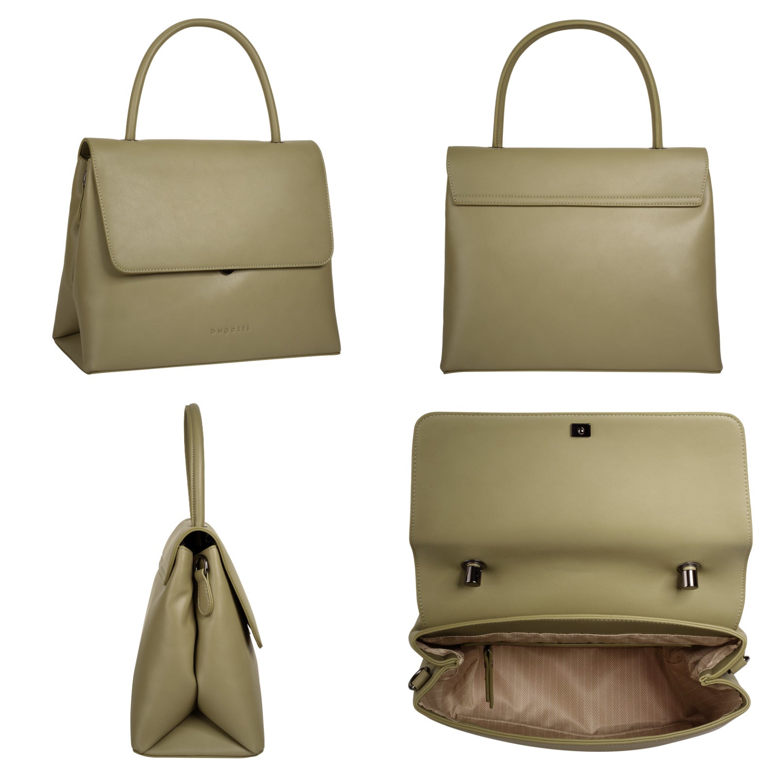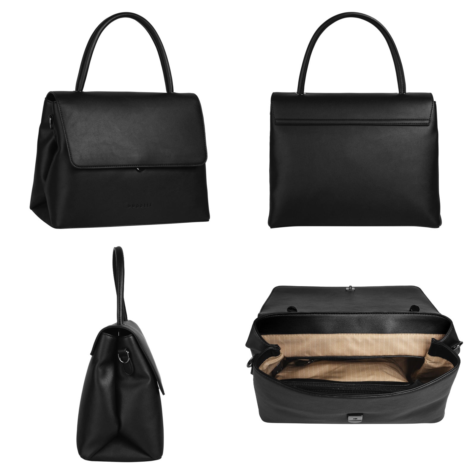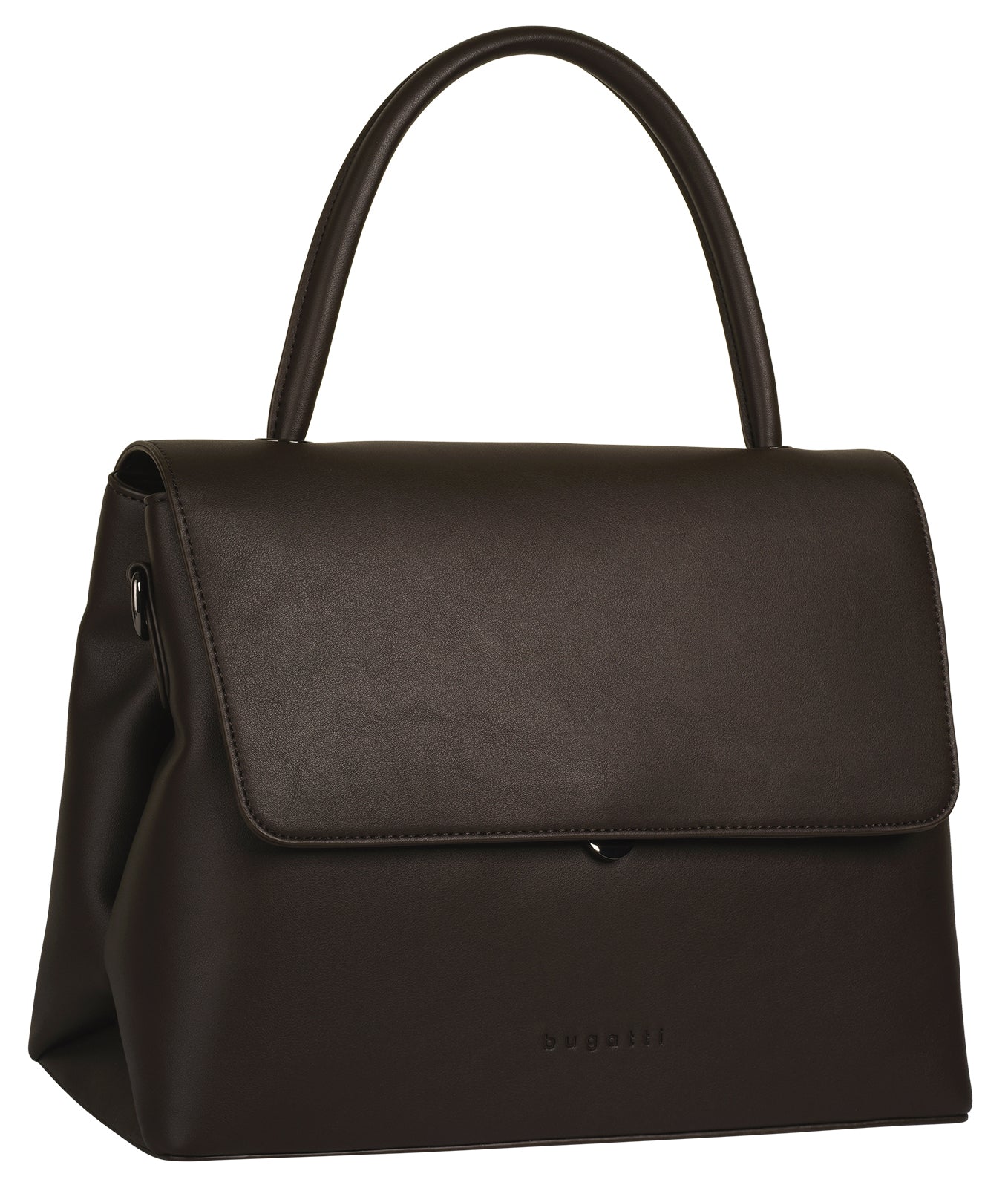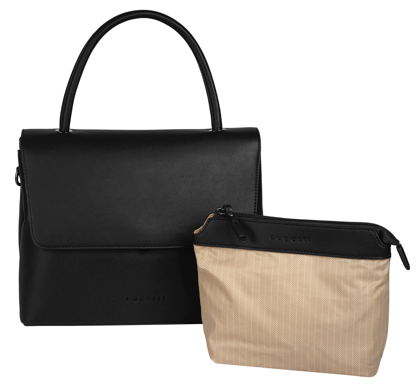 Sie ist schlicht, elegant, und unwiderstehlich: die Handtasche von bugatti! Setzen Sie Ihren Outfits mit diesen Statement Piece das modische Sahnehäubchen auf. Das Steckschloss fungiert dabei als edles Detail und hält die Tasche gleichzeitig sicher verschlossen. Das Hauptfach ist mit verschiedenen Einsteckmöglichkeiten ausgestattet, unter anderem einem Smartphonefach. So lassen sich wichtige Gegenstände geschützt und stets griffbereit verstauen. Das Highlight ist aber die verschließ- und herausnehmbare Innentasche, die sich hervorragend zur Organisation Ihres Tascheninhalts oder als Kosmetiktasche eignet. Wechseln Sie für maximalen Tragekomfort unterwegs zwischen festem Henkel und verstellbarem Schultergurt.