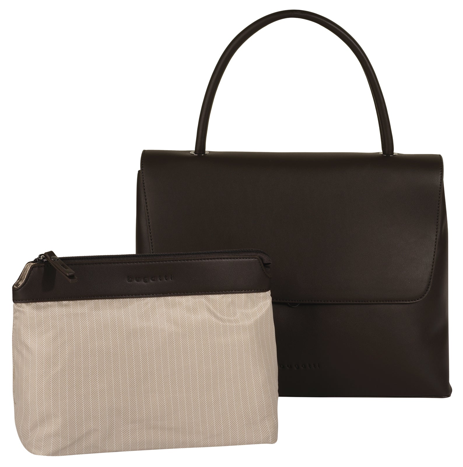 Modisches Accessoire und praktische Alltagsbegleiterin in einem: die Handtasche von bugatti! Ihr einfarbiges, minimalistisches Design steht ganz im Zeichen des Clean-Chic. So lässt sich die Tasche kinderleicht mit verschiedensten Outfits kombinieren. Im Inneren erwartet Sie eine Überraschung in Form der herausnehmbaren Innentasche. Ob als Kosmetiktasche oder für die Organisation Ihres Tascheninhalts, ihre Anwendungsmöglichkeiten sind grenzenlos! Verschiedene Einsteckmöglichkeiten im Hauptfach, darunter ein Smartphonefach, bewahren wichtige Gegenstände stets griffbereit für Sie auf. Und für maximalen Komfort unterwegs können Sie Ihr Trageerlebnis mithilfe des Henkels und abnehmbaren Schultergurts ganz einfach an Ihre Bedürfnisse anpassen.