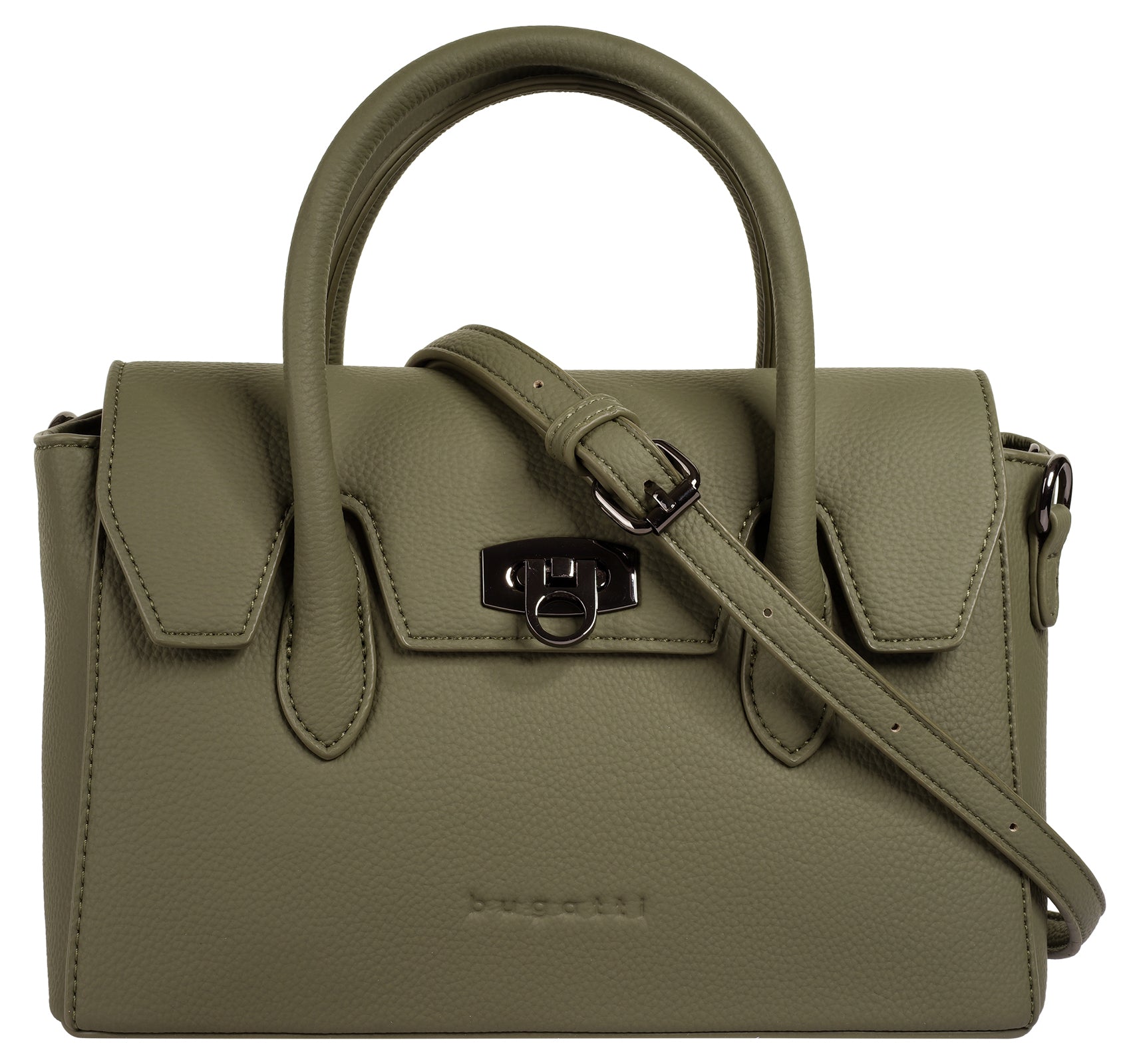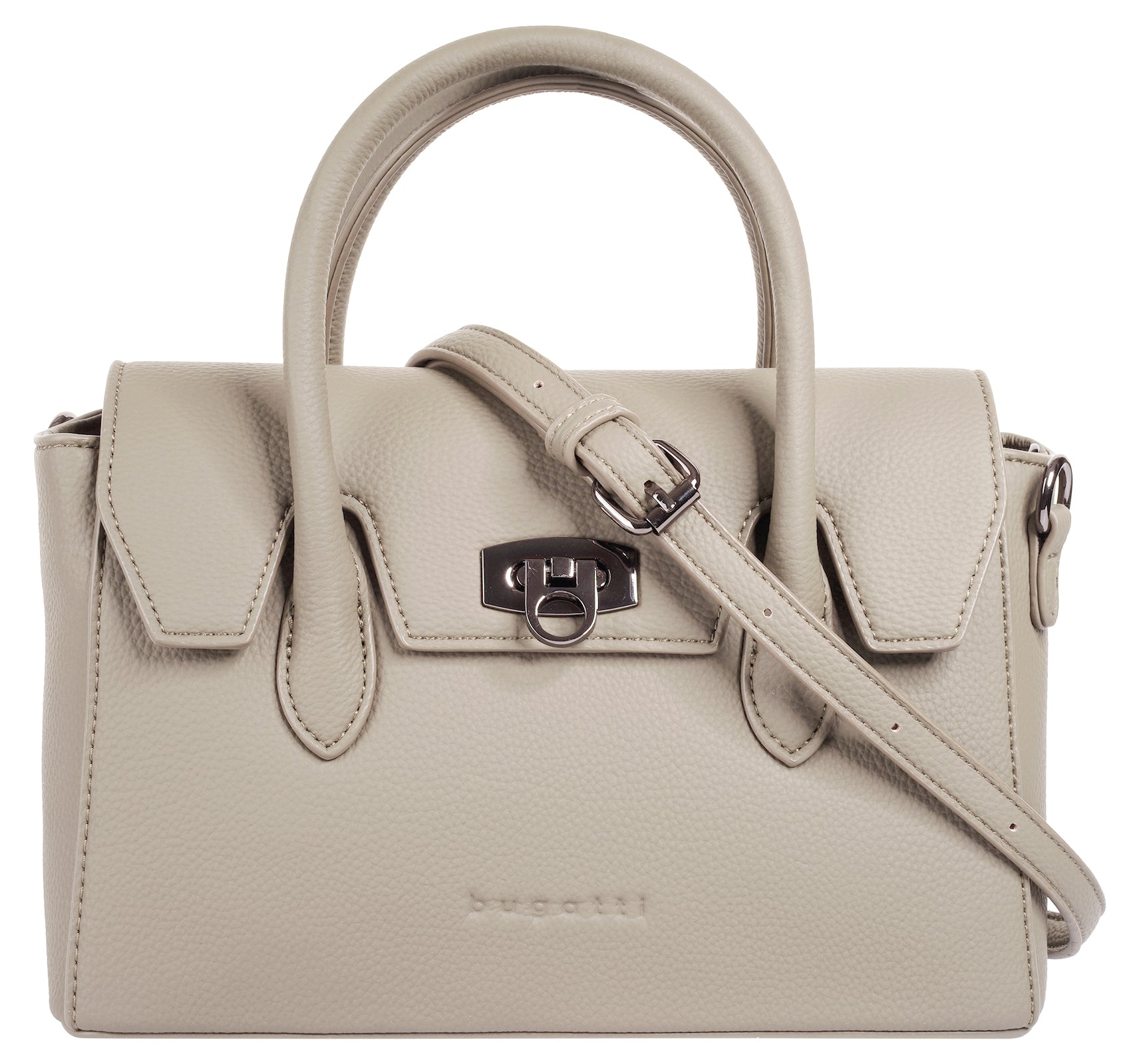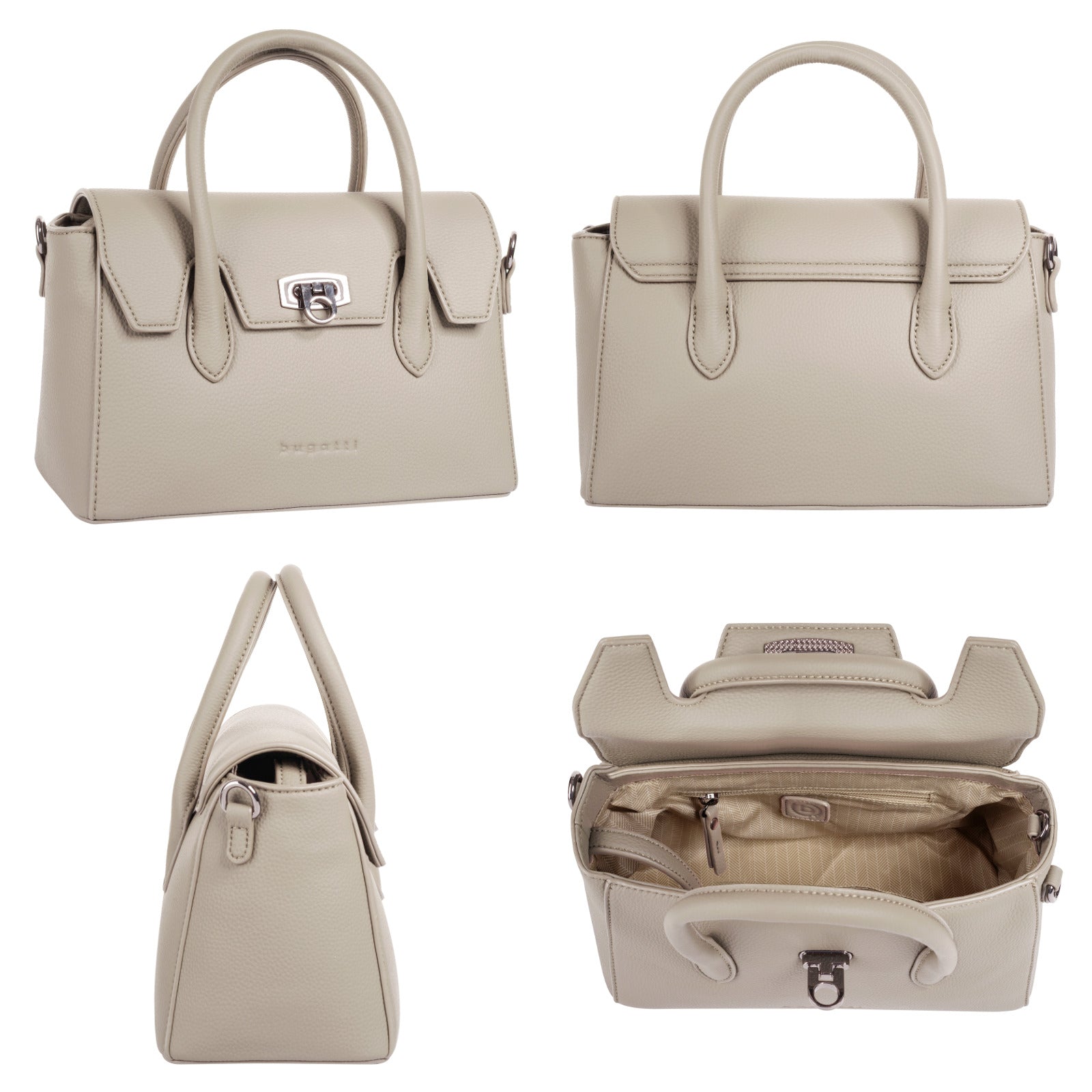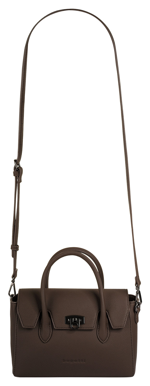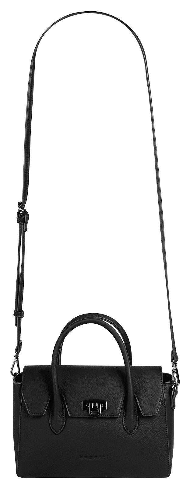 Setzen Sie Ihren Outfits mit der Handtasche von bugatti das Sahnehäubchen auf! Ob zu festlichen Anlässen, Abendveranstaltungen oder einfach in der Freizeit: Dank des Zusammenspiels aus standfester Form, minimalistischem Design und prägnanten Gunmetal-Elementen lässt sie sich kinderleicht kombinieren. Das Hauptfach im handlichen Format trägt Smartphone, Schlüssel, Portemonnaie und sogar eine kleine Flasche. Verschiedene Einsteckmöglichkeiten bewahren Ihre Essentials griffbereit auf. Der verstärkte Boden, abnehmbarer Schultergurt und die festen Henkel erhöhen den Tragekomfort unterwegs.