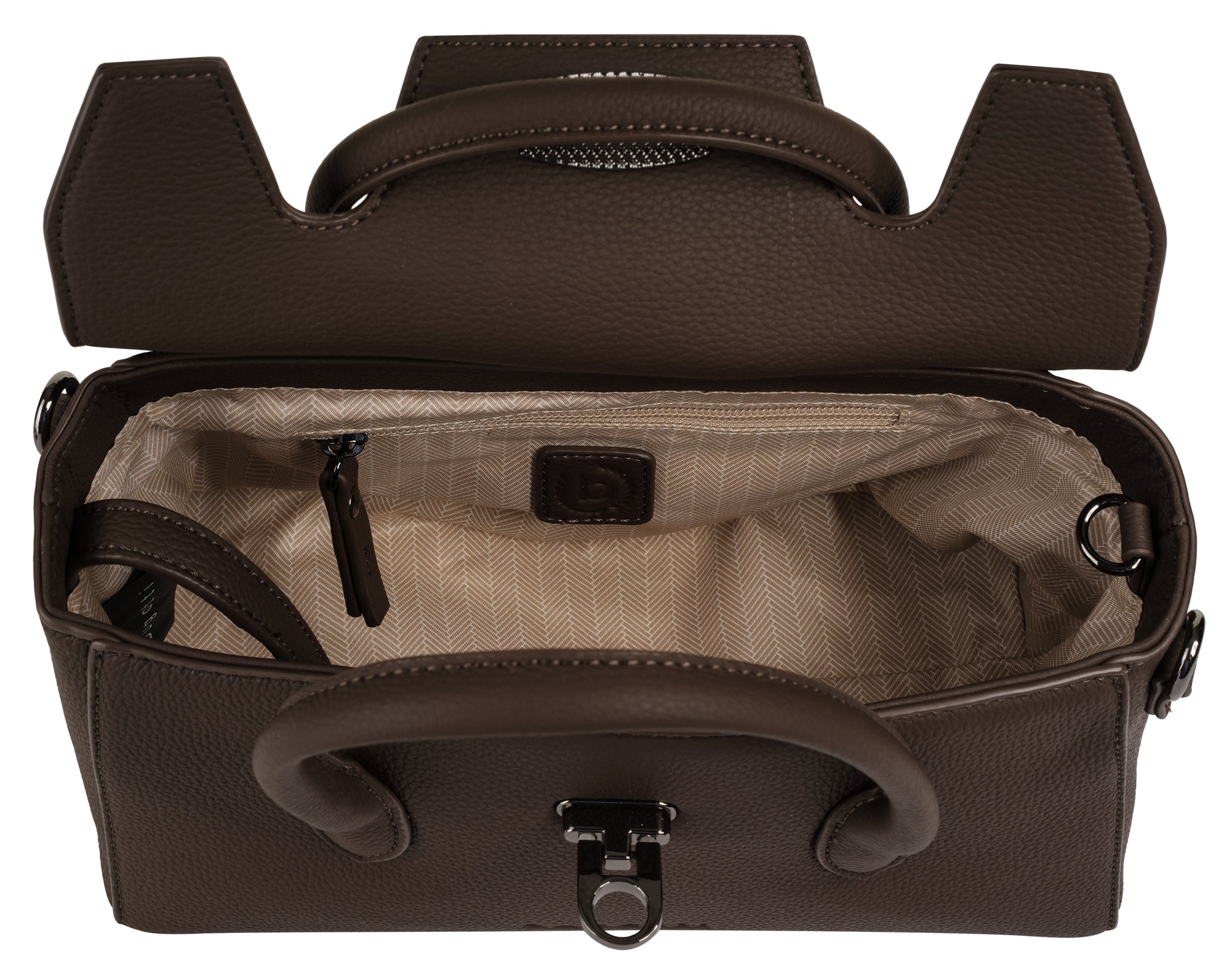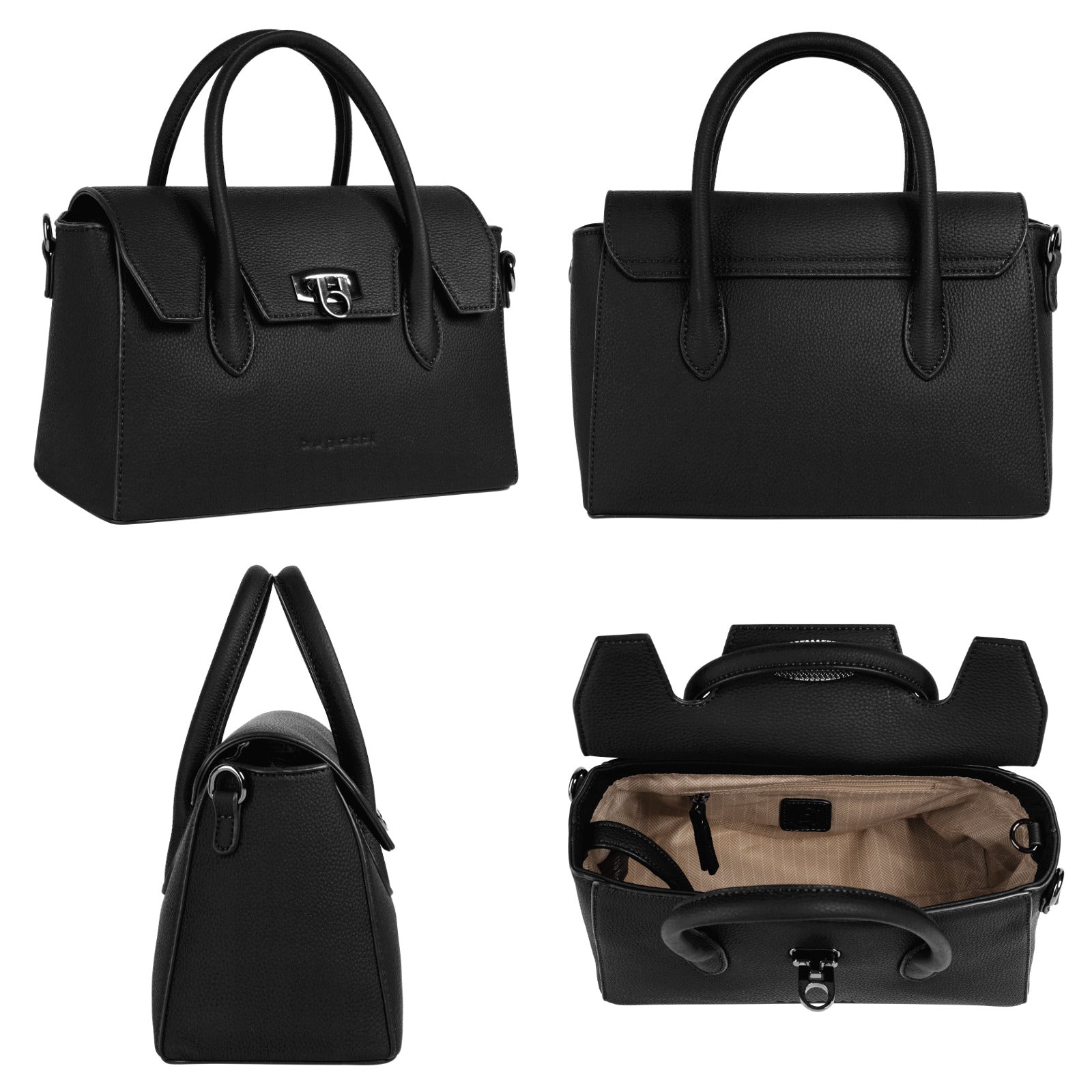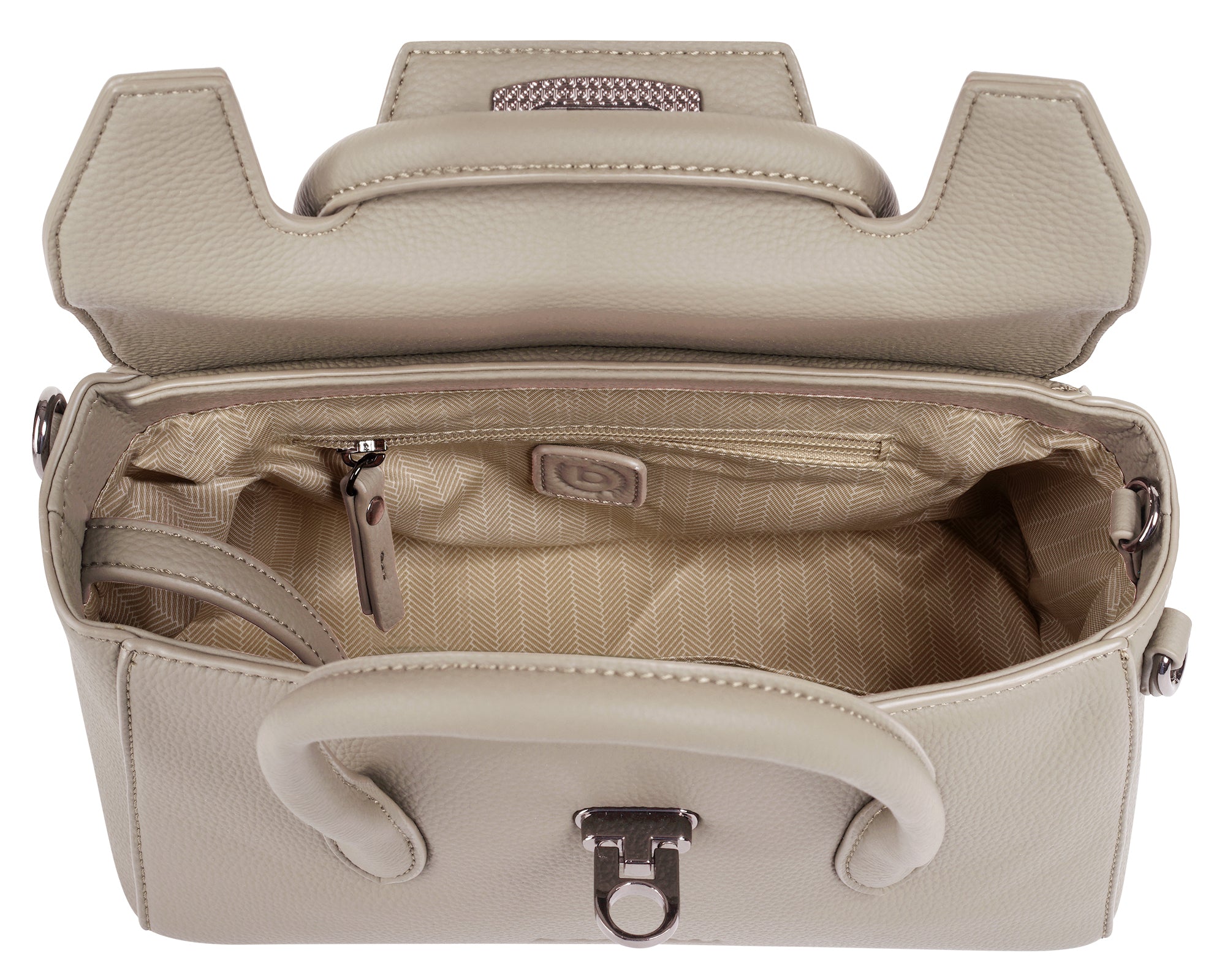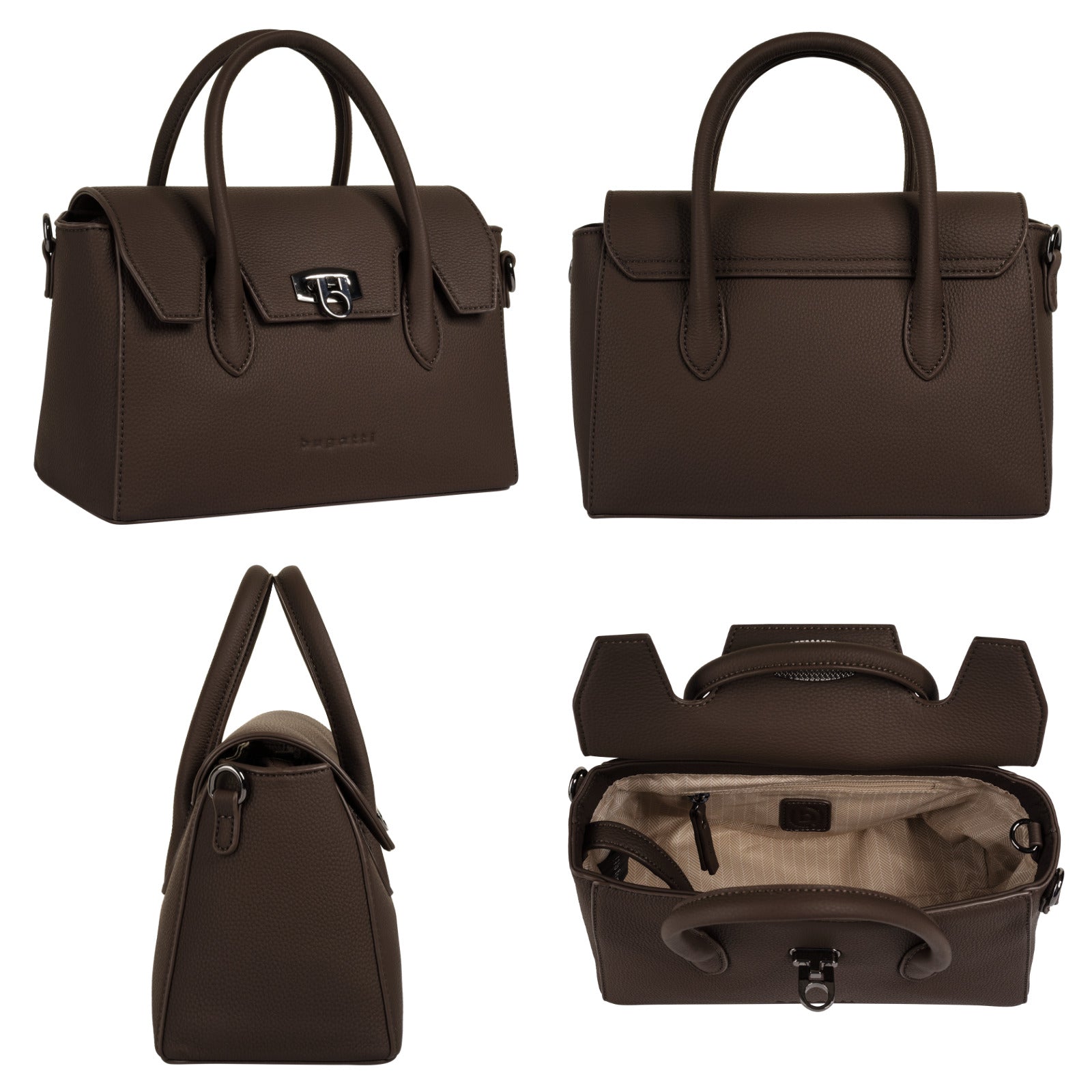 Setzen Sie Ihren Outfits mit der Handtasche von bugatti das Sahnehäubchen auf! Ob zu festlichen Anlässen, Abendveranstaltungen oder einfach in der Freizeit: Dank des Zusammenspiels aus standfester Form, minimalistischem Design und prägnanten Gunmetal-Elementen lässt sie sich kinderleicht kombinieren. Das Hauptfach im handlichen Format trägt Smartphone, Schlüssel, Portemonnaie und sogar eine kleine Flasche. Verschiedene Einsteckmöglichkeiten bewahren Ihre Essentials griffbereit auf. Der verstärkte Boden, abnehmbarer Schultergurt und die festen Henkel erhöhen den Tragekomfort unterwegs.