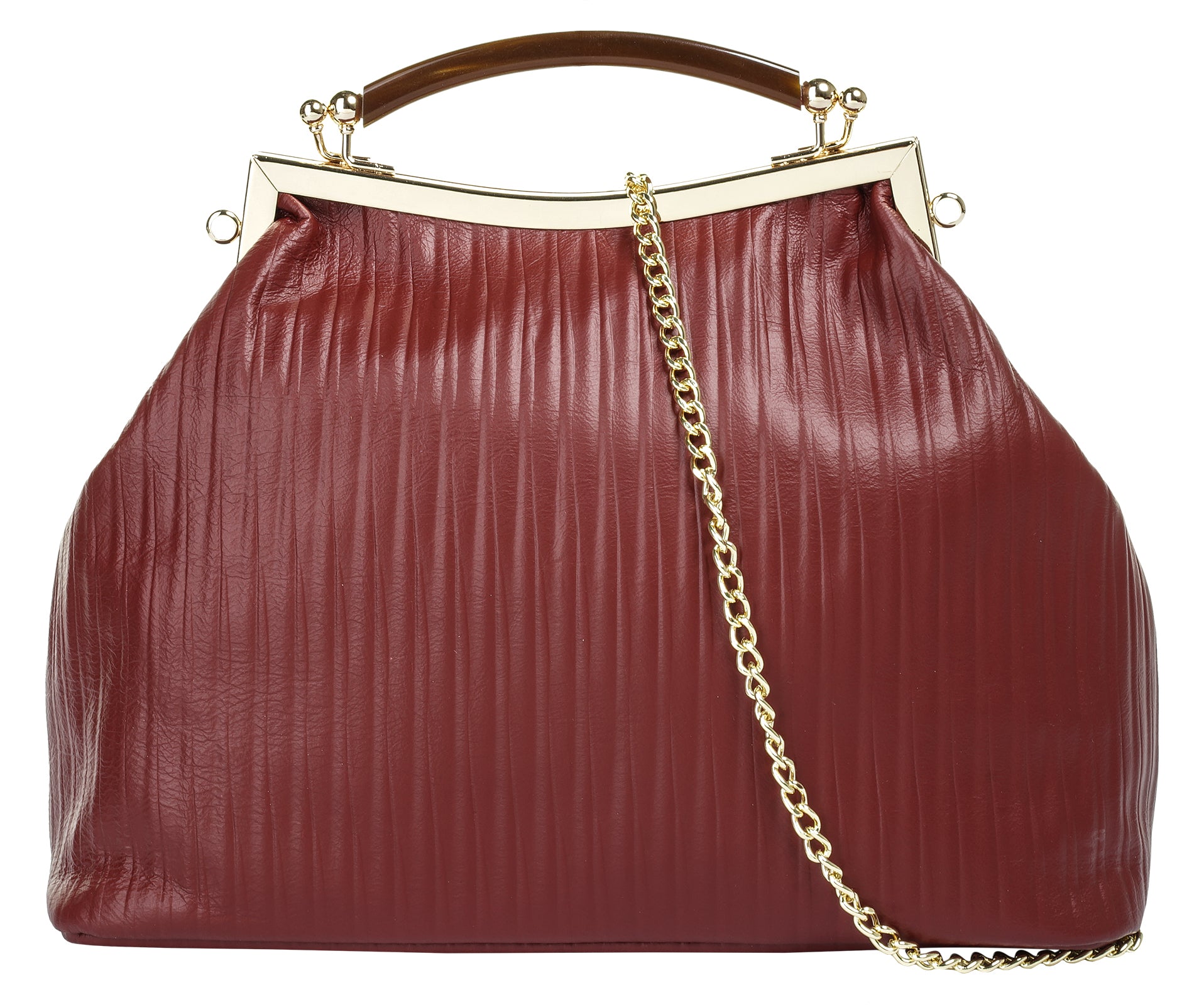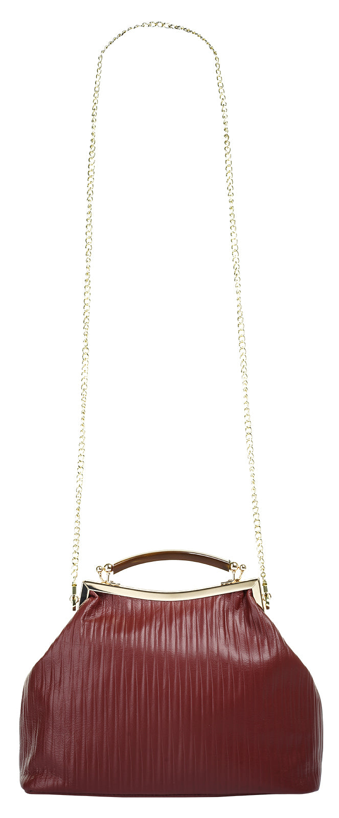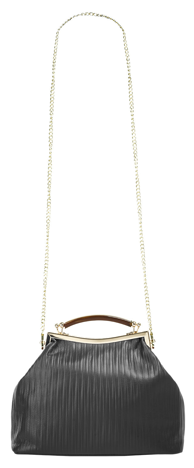 Mit italienischem Charme präsentiert Cluty eine Damen Leder Handtasche im edlen Look. Im großzügigen Hauptfach finden Portemonnaie, Smartphone und Lippenstift eine geschützte Verwahrung. Für Übersicht sorgt der weit zu öffnende Verschluss. Das in Biesen-Falten gelegte Leder & der Bügelverschluss bringen Eleganz in jedes Ihrer Outfits. Je nach Anlass können Sie Ihre Handtasche klassisch am festen Henkel oder als Umhängetasche an der abnehmbaren Schulterkette tragen. Bodennägel schützen Ihre Handtasche vor Abnützung.