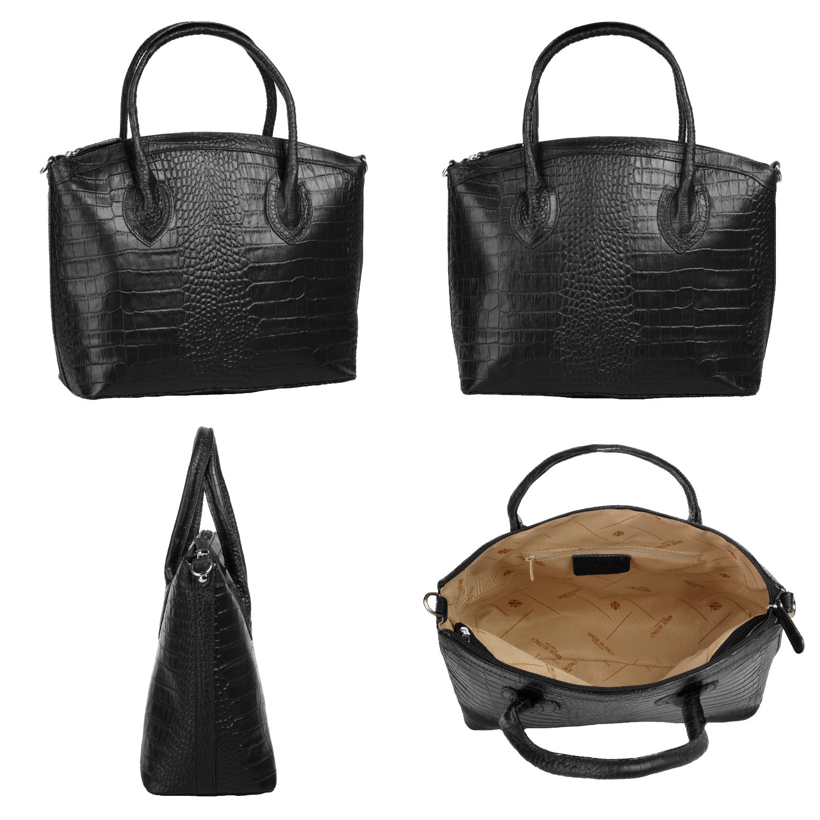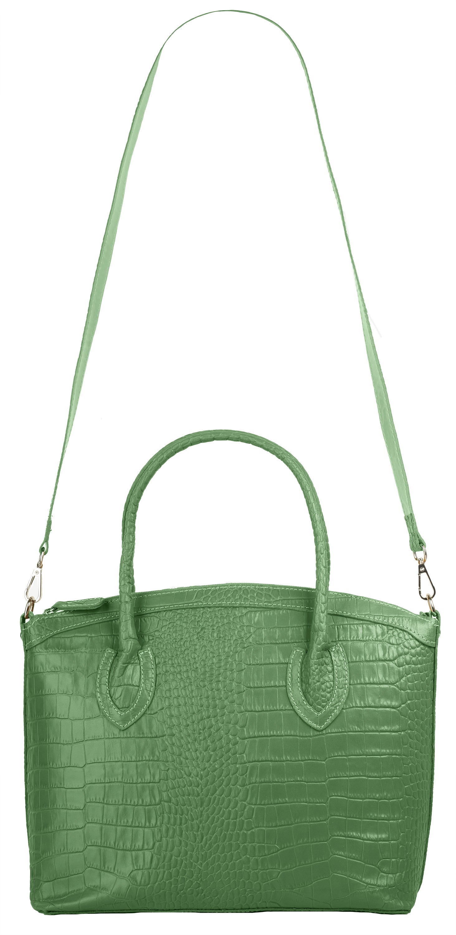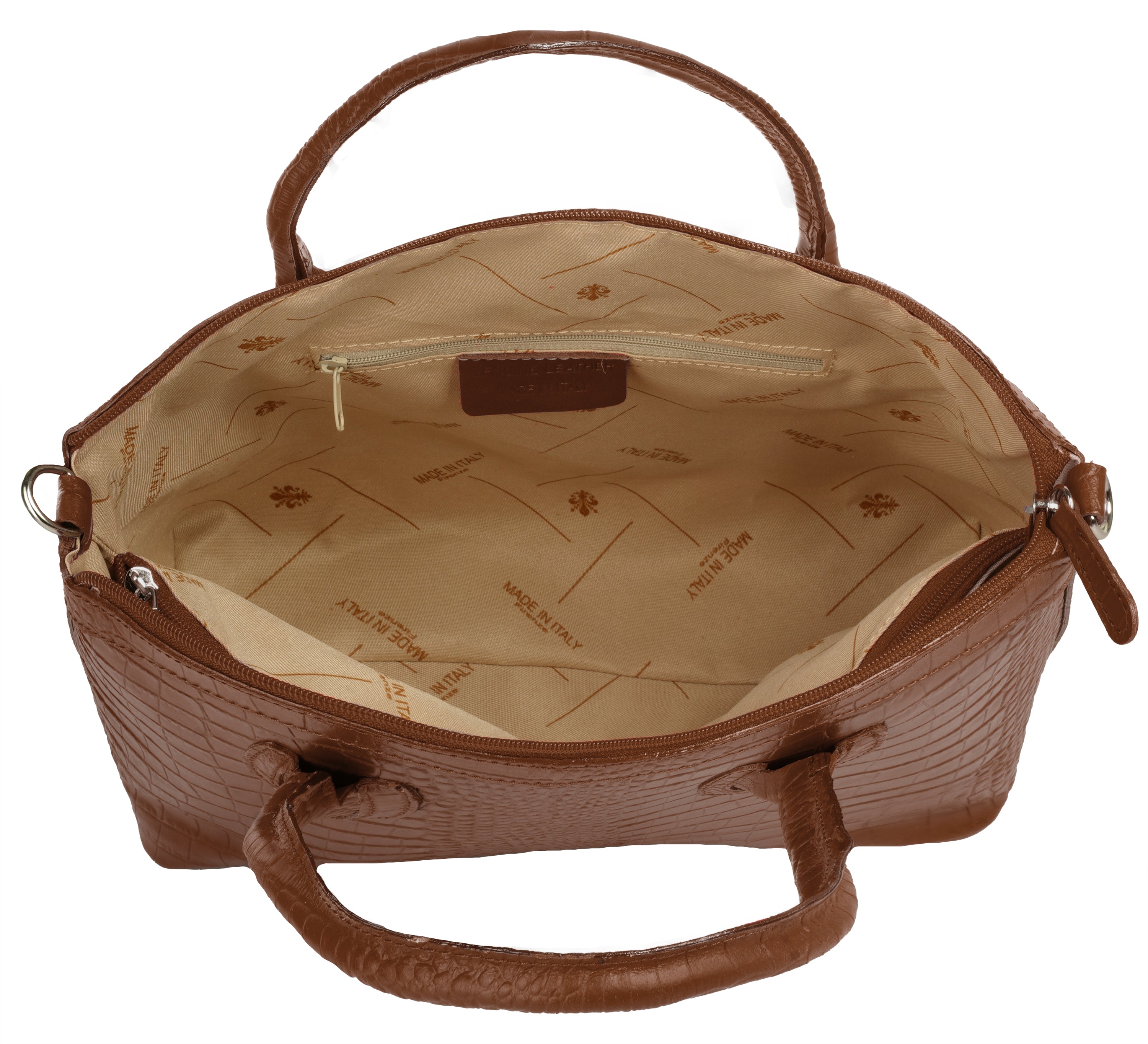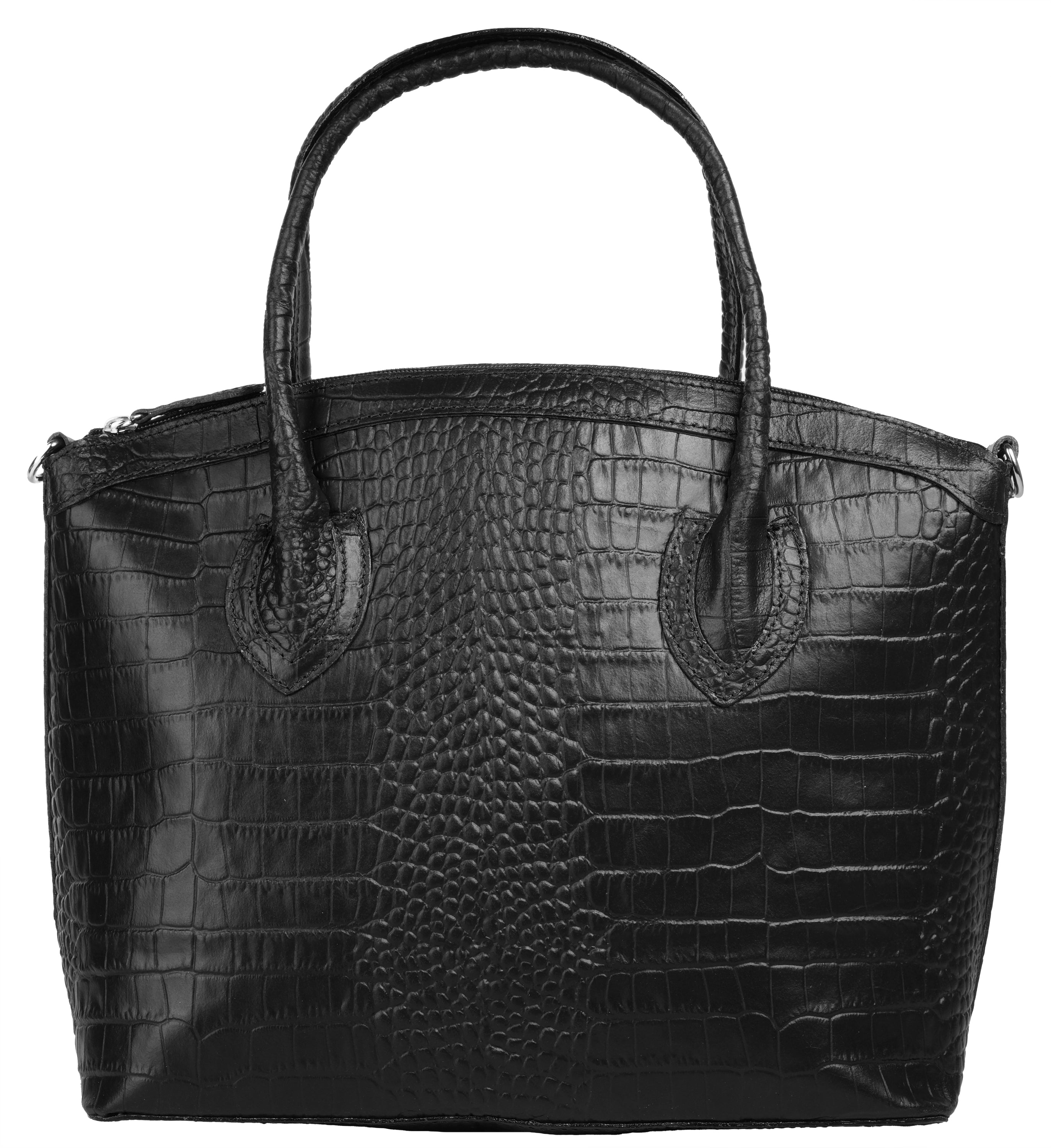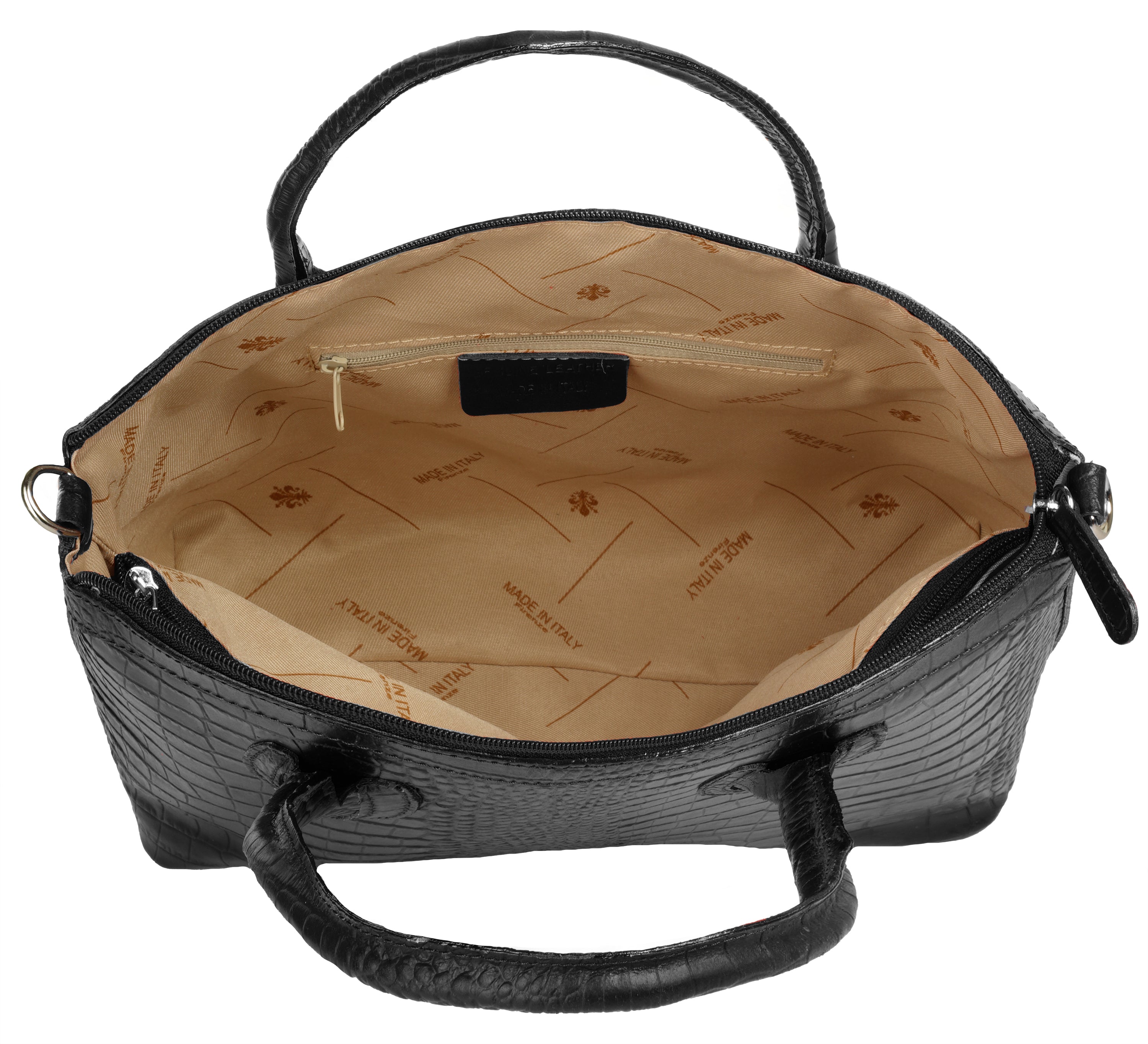 Aus bella Italia präsentiert Cluty eine Damen Handtasche in trendiger Kroko-Optik. Das A4-geeignete Hauptfach ist mittels einer Innentasche 2-geteilt. Das ermöglicht Ihnen mehr Spielraum, um Block, Wasserflasche & Kalender übersichtlich zu verwahren. Nutzen Sie die verschließbare Innentasche für einen schnellen Zugriff auf wichtige Dokumente oder Ihren Schlüsselbund. Besonders schön: das Innenfutter mit Florentiner Lilie. Bodennägel schützen Ihre Kroko-Handtasche vor Abnutzung & Schmutz. Das macht sie zu einer Tasche für den täglichen Gebrauch - ob im Büro, für Besorgungen oder für die Freizeit. Ein abnehmbarer Schultergurt ermöglicht Ihnen ein bequemes Tragen als Umhängetasche.