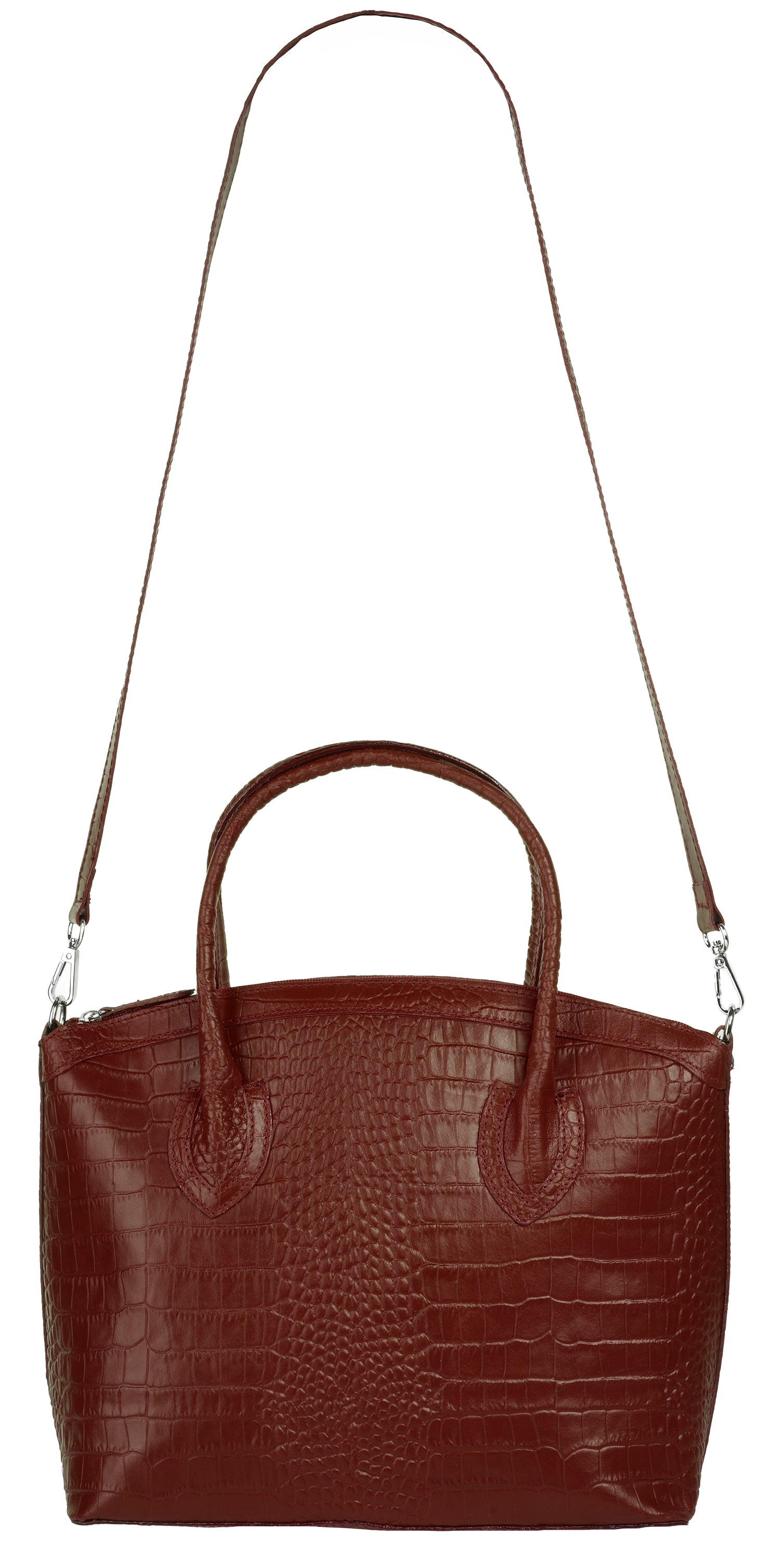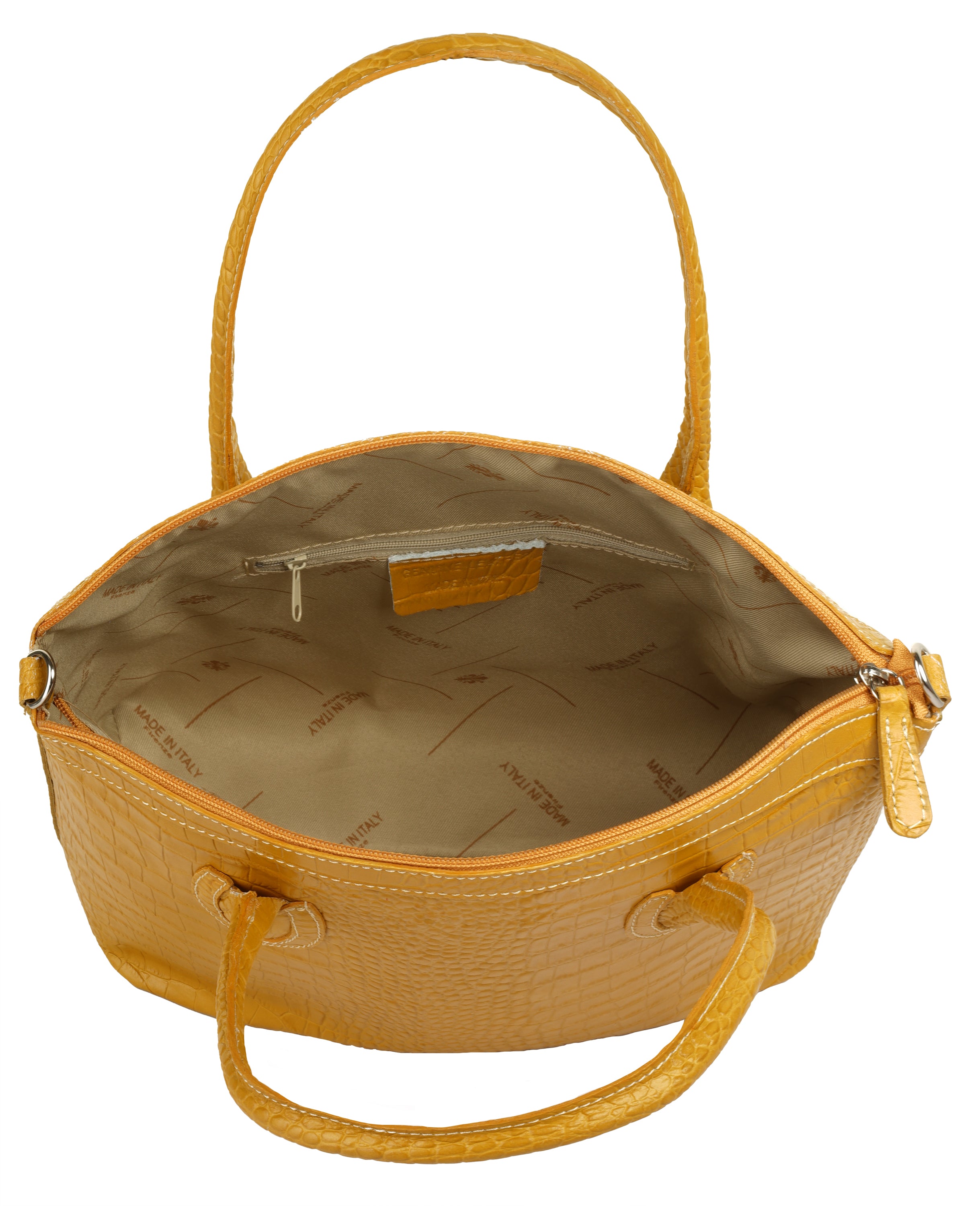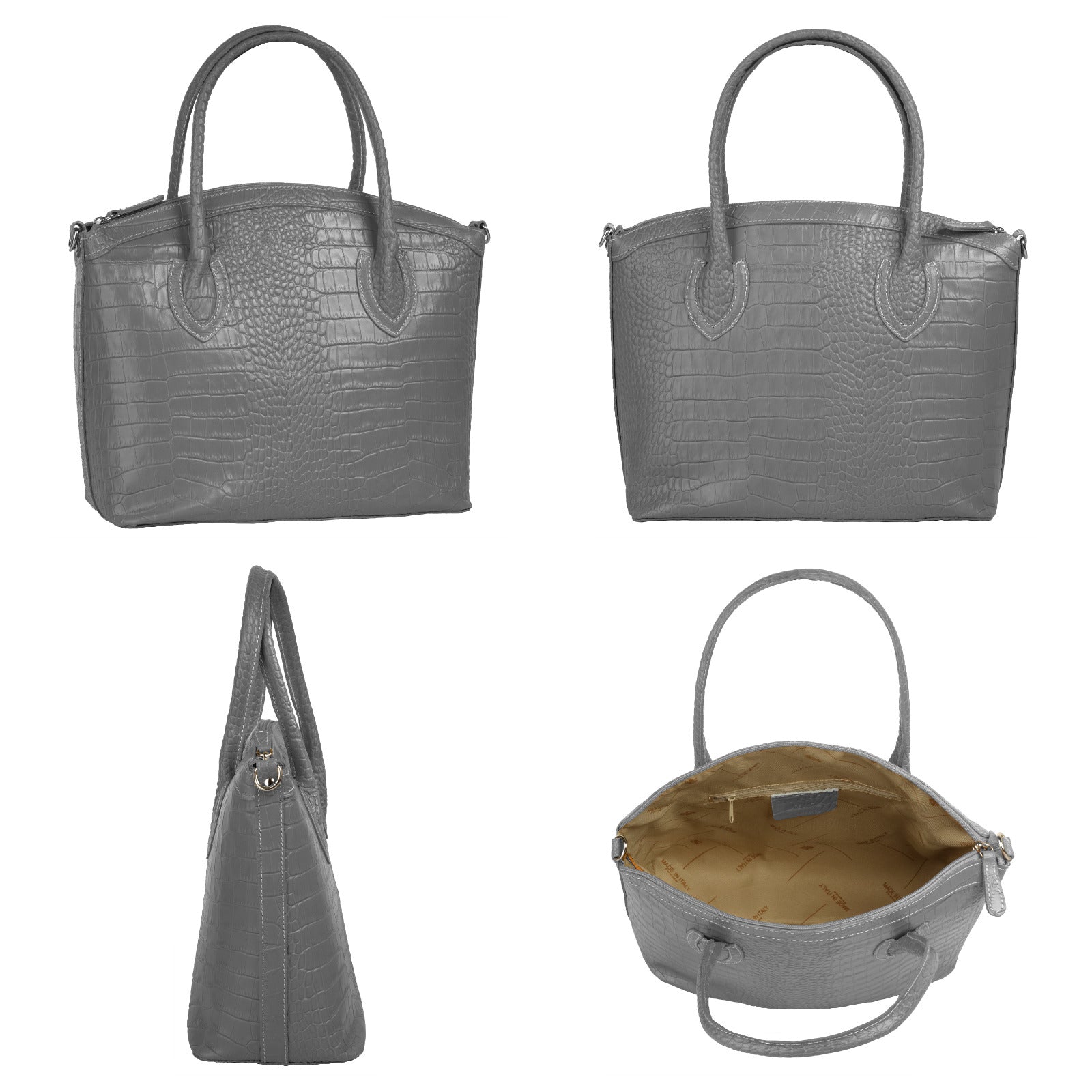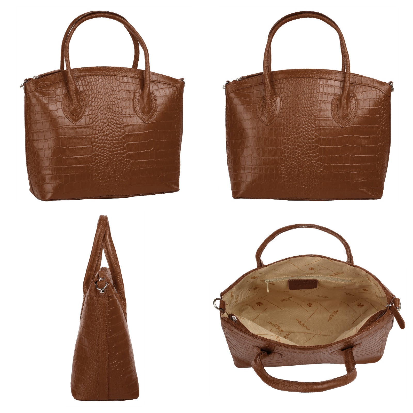 Aus bella Italia präsentiert Cluty eine Damen Handtasche in trendiger Kroko-Optik. Das A4-geeignete Hauptfach ist mittels einer Innentasche 2-geteilt. Das ermöglicht Ihnen mehr Spielraum, um Block, Wasserflasche & Kalender übersichtlich zu verwahren. Nutzen Sie die verschließbare Innentasche für einen schnellen Zugriff auf wichtige Dokumente oder Ihren Schlüsselbund. Besonders schön: das Innenfutter mit Florentiner Lilie. Bodennägel schützen Ihre Kroko-Handtasche vor Abnutzung & Schmutz. Das macht sie zu einer Tasche für den täglichen Gebrauch - ob im Büro, für Besorgungen oder für die Freizeit. Ein abnehmbarer Schultergurt ermöglicht Ihnen ein bequemes Tragen als Umhängetasche.