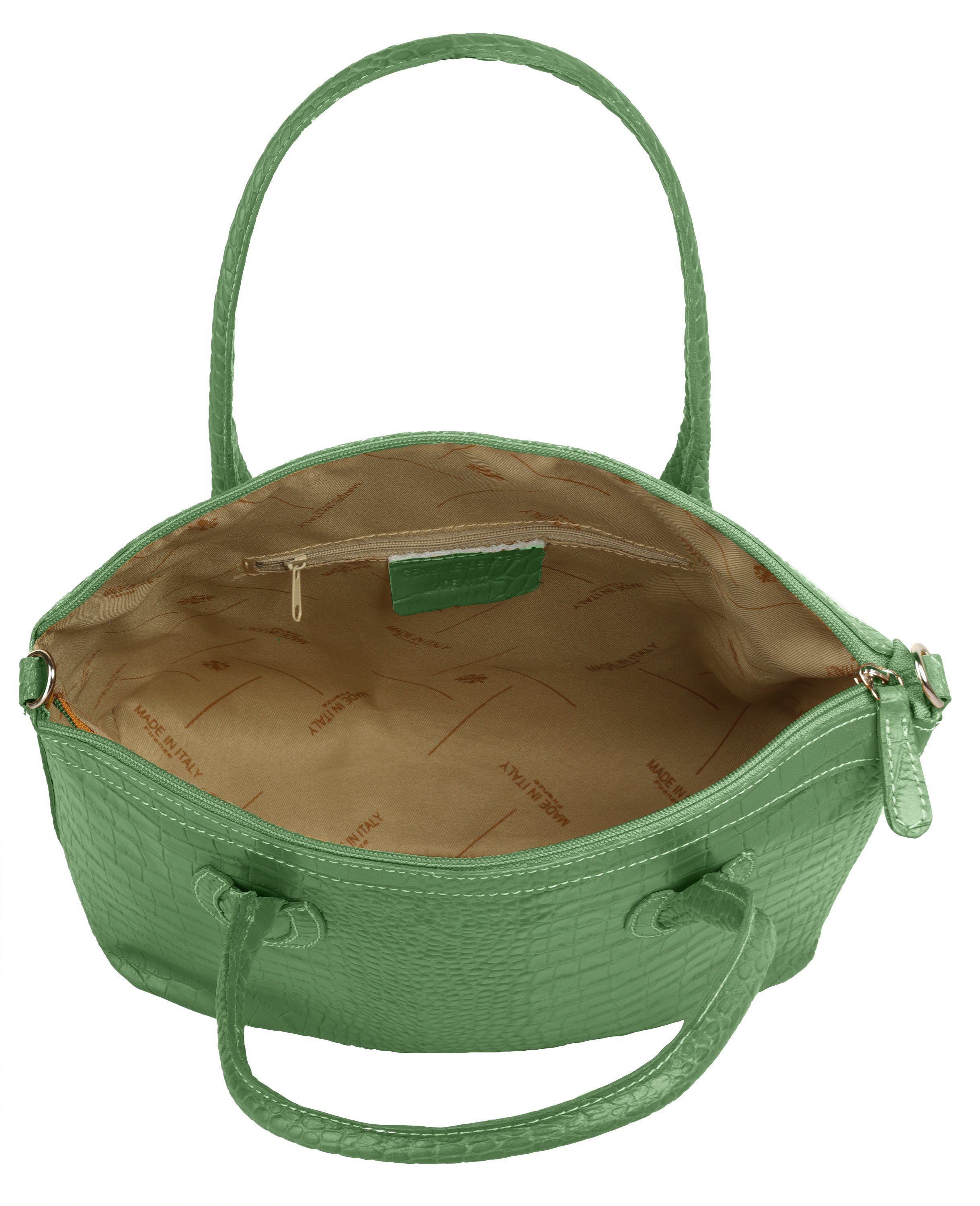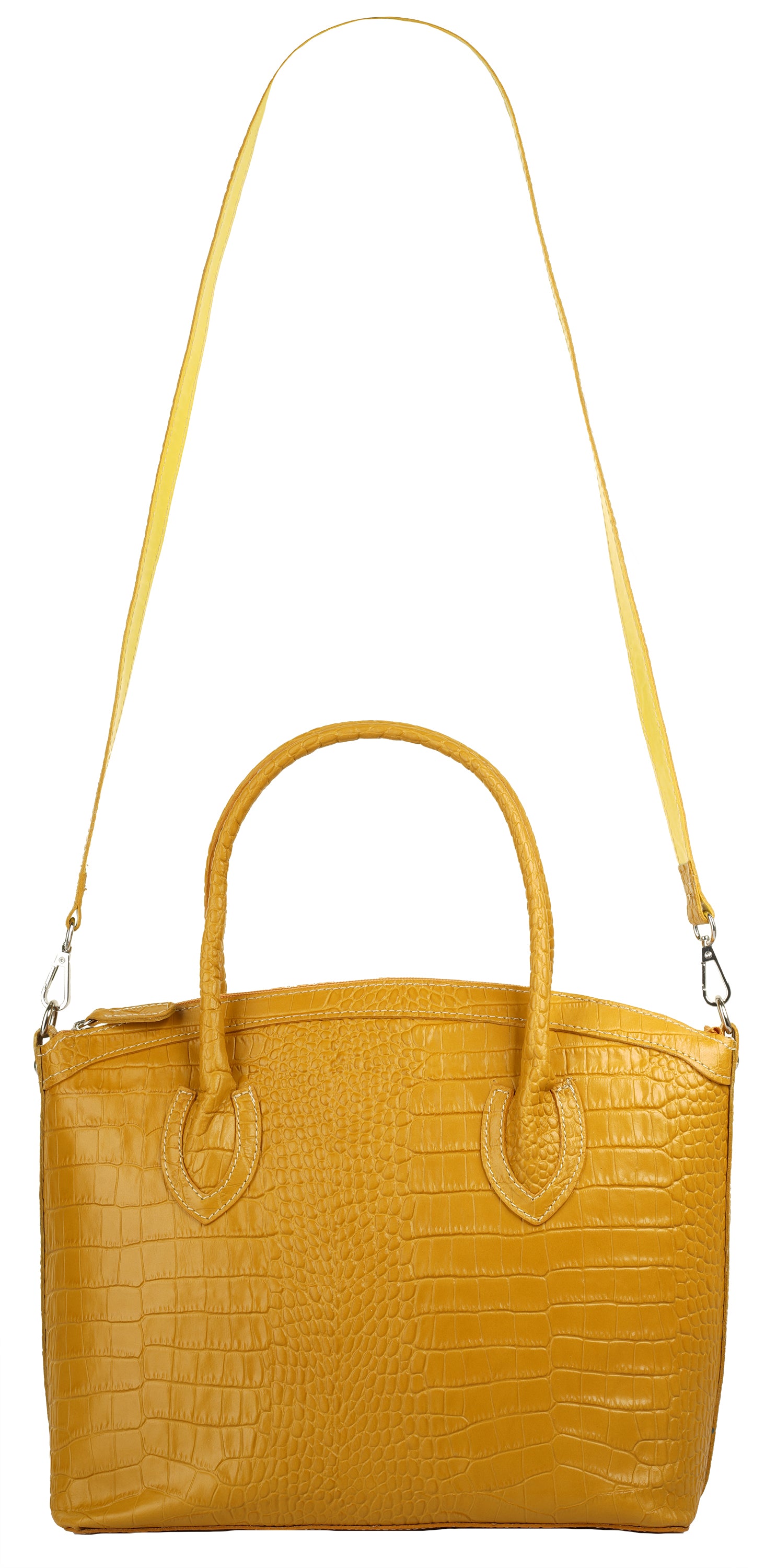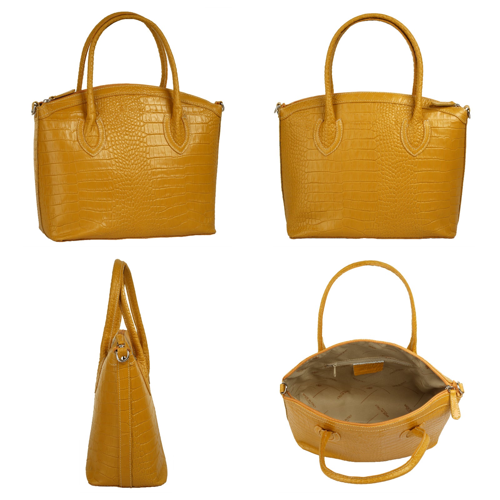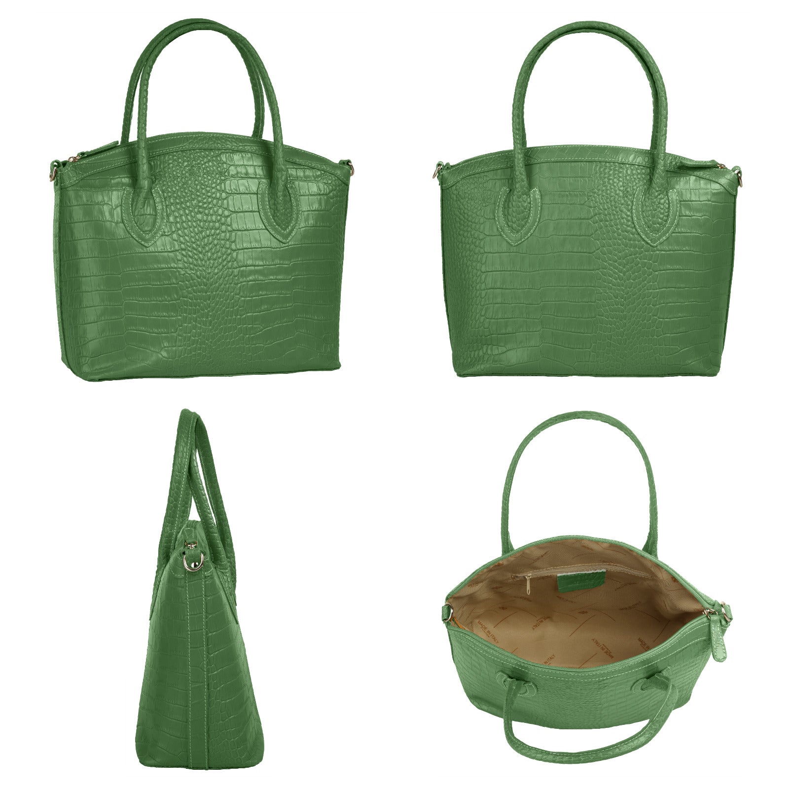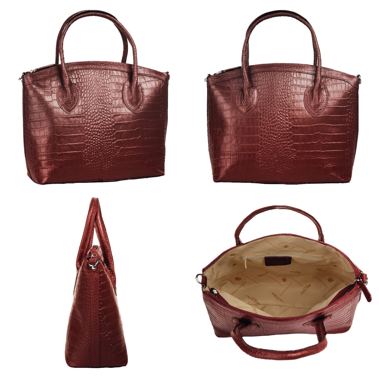 Aus bella Italia präsentiert Cluty eine Damen Handtasche in trendiger Kroko-Optik. Das A4-geeignete Hauptfach ist mittels einer Innentasche 2-geteilt. Das ermöglicht Ihnen mehr Spielraum, um Block, Wasserflasche & Kalender übersichtlich zu verwahren. Nutzen Sie die verschließbare Innentasche für einen schnellen Zugriff auf wichtige Dokumente oder Ihren Schlüsselbund. Besonders schön: das Innenfutter mit Florentiner Lilie. Bodennägel schützen Ihre Kroko-Handtasche vor Abnutzung & Schmutz. Das macht sie zu einer Tasche für den täglichen Gebrauch - ob im Büro, für Besorgungen oder für die Freizeit. Ein abnehmbarer Schultergurt ermöglicht Ihnen ein bequemes Tragen als Umhängetasche.