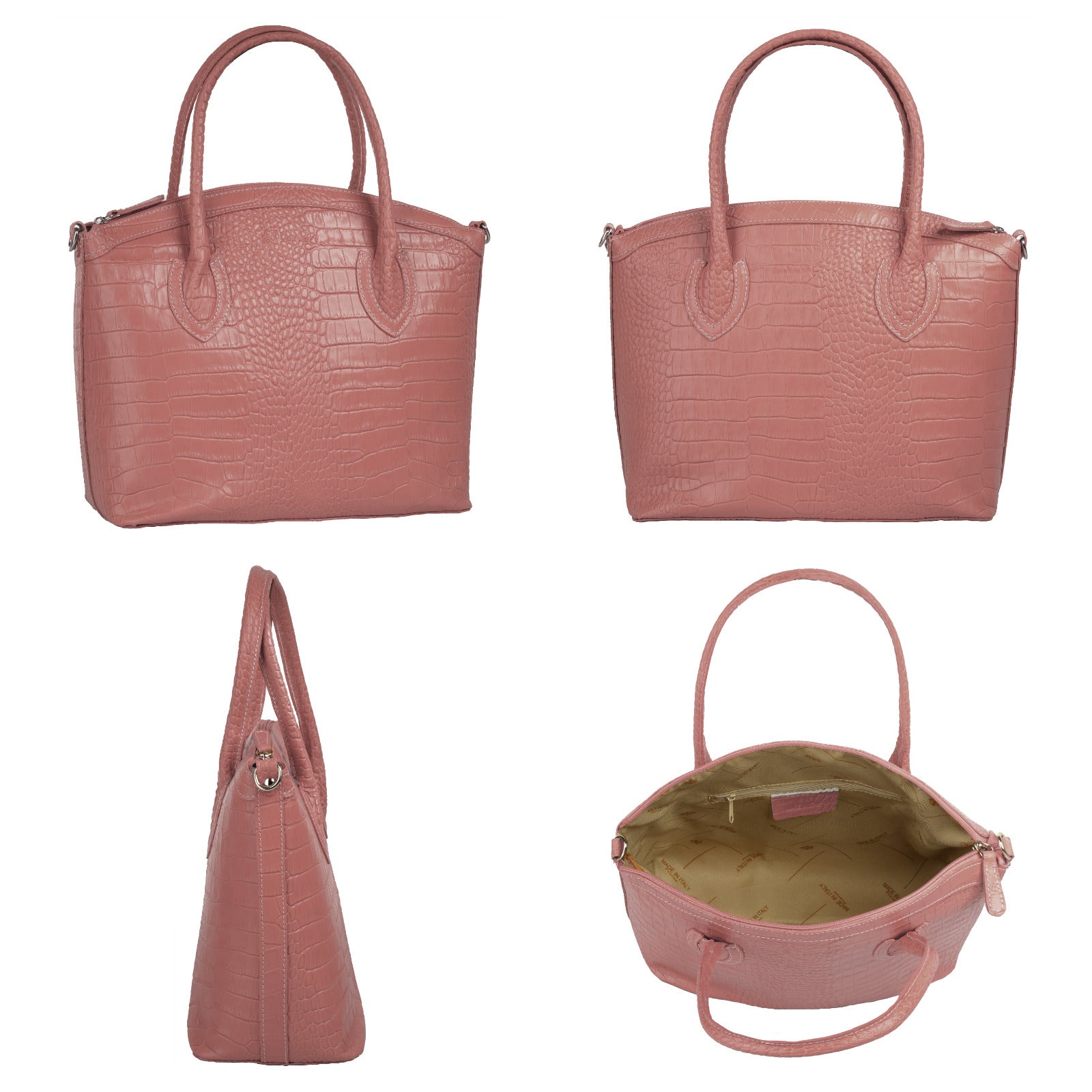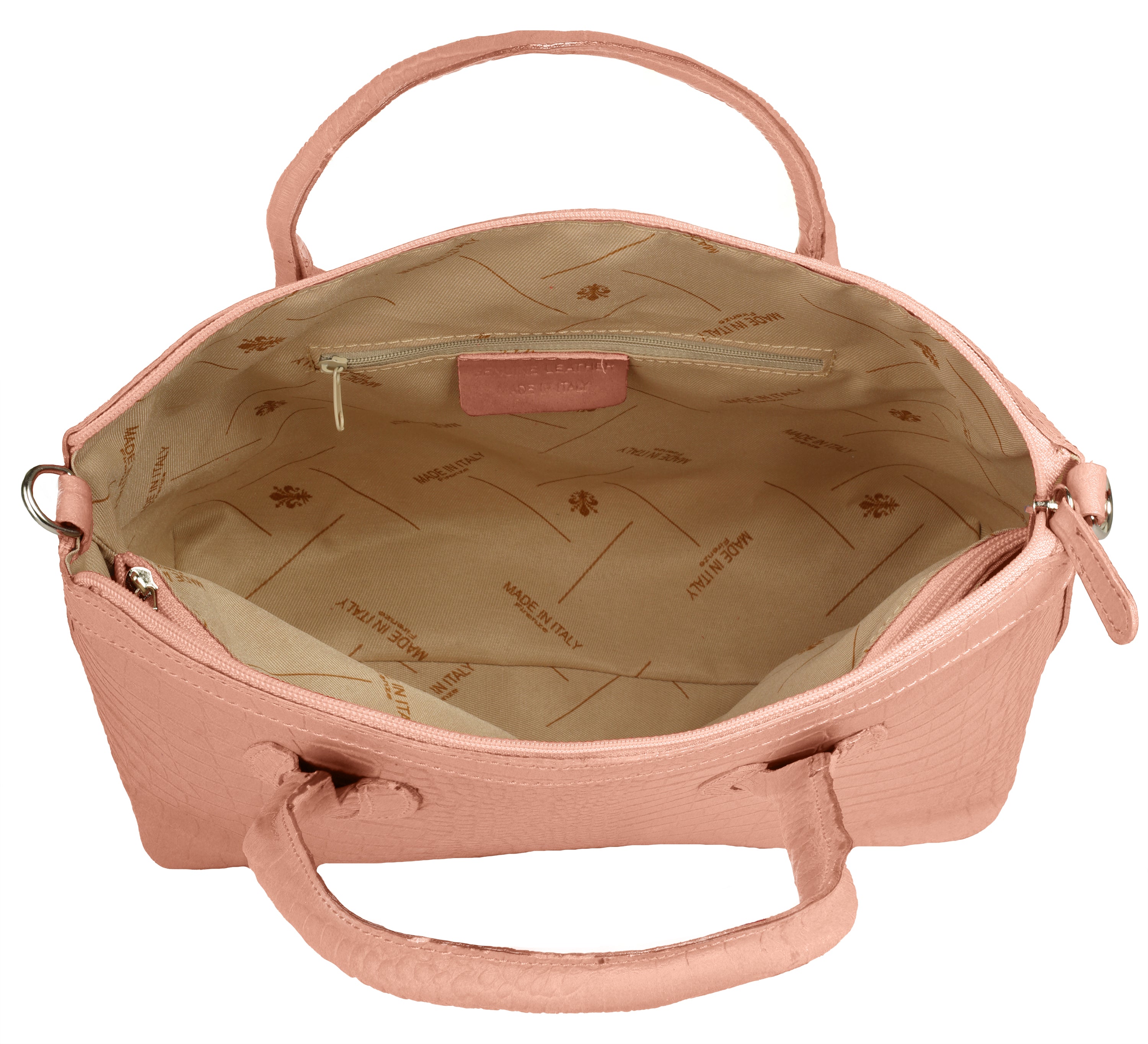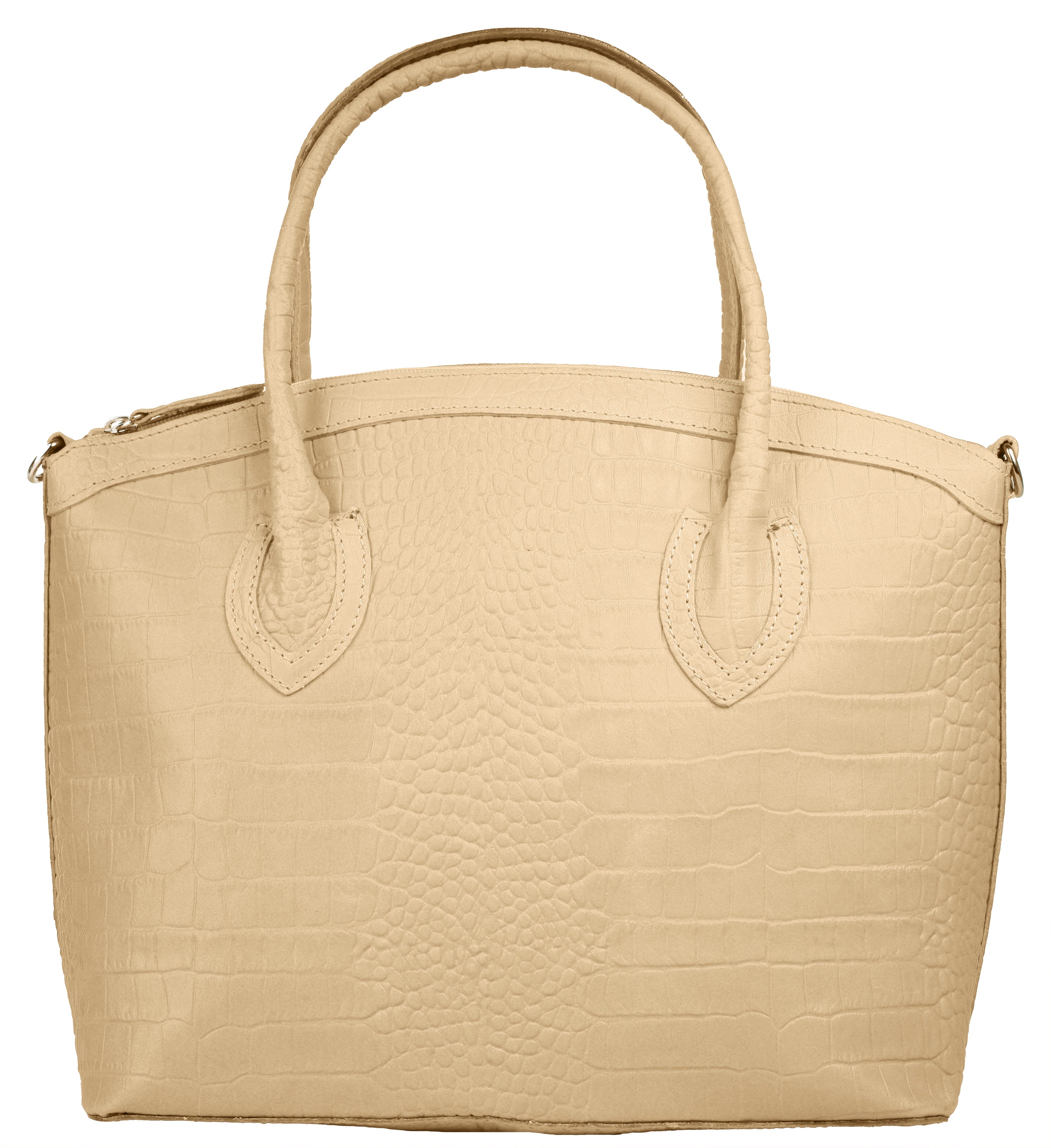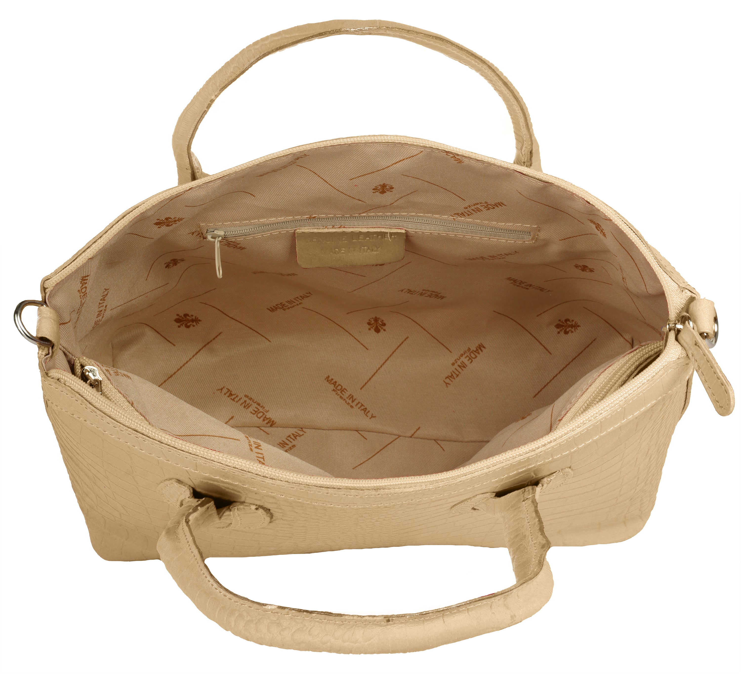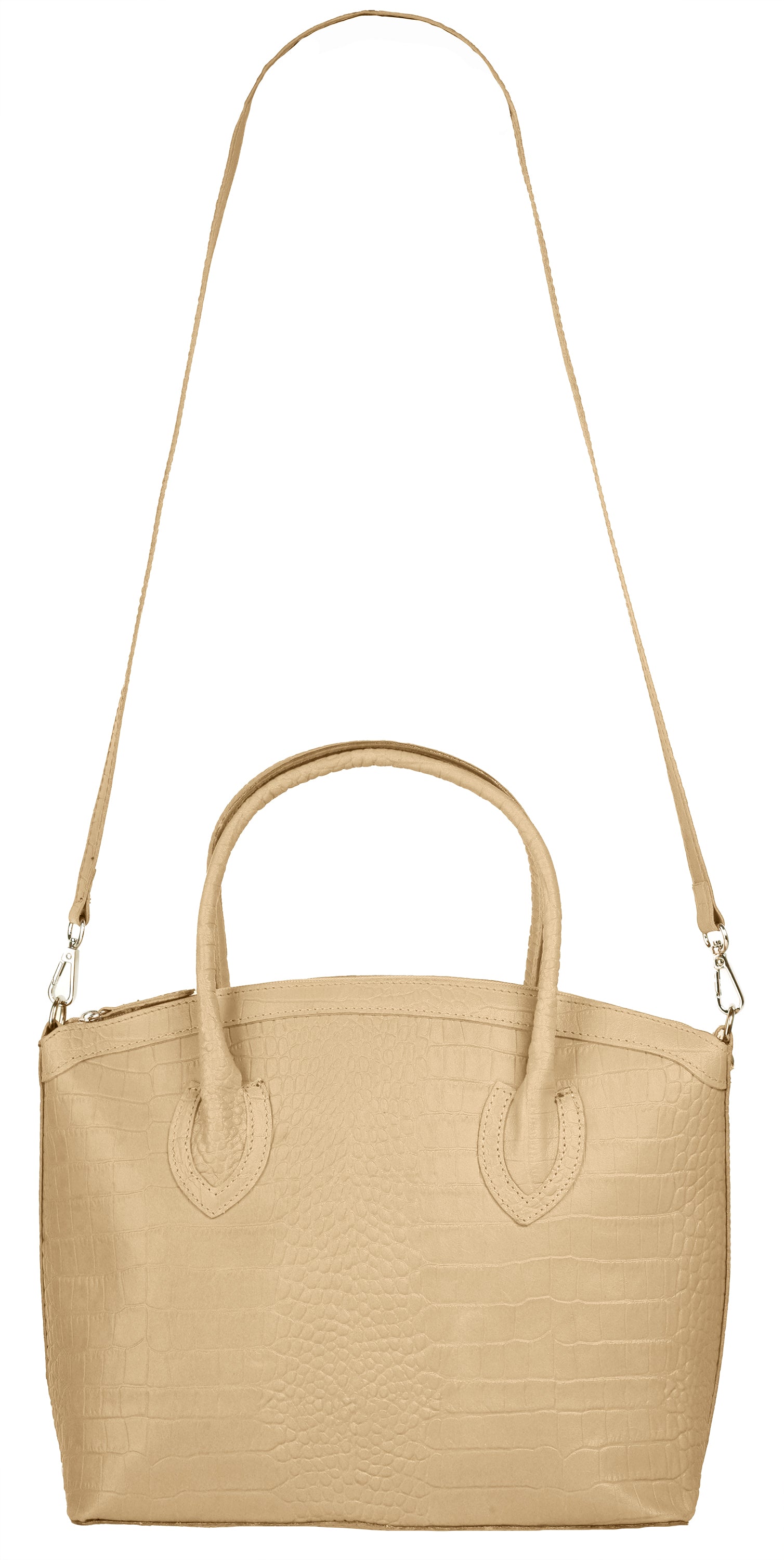 Aus bella Italia präsentiert Cluty eine Damen Handtasche in trendiger Kroko-Optik. Das A4-geeignete Hauptfach ist mittels einer Innentasche 2-geteilt. Das ermöglicht Ihnen mehr Spielraum, um Block, Wasserflasche & Kalender übersichtlich zu verwahren. Nutzen Sie die verschließbare Innentasche für einen schnellen Zugriff auf wichtige Dokumente oder Ihren Schlüsselbund. Besonders schön: das Innenfutter mit Florentiner Lilie. Bodennägel schützen Ihre Kroko-Handtasche vor Abnutzung & Schmutz. Das macht sie zu einer Tasche für den täglichen Gebrauch - ob im Büro, für Besorgungen oder für die Freizeit. Ein abnehmbarer Schultergurt ermöglicht Ihnen ein bequemes Tragen als Umhängetasche.