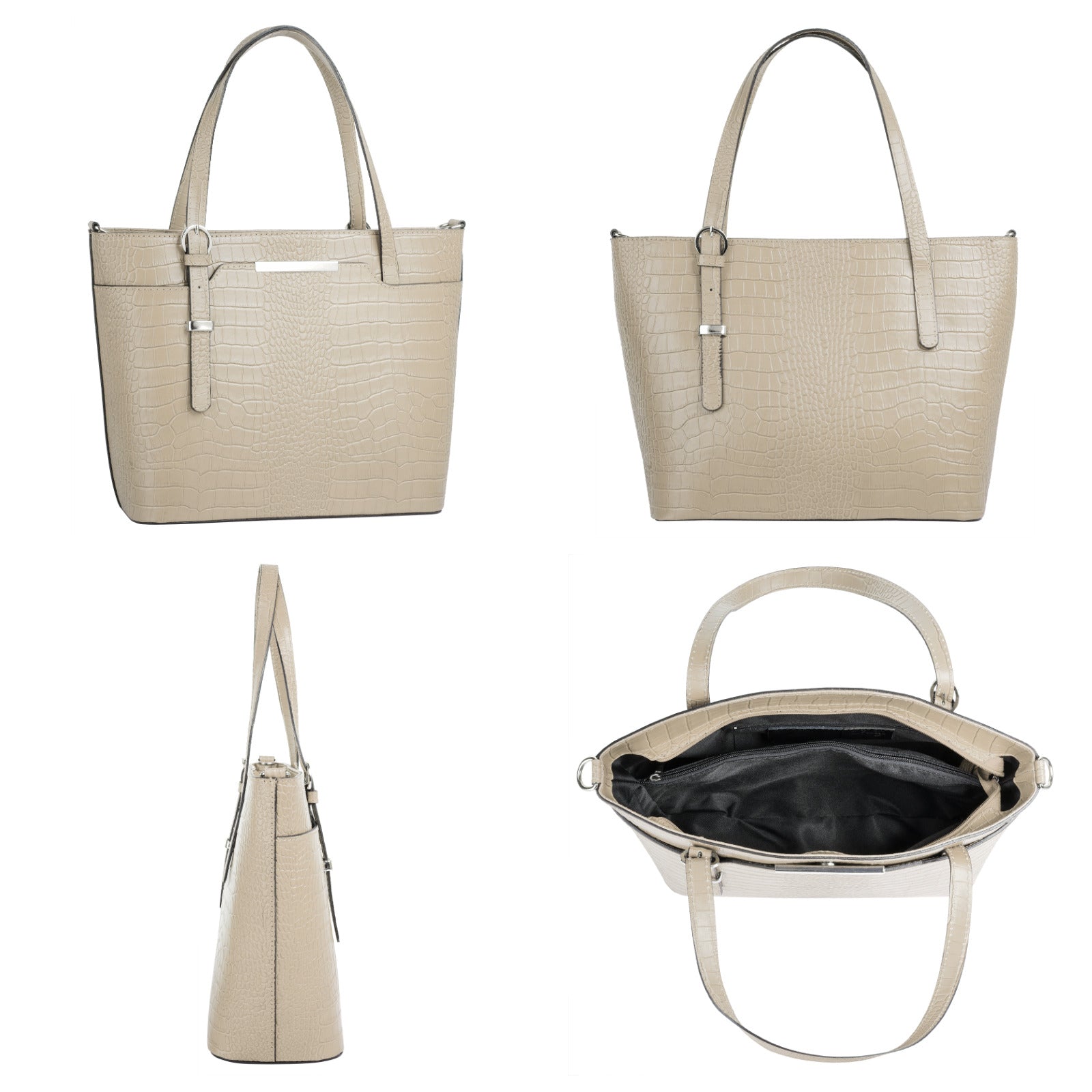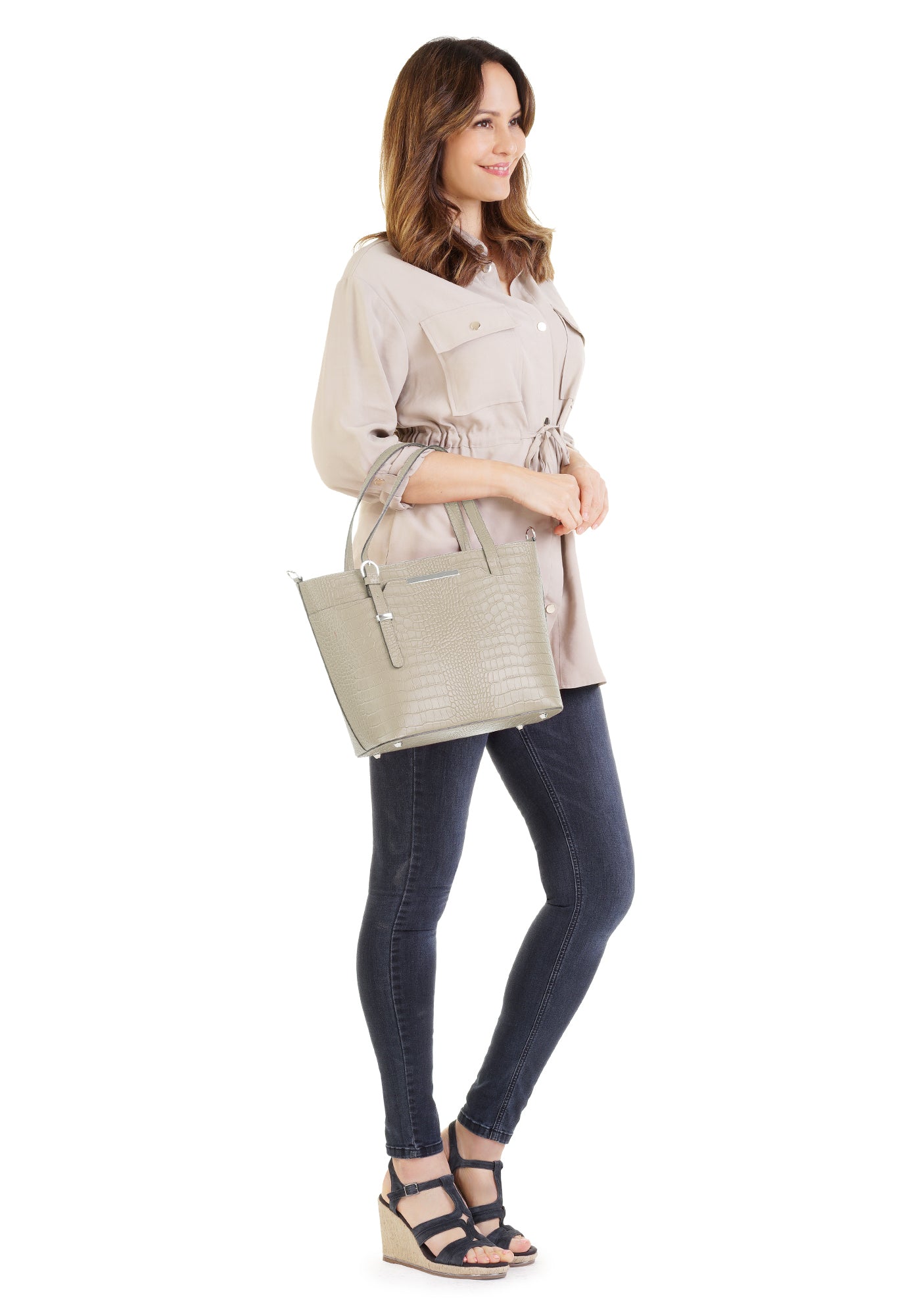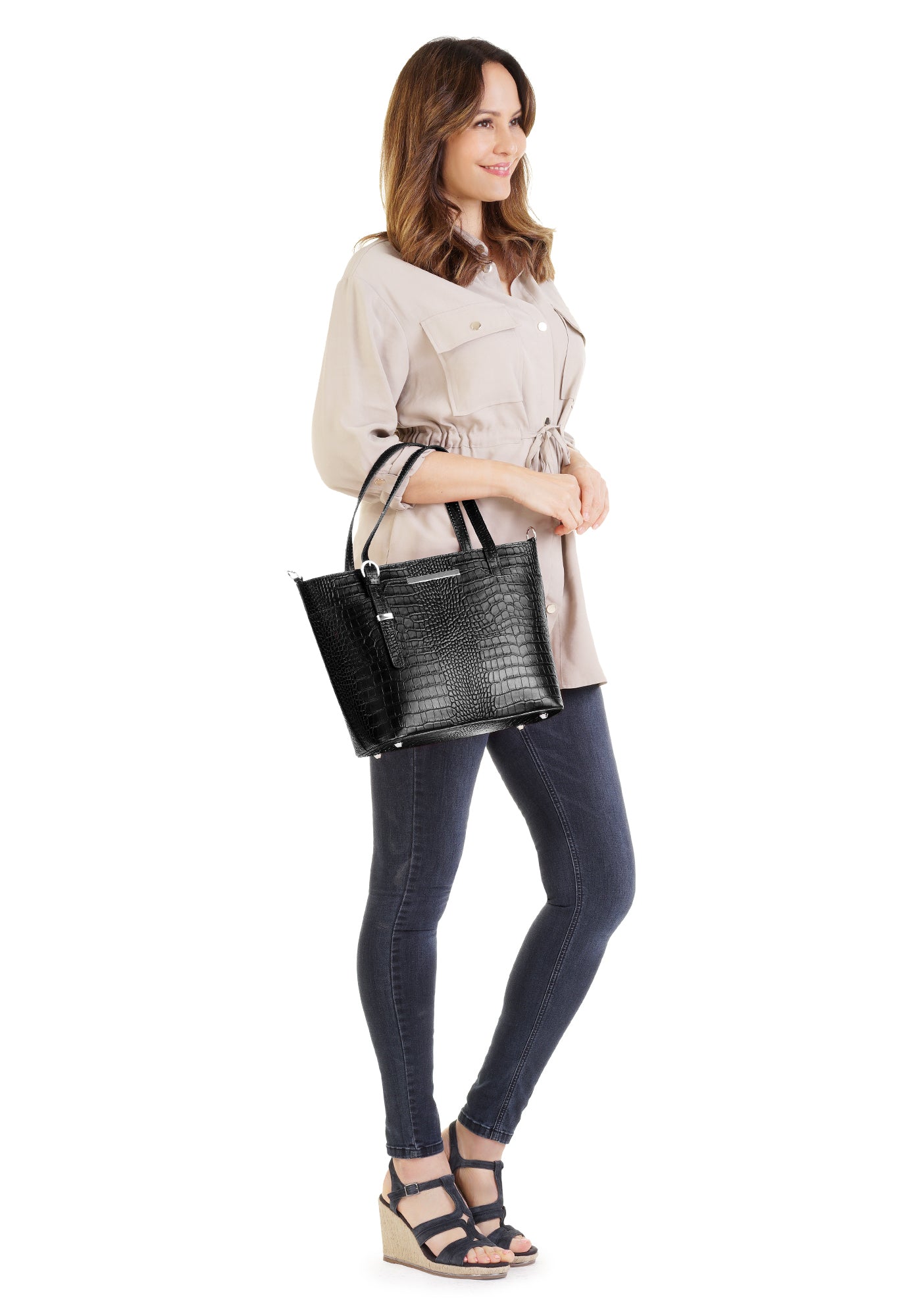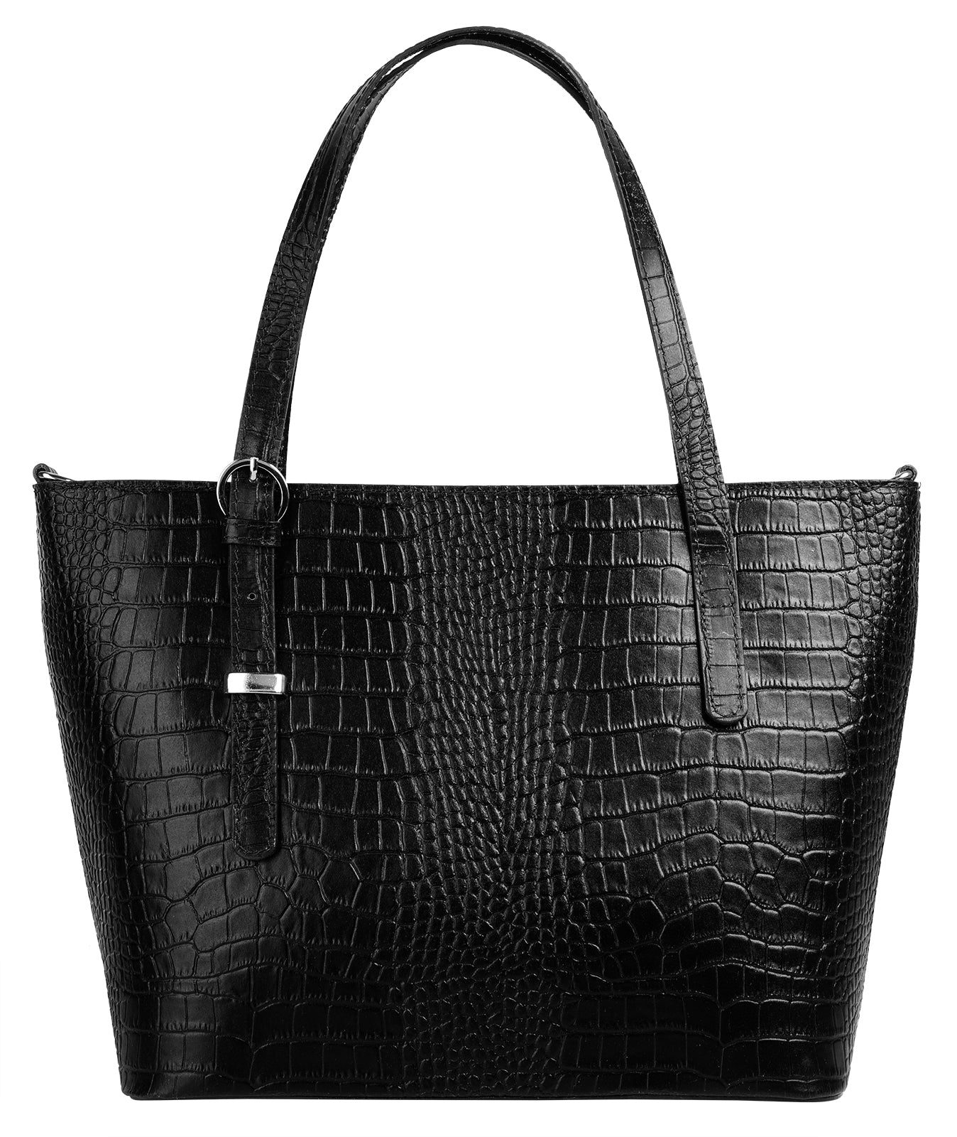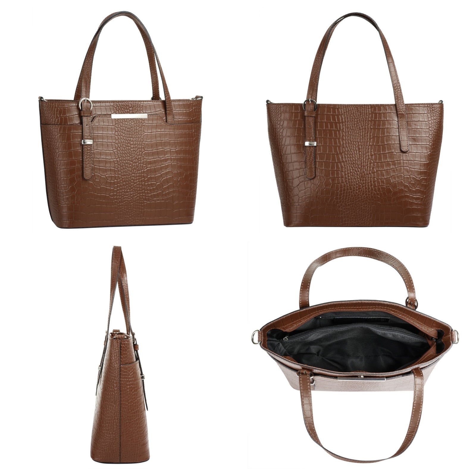 Cluty präsentiert eine modische Leder Handtasche zum Verlieben! Die elegante Kroko-Optik macht sie zu einem absoluten Hingucker. Das Hauptfach wird durch eine verschließbare Innentasche zweigeteilt und bietet Ihnen damit mehr Spielraum für die Organisation Ihrer persönlichen Gegenstände. Außerdem steht Ihnen ein Smartphonefach zur sicheren Aufbewahrung Ihres Gerätes zur Verfügung.