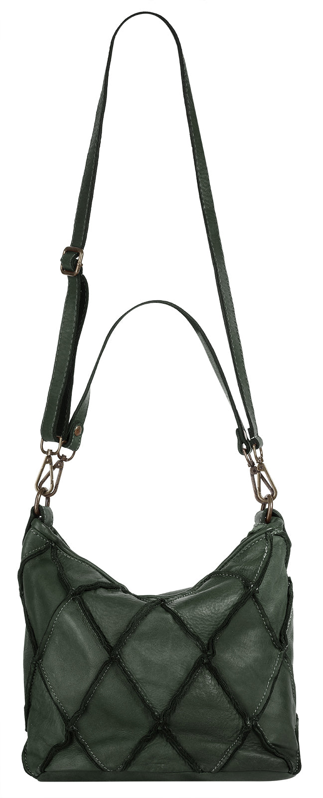 Für Individualisten ist die italienische Leder Handtasche von Samantha Look ein Must-have: ihr Patchwork-Rautenmuster ist wahrlich ein Hingucker. Das Hauptfach hält mehrere Einsteckmöglichkeiten bereit, so können Sie kleinere Gegenstände wie Kugelschreiber & Lippenstift stets griffbereit aufbewahren. Außerdem bietet das Hauptfach viel Platz für alles, was unterwegs nicht fehlen darf wie das Portemonnaie, Schlüssel & eine Wasserflasche.