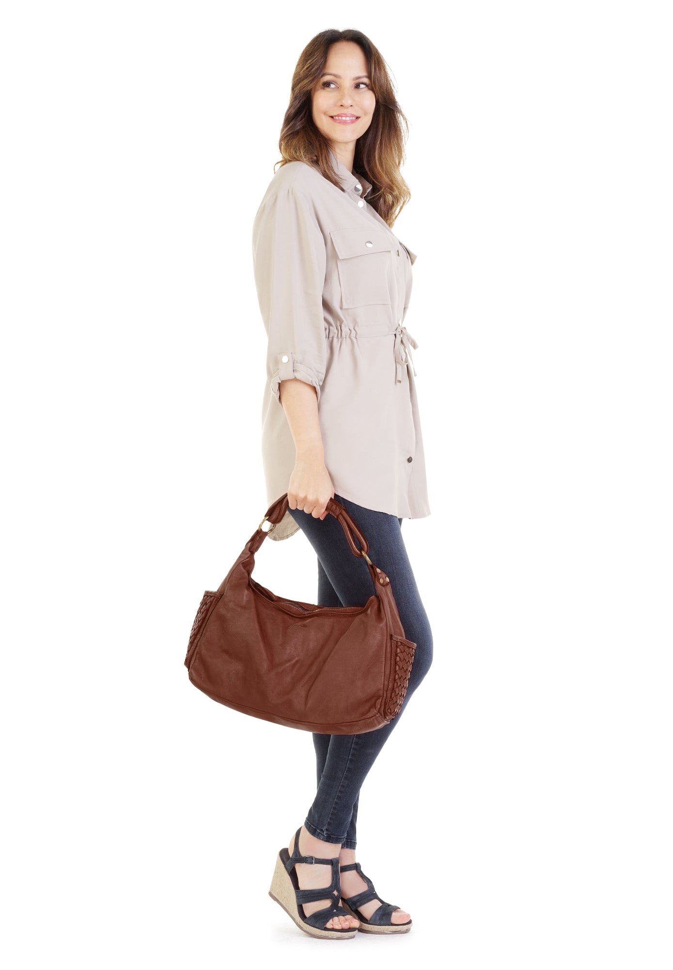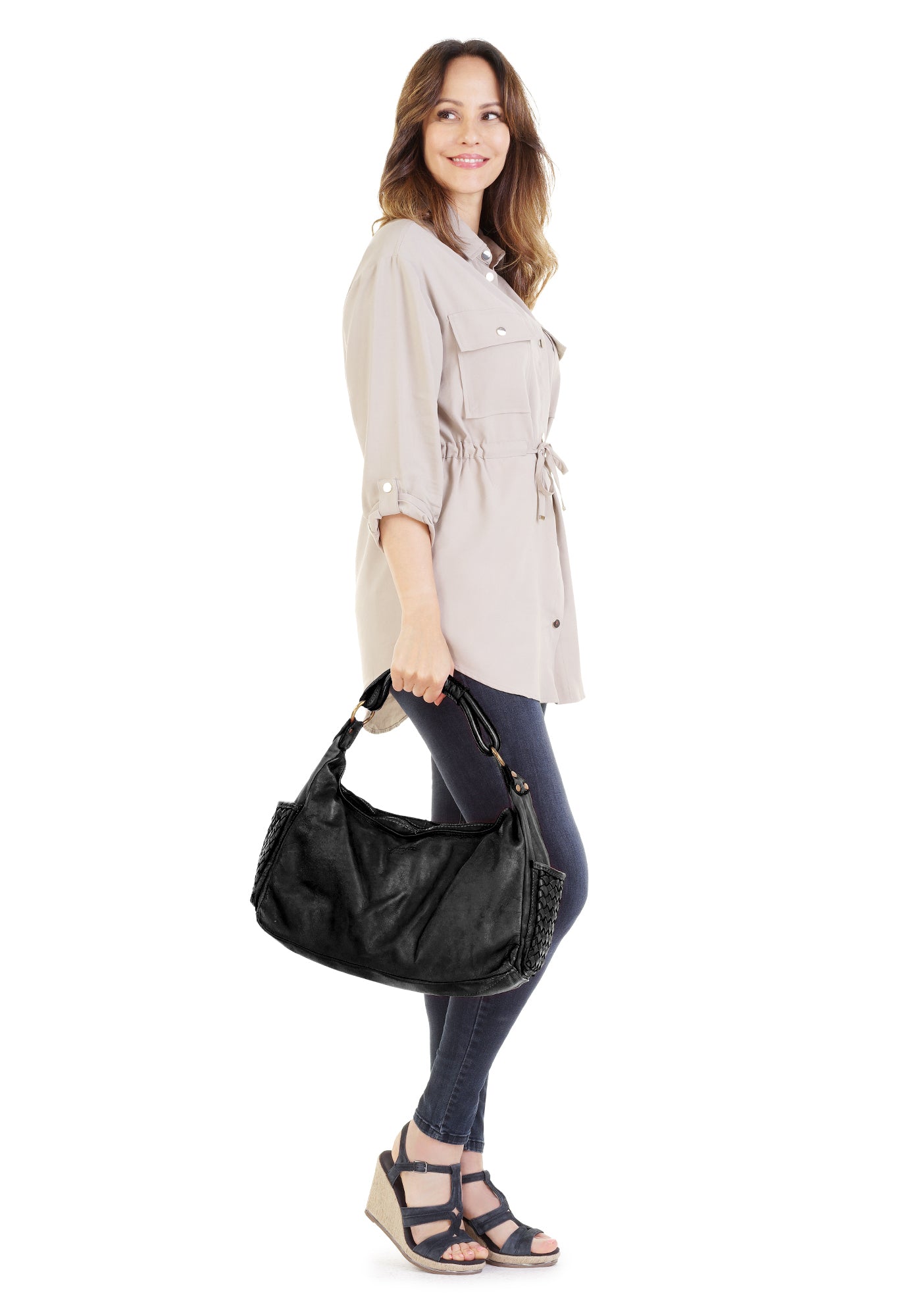 Mit italienischer Wärme präsentiert Samantha Look eine Damen Handtasche im angesagten Vintage-Style. Dank der schonenden Waschung ist das Leder besonders anschmiegsam & erhält so seine Vintage-Optik. Das geräumige Hauptfach ist geeignet für A4 und bietet Ihnen viel Platz für Wasserflasche, kleine Einkäufe & Kosmetiktasche. Verwahren Sie in den Steckfächern Smartphone & Schlüsselbund - übersichtlich und schnell bei der Hand. 2 Seitentaschen in Flechtoptik sind perfekt für Taschentücher und Tickets. Ihre Vintage-Handtasche ist somit eine ideale Begleiterin für jeden Tag & Anlass. Wählen Sie zwischen 2 Tragevarianten. entweder klassisch als Handtasche, oder als Umhängetasche - der abnehmbare Schultergurt ermöglicht es Ihnen.
