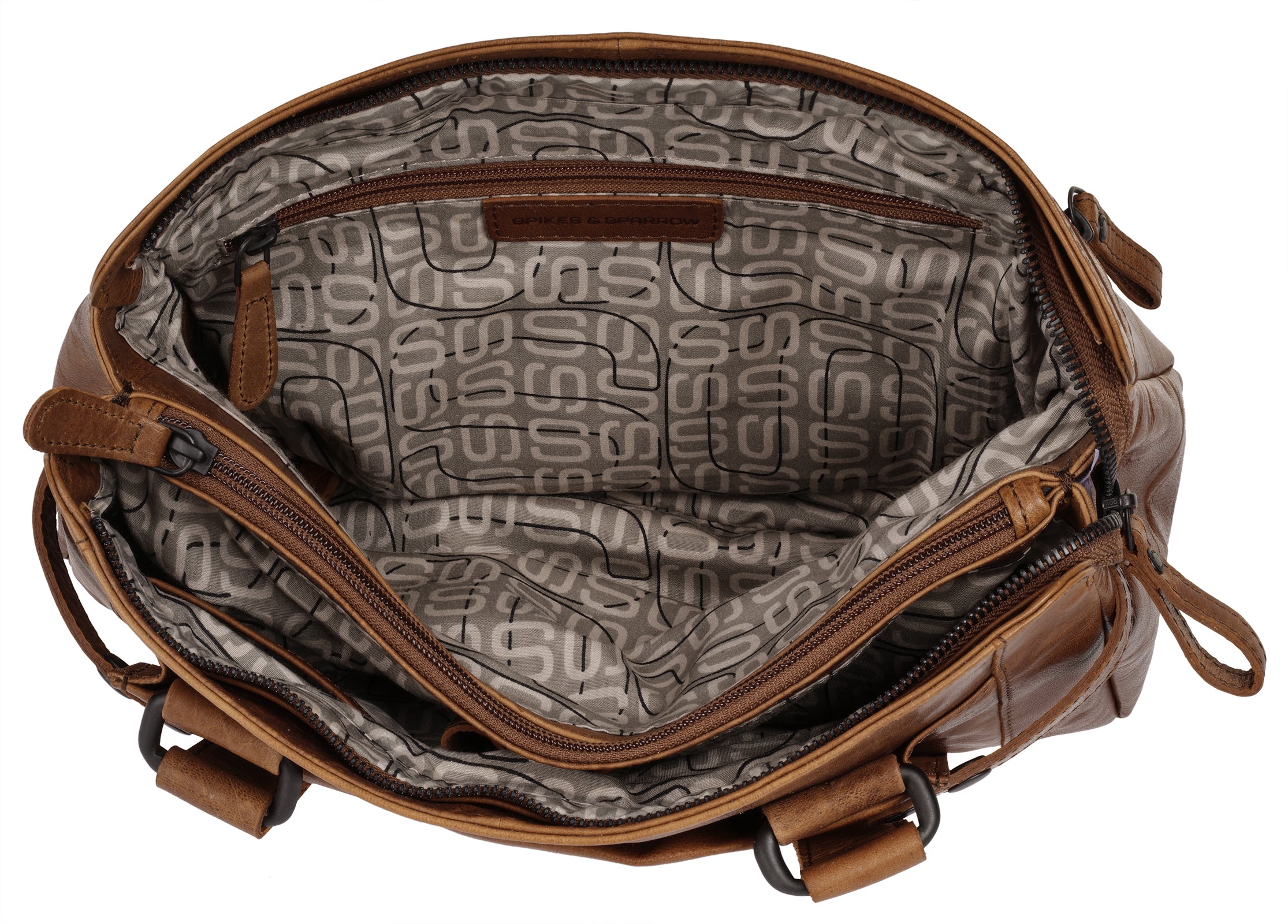Die Leder Handtasche von Spikes & Sparrow schwingt leger an Ihrem Arm - egal ob beim täglichen Weg zur Arbeit oder dem Stadtbummel am Wochenende. Die Tasche punktet mit einem gut ausgestatteten Hauptfach. Ihr Smartphone kann in einem entsprechenden Smartphonefach sicher und stets griffbereit verstaut werden. Stifthalter und ein Rückholbändchen für Ihren Schlüssel erspart Ihnen lästiges Suchen und Kramen. Für mehr Variation beim Tragen können Sie zwischen abnehm- und verstellbarem Schultergurt und zwei Trägern wechseln.