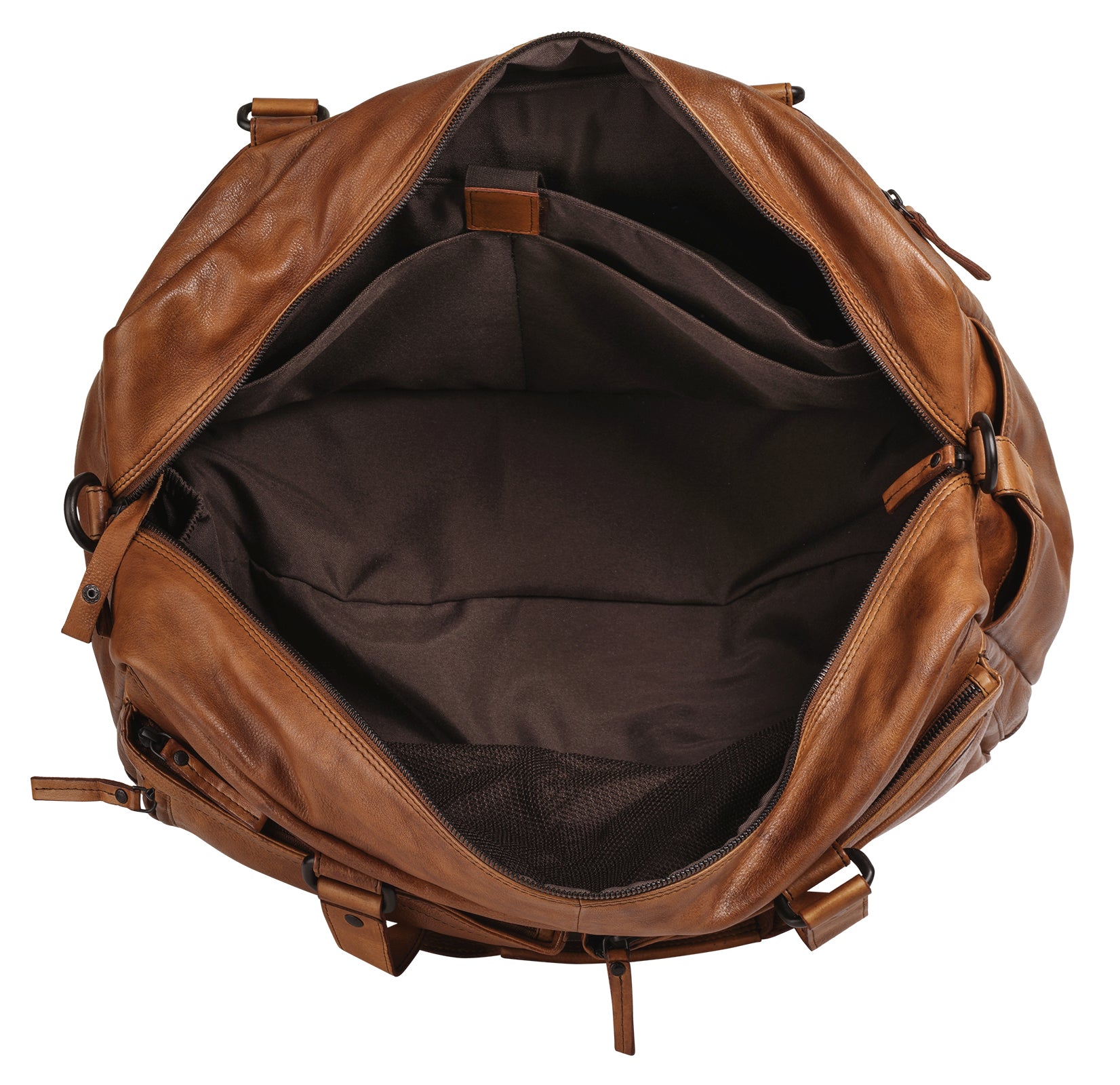 Die Leder Reisetasche von Spikes & Sparrow steht für Stil und Komfort, denn mit ihrer charmanten Vintage-Optik ist sie ein echter Blickfang und eine Bereicherung für jede Garderobe. Ebenso überzeugend wie das Äußere ist auch das Innere der Tasche. Auf das Hauptfach und die Außenfächer verteilt, bietet sie viel Stauraum und verschiedenste Einsteckmöglichkeiten für alles, was unterwegs nicht fehlen darf. Besonders praktisch sind das große, gepolstert Steckfach, in welchem Notebooks und ähnliches geschützt transportiert werden können und das Rückholbändchen für Ihren Schlüsselbund. Für eine bequeme Reise sorgen eine Trolleyhalterung im Rückfach sowie ein Schultergurt als alternative Tragemöglichkeit zu den Henkeln.