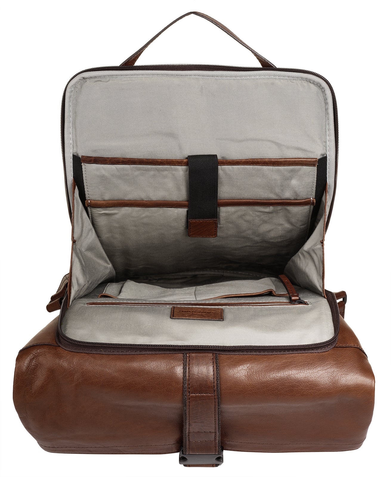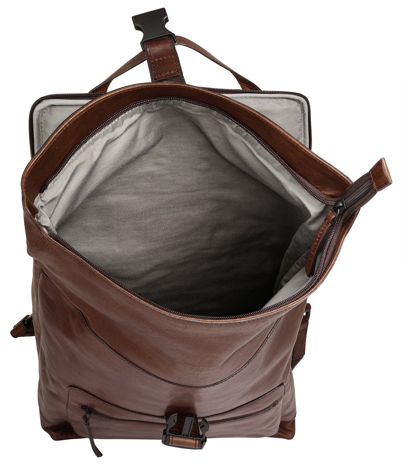 Sansibar präsentiert einen Leder Rucksack im charmanten Vintage-Look. Sein geräumiges Hauptfach trägt alles, was unterwegs nicht fehlen darf. Egal ob Sie einen Ausflug unternehmen, einige Besorgungen machen oder im Arbeitsalltag - mit diesem Backbag sind Sie immer bestens ausgerüstet. Besonders praktisch für Business-Angelegenheiten: Ein Rückfach enthält diverse Einsteckmöglichkeiten und ein gepolstertes Notebookfach!