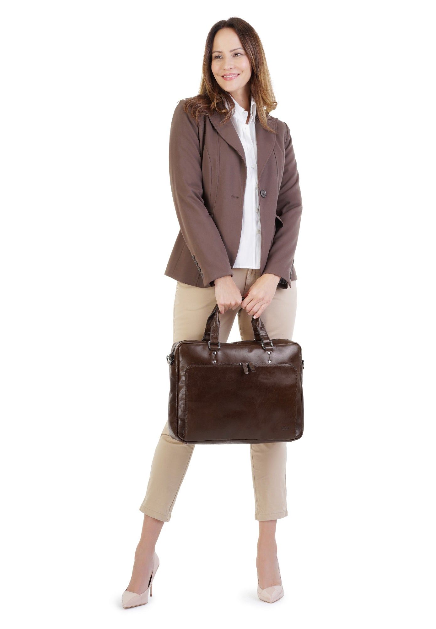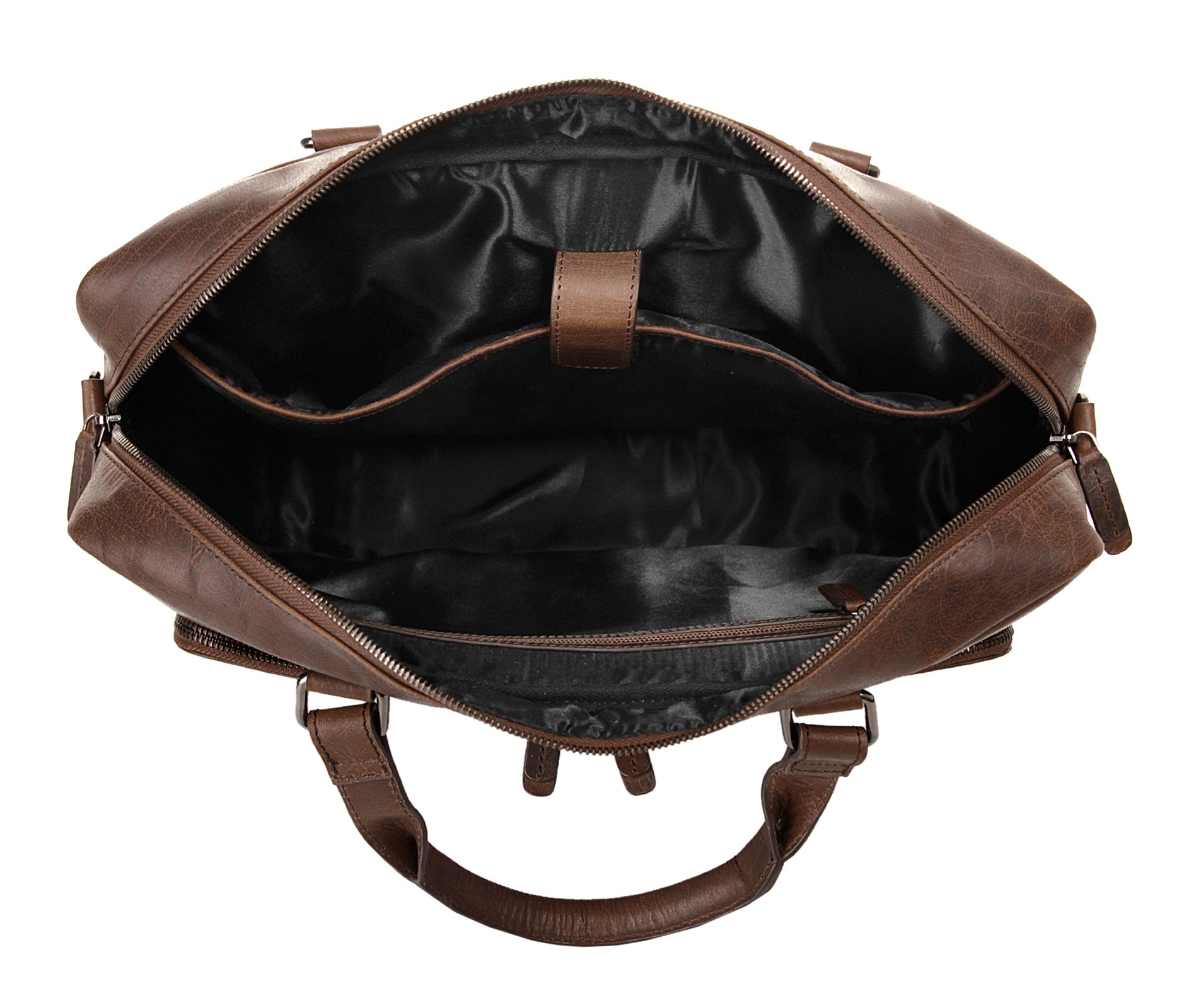 Moderne und legere Notebooktasche von X-Zone. Egal ob Büro oder Geschäftsreise, diese Aktentasche bringt Schwung und Stil in Ihren beruflichen Alltag! Das offenporige Leder hat eine lebendige Oberfläche, die der Tasche ihren markanten Look gibt. Die Innenausstattung denkt an alles: gepolstertes Notebookfach, Reißverschlussfächer, Kartenfächer und Stifthalter. Die Leder Aktentasche lässt sich an zwei stabilen Griffen in der Hand tragen oder lässig über der Schulter als Umhängetasche.