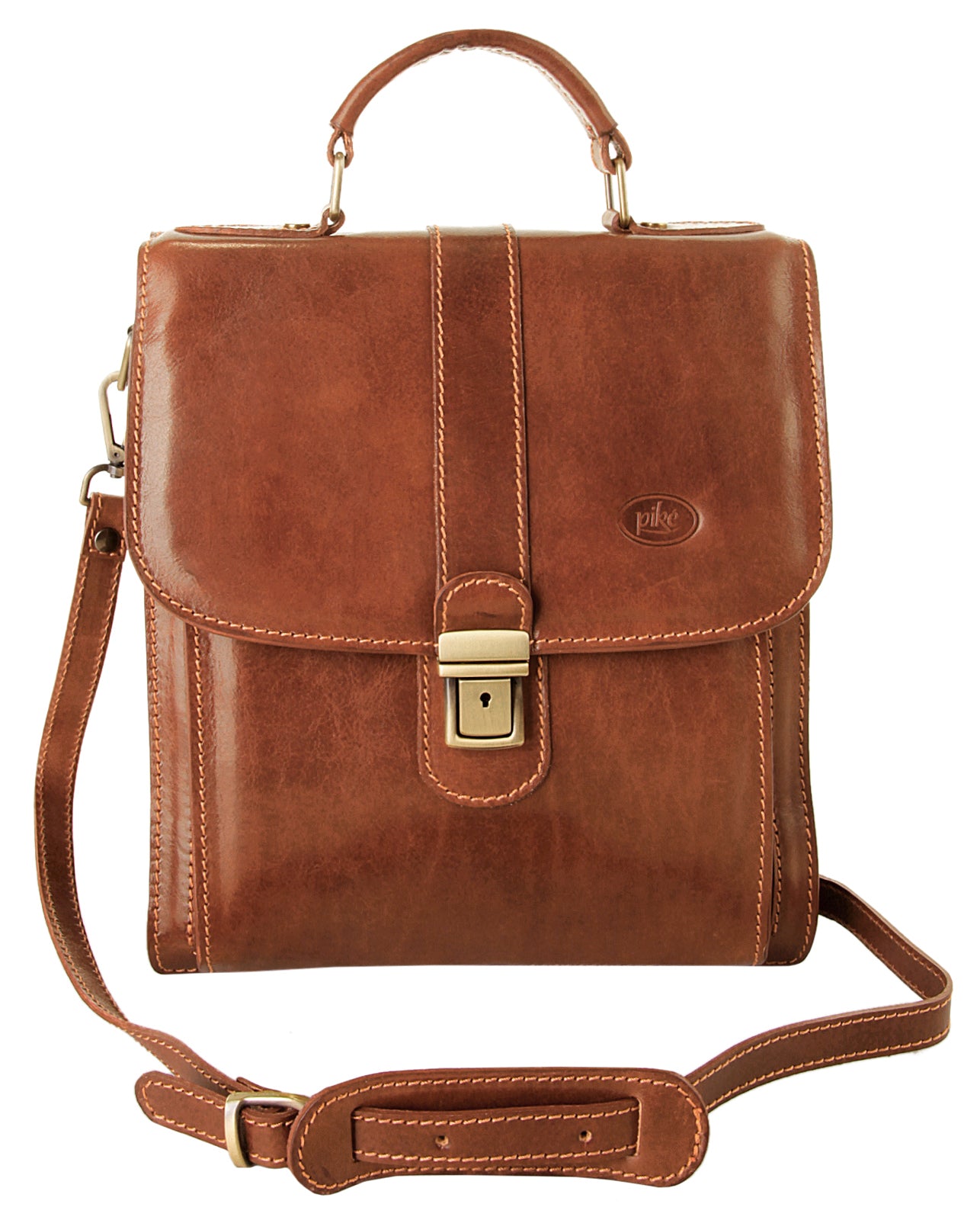 Die Leder Umhängetasche von piké wächst Nostalgikern schnell ans Herz! Das Retro Design erinnert an alte Sattlertaschen. Das offenporige Leder strahlt Lebendigkeit und Wärme aus. Zwei Hauptfächer bieten Platz für die wichtigsten Dinge; kleine Alltagshilfen und das Smartphone haben ihren sicheren Plat z in separaten Einsteckfächern. Die Tasche lässt sich am praktischen Griff oder mit dem Schulterriemen tragen.