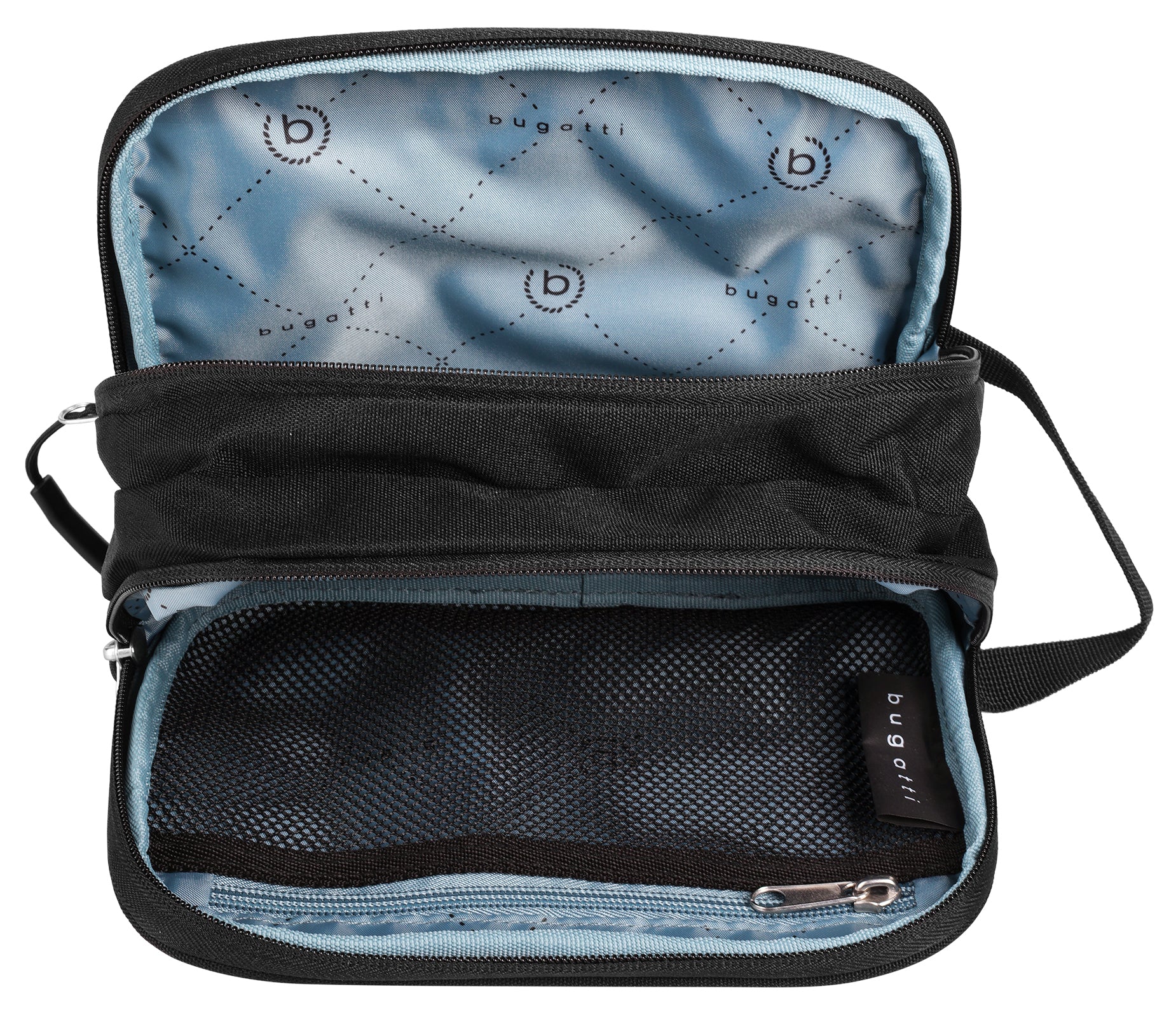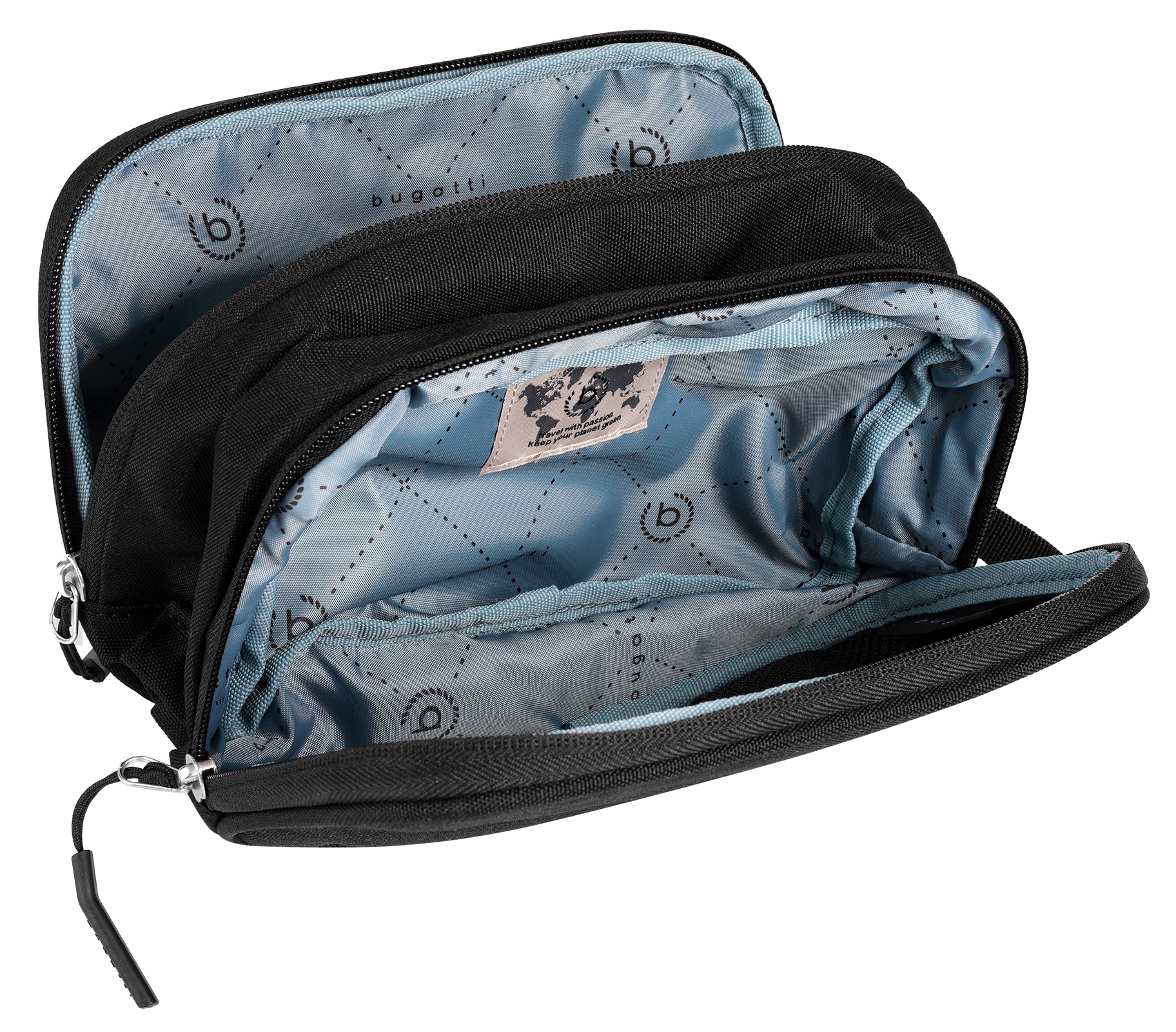 Für maximalen Komfort unterwegs greifen Sie am besten zur Kulturtasche von bugatti! Ob Geschäftsreise, Wochenendtrip oder Jahresurlaub: Dank ihres besonders leichten Materials, handlichen Format und einer intuitiven Fächeraufteilung ist sie die praktische Begleiterin auf kleinen und großen Reisen. Kosmetik- und Toilettenartikel finden in zwei verschließbaren Hauptfächern Platz. Verschiedene Einsteckmöglichkeiten bewahren unterdessen lose Kleingegenstände sicher verstaut und griffbereit für sich auf. Ein Vorderfach ergänzt das Fächerrepertoire.