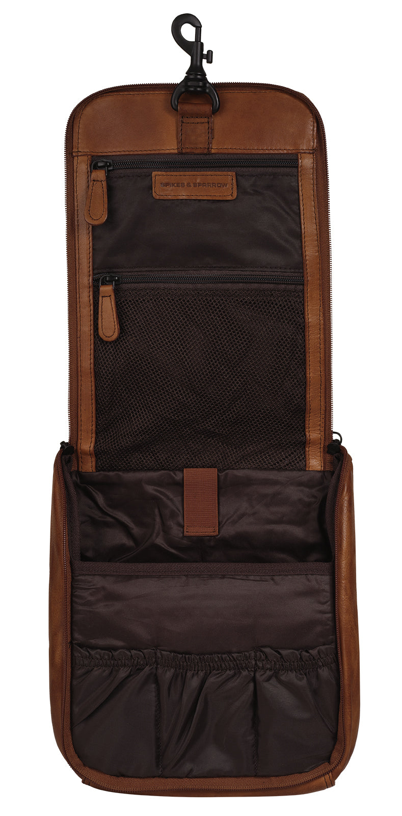 Auf Ihrer nächsten Reise darf die Leder Kulturtasche von Spikes & Sparrow nicht fehlen! Von Toilettenartikeln, über Kosmetik, bis zu Hygieneprodukten: Ihr zeitloser Reisebegleiter bietet Platz dafür. Verstauen Sie Ihre Essentials in einer Vielzahl von Reißverschluss- und Steckfächern. Zur leichteren Handhabe lässt sich die Tasche mithilfe des Karabinerhakens an der Innenseite der Deckelklappe bei Bedarf aufhängen. Der mitgelieferte Stoffbeutel schützt das Leder vor äußeren Einflüssen und verlängert damit seine Lebensdauer.
