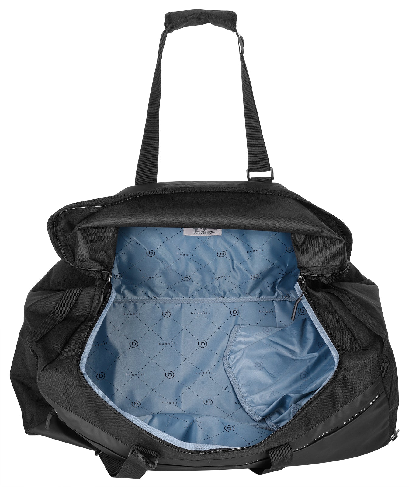 Reisegepäck sollte ein geringes Eigengewicht besitzen & widerstandsfähig sein - die Reisetasche im sportlichen Look aus dem Hause bugatti vereint all dies. Dank des großen Fassungsvermögens lässt sich Kleidung, Kulturbeutel und alles, was Sie auf Reisen benötigen, übersichtlich & geschützt in Ihrer großen Travel Bag aufbewahren. Ein praktisches Schuhfach sorgt dafür, dass Ihr Reisegepäck nicht verschmutzt wird. Tragen Sie Ihre Reisetasche entweder an den Tragehenkeln mit gepolstertem Schulterteil, am Trolley befestigt oder bequem als Rucksack.