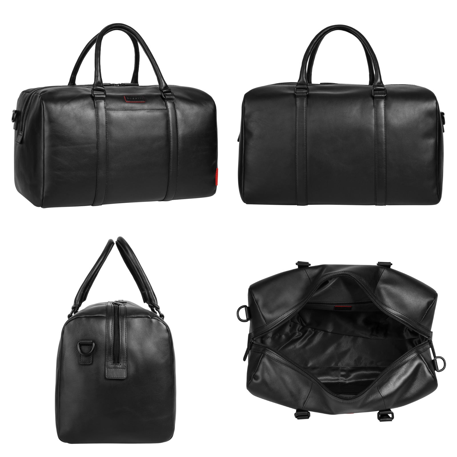 Reisen Sie bequem und stilvoll mit der Leder Reisetasche von bugatti! Ihr minimalistisches Design strahlt Klasse und Zeitlosigkeit aus - eine universelle Ergänzung für jede Garderobe! Das geräumige Hauptfach hat die perfekte Größe für Kurztrips, wobei es sich genauso gut als ergänzendes Gepäckstück für längere Reisen eignet. Diverse Einsteckmöglichkeiten innen sowie das Vorderfach bewahren kleine und wichtige Gegenstände separat vom restlichen Tascheninhalt und stets griffbereit für Sie auf. Besonders praktisch sind die metallenen Bodennieten, die für einen festen Stand sorgen und gleichzeitig die Unterseite vor Abnutzung schützen. Tragen Sie die Reisetasche bequem an den festen Henkeln oder mithilfe des abnehmbaren Gurts lässig auf der Schulter.