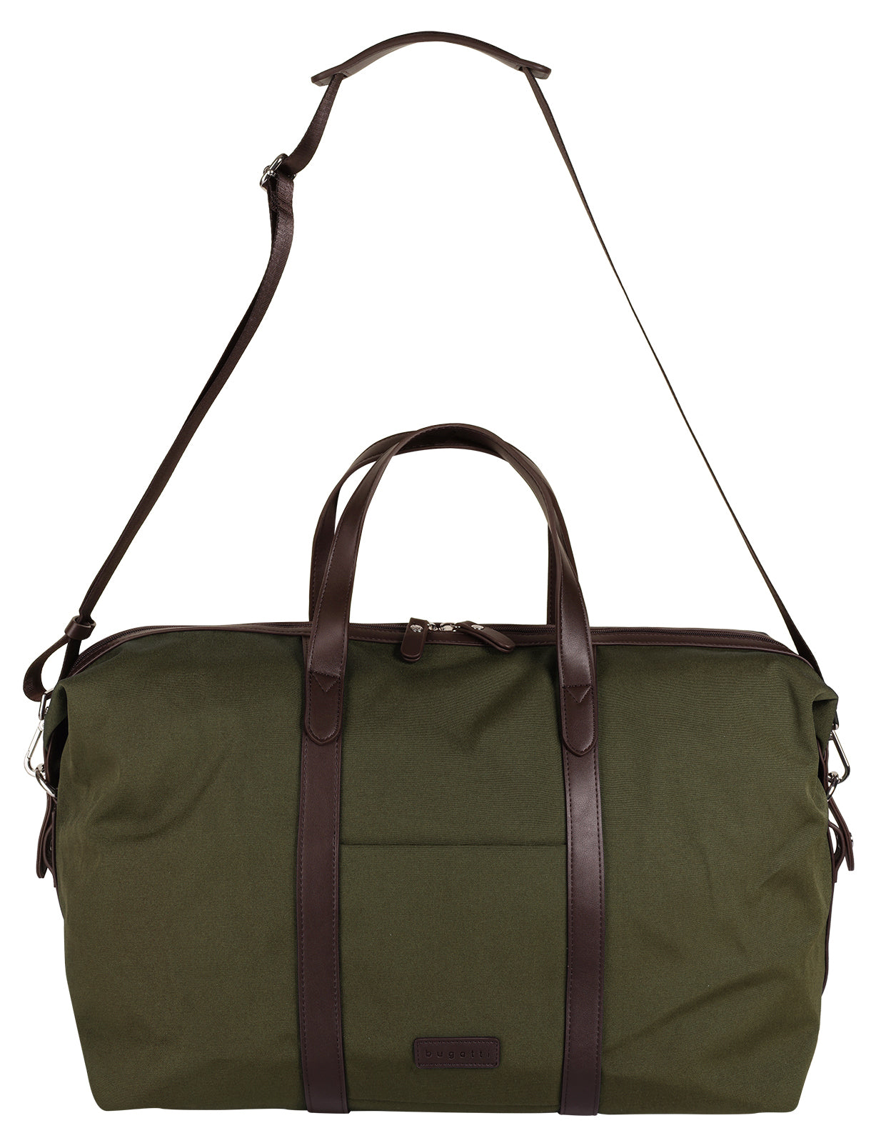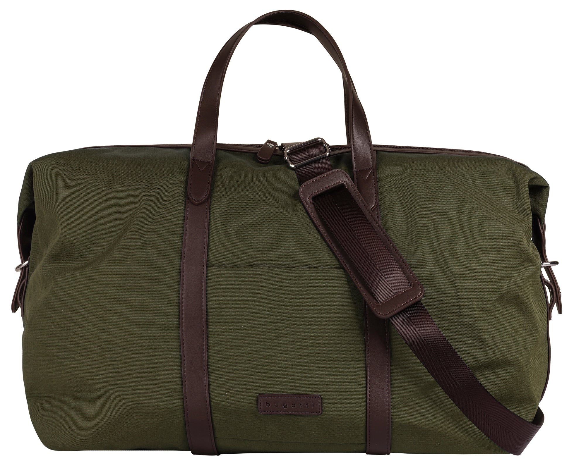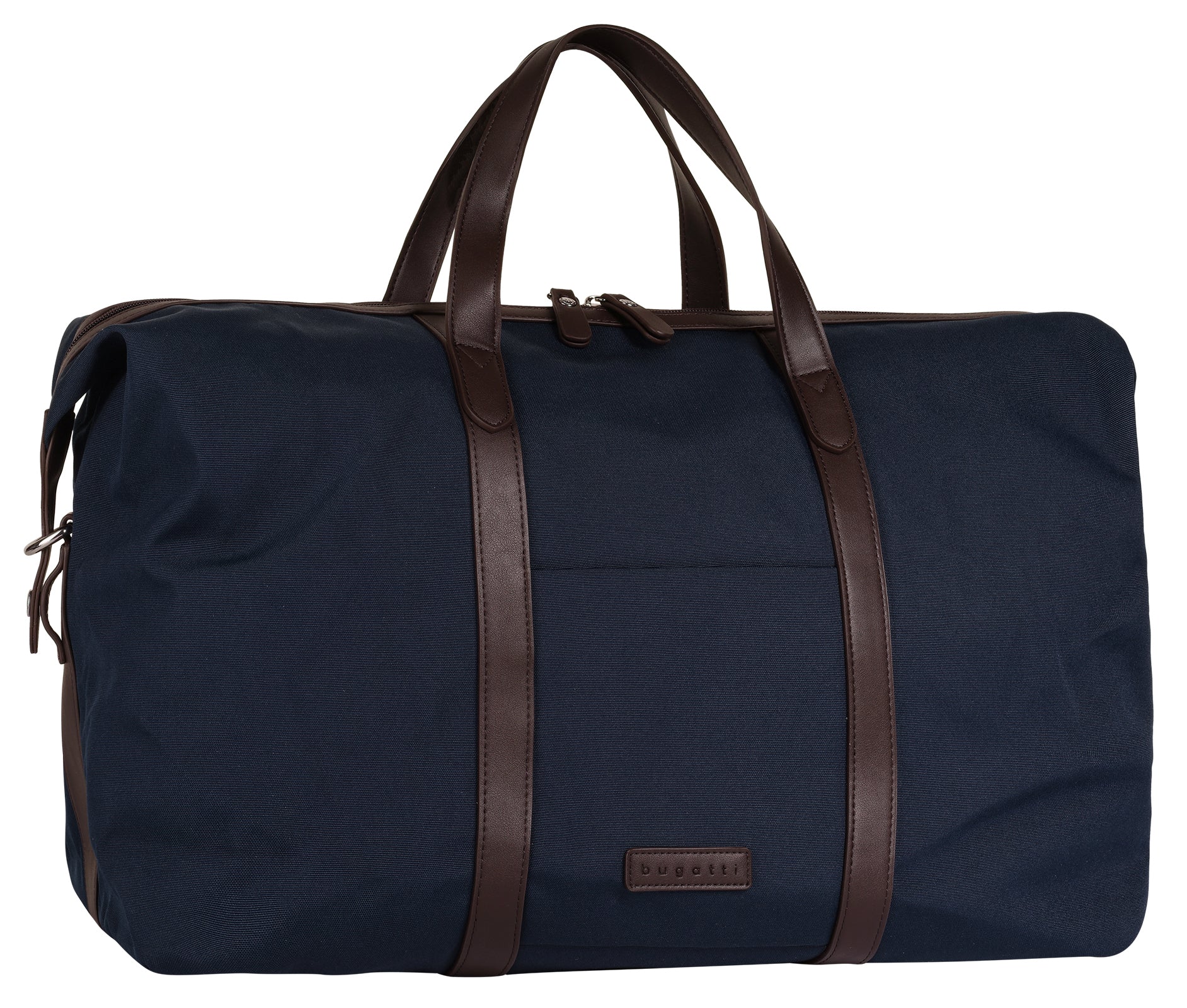 Langlebig, sportlich, funktional: die Reisetasche von bugatti! Ihr stabiles Material sorgt dafür, dass Ihr Begleiter perfekt gegen die Belastungen einer Reise gewappnet ist. Zusammen mit den kontrastfarbigen Kunstleder-Details ergibt sich ein charmanter Sport-Chic-Look. Das erweiterbare Hauptfach bietet viel Platz für alles, was unterwegs nicht fehlen darf und ist für eine bessere Organisation mit verschiedenen Einsteckmöglichkeiten ausgestattet. Die Trolleyhalterung und der verstärkte Boden sorgen zudem für ein angenehmeres Reiseerlebnis. Ob lässig in der Hand, bequem auf der Schulter oder quer über den Oberkörper: dank weichen Henkeln und einem abnehmbaren Schultergurt sind den Tragevariationen keine Grenzen gesetzt.