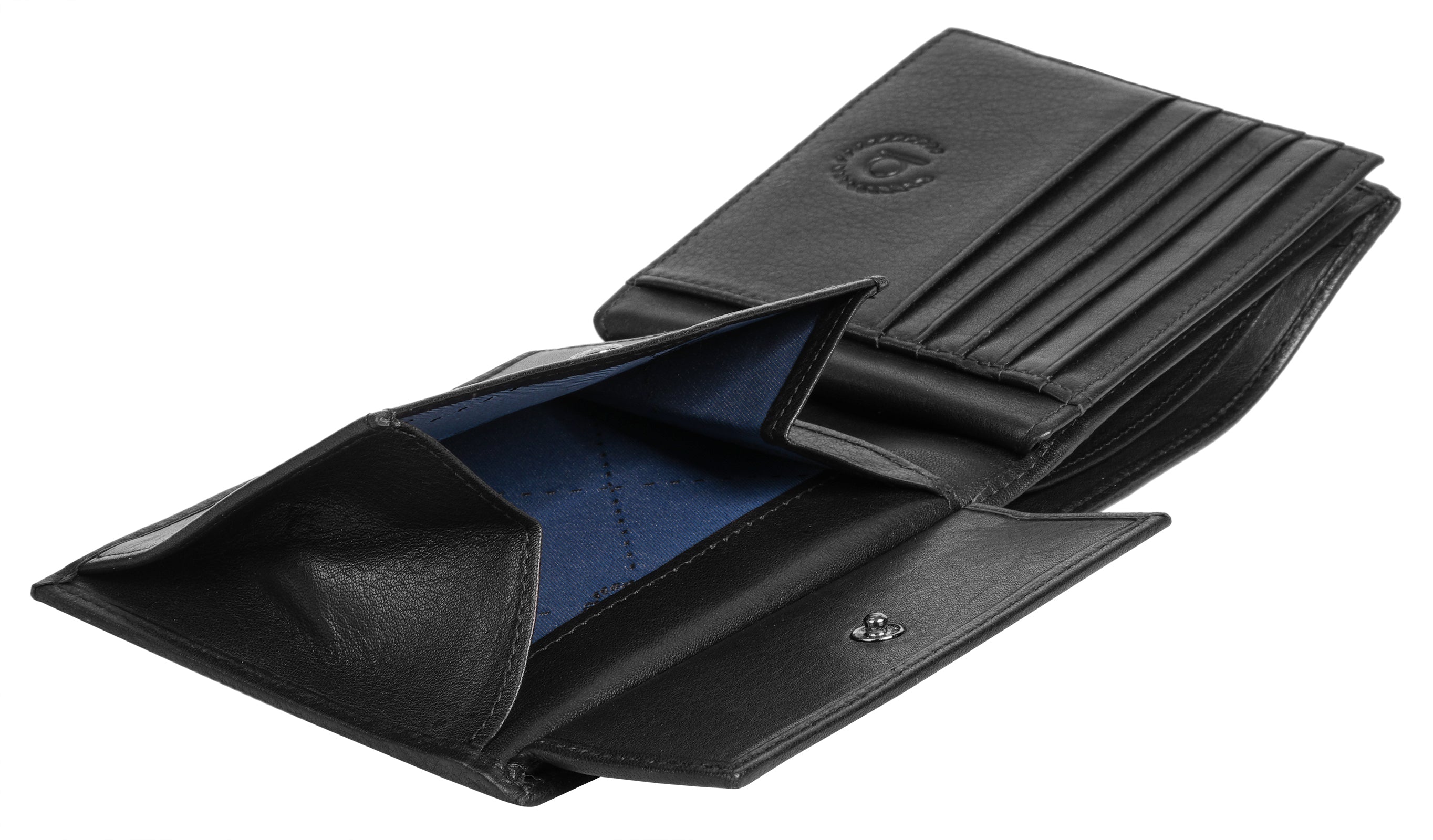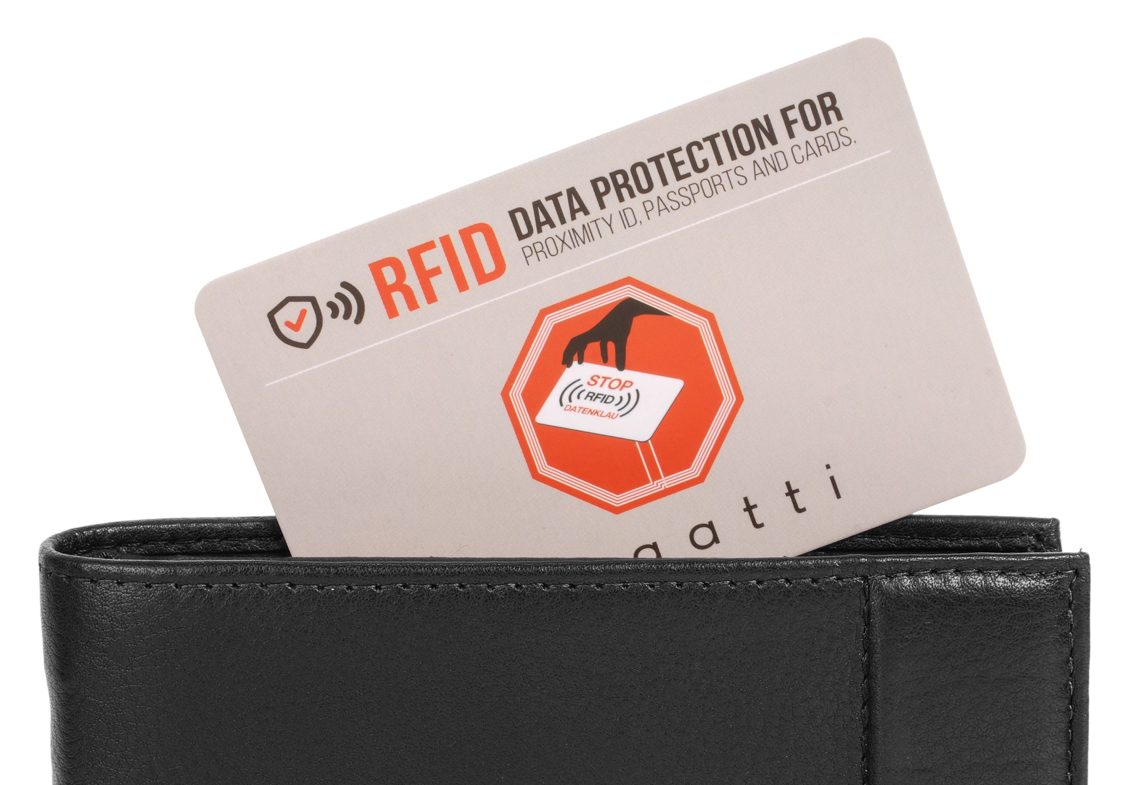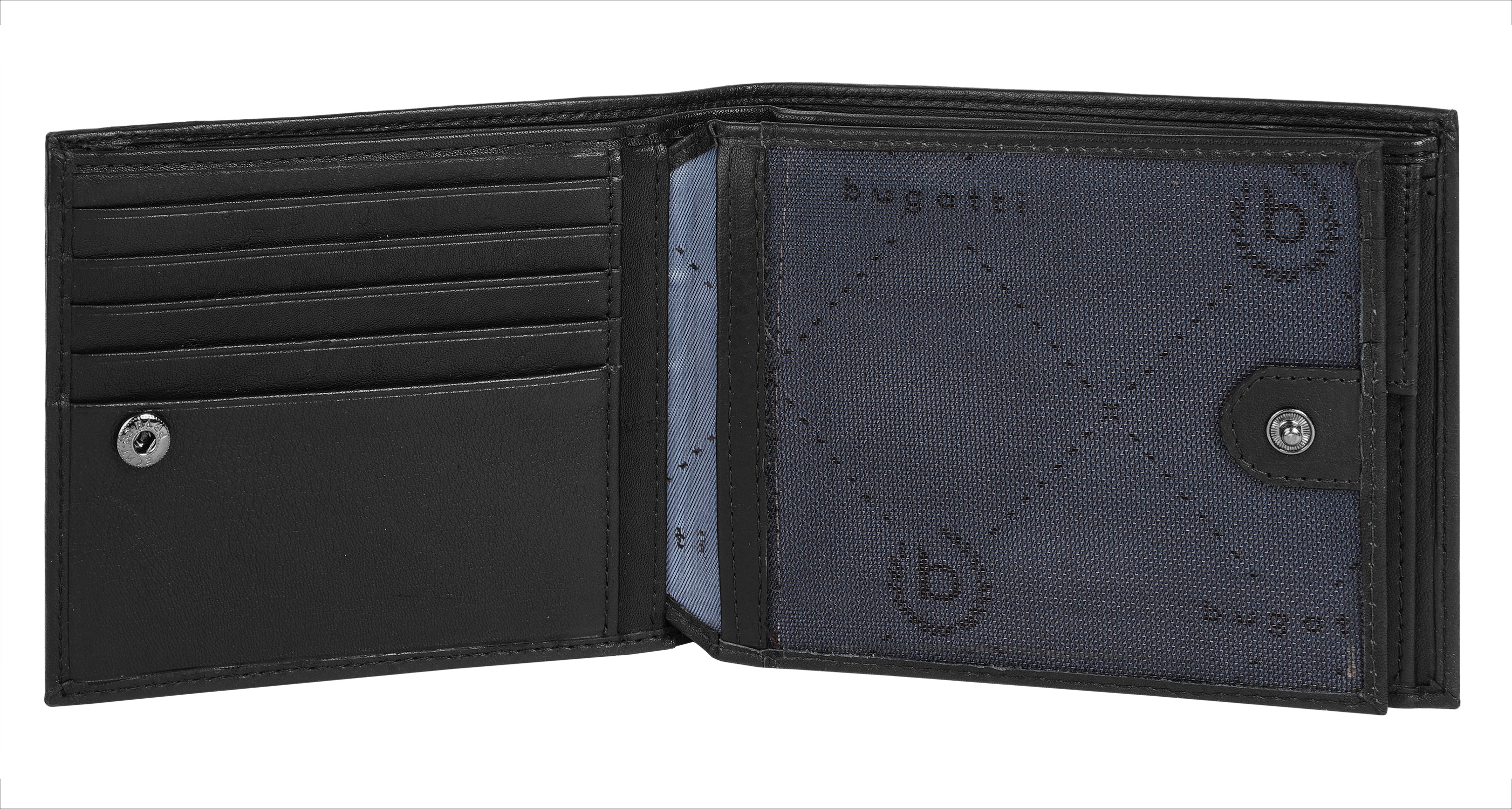 In der Leder Geldbörse von bugatti findet alles Wichtige seinen Platz. Dafür sorgen zahlreiche Schein- sowie Steckfächer für Bank- und Visitenkarten. Diverse Einsteckfächer und ein Sichtfach bieten sich an, um Fotos, den Führerschein und viel mehr in Ihrem Portemonnaie unterzubringen. Ein integrierter RFID-Schutz verhindert das unautorisierte Auslesen Ihrer sensibler Kartendaten.