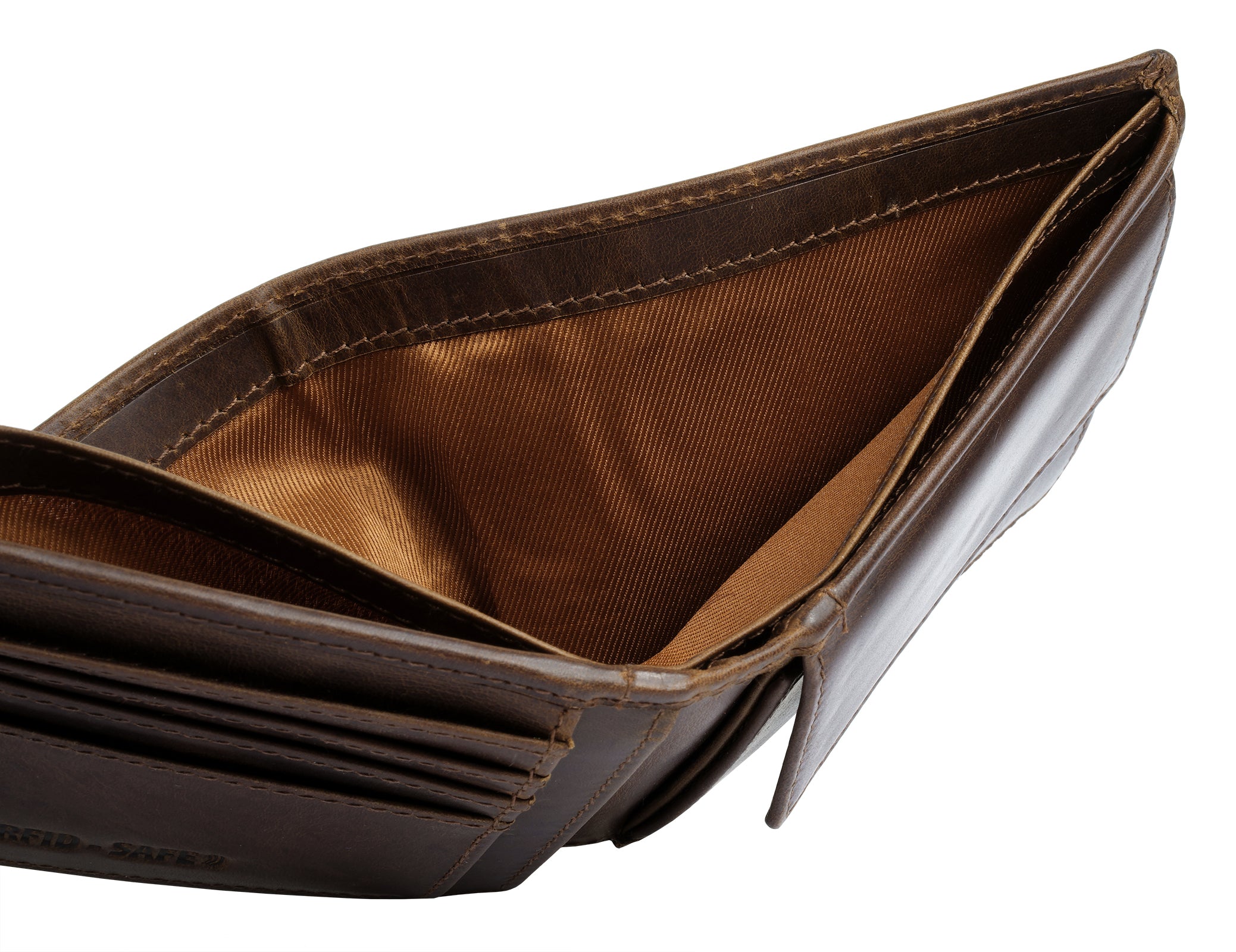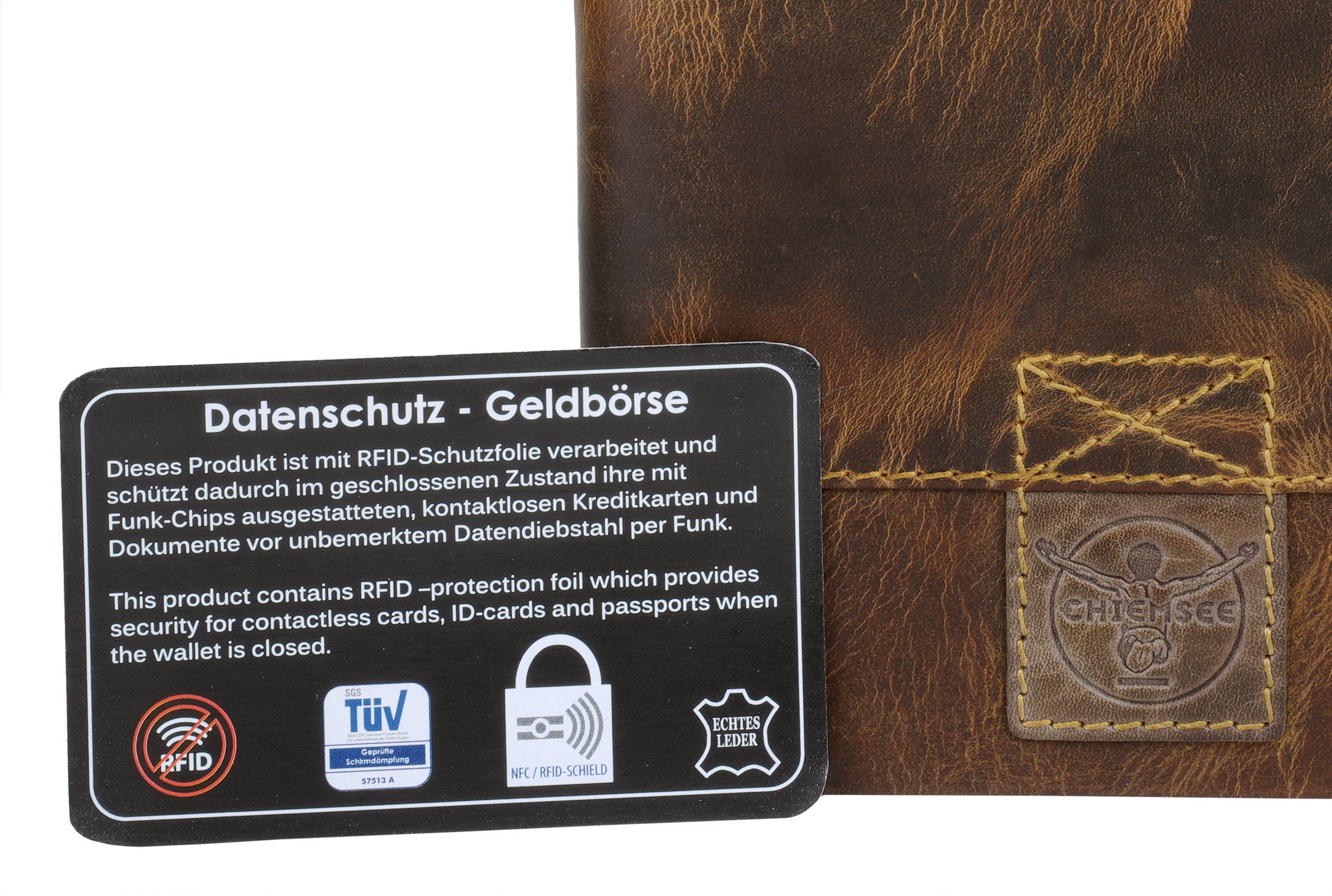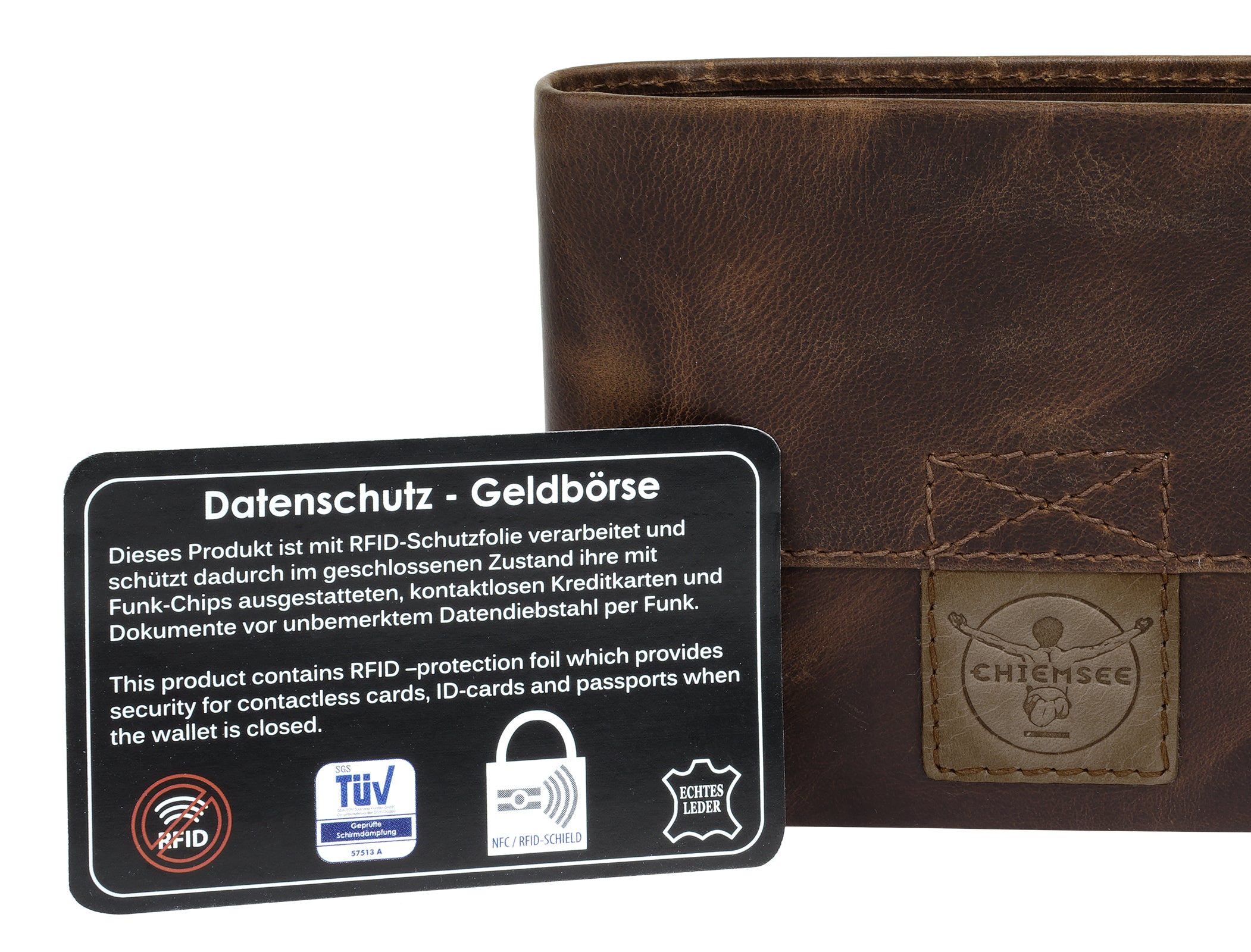 Chiemsees Leder Geldbörse ist kompakt & leger gestaltet. Das 2-fach klappbare Portemonnaie enthält eine Vielzahl von unterschiedlichen Fächern zur übersichtlichen & organisierten Aufbewahrung von Karten, Geldscheinen, Münzen und mehr. Für mehr Sicherheit sorgt der RFID-Schutz, der Ihre Kartendaten vor unautorisiertem Auslesen schützt.