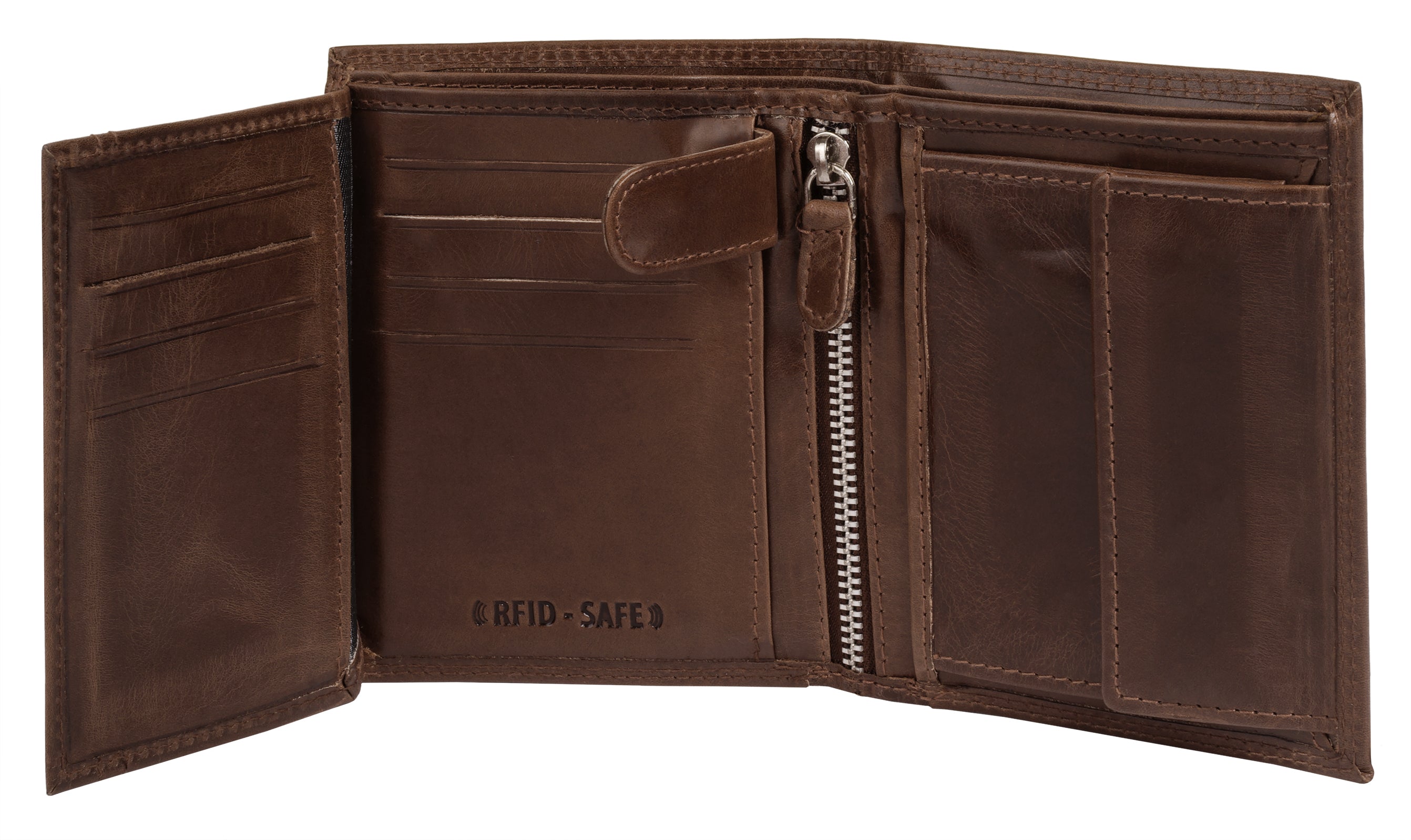 Casual-Look der edelsten Sorte – damit überzeugt die Leder Geldbörse von Chiemsee. Für Übersicht sorgt die strukturierte Innenaufteilung; das schnörkellose Design macht Ihr Portemonnaie zu einem neutralen Accessoire für Frauen sowie Männer. Alles, was unterwegs nicht fehlen darf, findet hier seinen Platz. Mit einem RFID-Schutz wird das unautorisierte Auslesen Ihrer privaten Kartendaten verhindert.